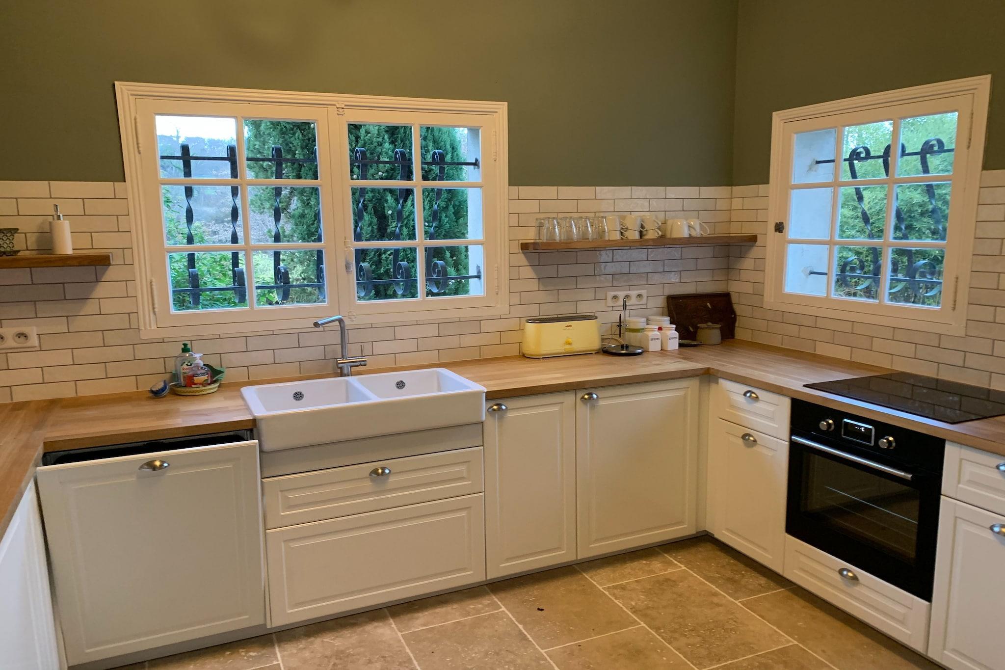 Bottenvåningen: (Vardagsrum(TV, öppen spis, sitthörna, toalett ), Kök(matbord, Kokplattor, brödrost, spis, 2x ugn, kyl och frys), sovrum(enkelsäng), sovrum(enkelsäng, spjälsäng), badrum(badkar med dusch, dusch, 2x handfat, toalett ), WC, tvättstuga(torktumlare, tvättmaskin), grovkök(mikrovågsugn, frys)) På våning 1: (sovrum(dubbelsäng(boxspring, 160 x 210 cm)), sovrum(dubbelsäng(140 x 200 cm)), Bedroom with bathroom(dubbelsäng(150 x 200 cm), badkar med dusch, handfat, toalett ), badrum(dusch(Duschkabin), handfat)) Gästlägenhet i bottenvåning: (Kök(spis(Spis med 4 kokplattor, gas), ugn, diskmaskin, torktumlare, tvättmaskin), ardags- och matrum(matbord(8 personer), sitthörna), sovrum(dubbelsäng(150 x 190 cm)), badrum(badkar med dusch, handfat), WC) Gästlägenhet i entréplan: (sovrum(dubbelsäng(140 x 190 cm)), sovrum(dubbelsäng(150 x 200 cm)), Öppen övervåning) trädgård, trädgårdsmöbler, grill, solstolar, swimmingpool(privat), boule, bordtennis