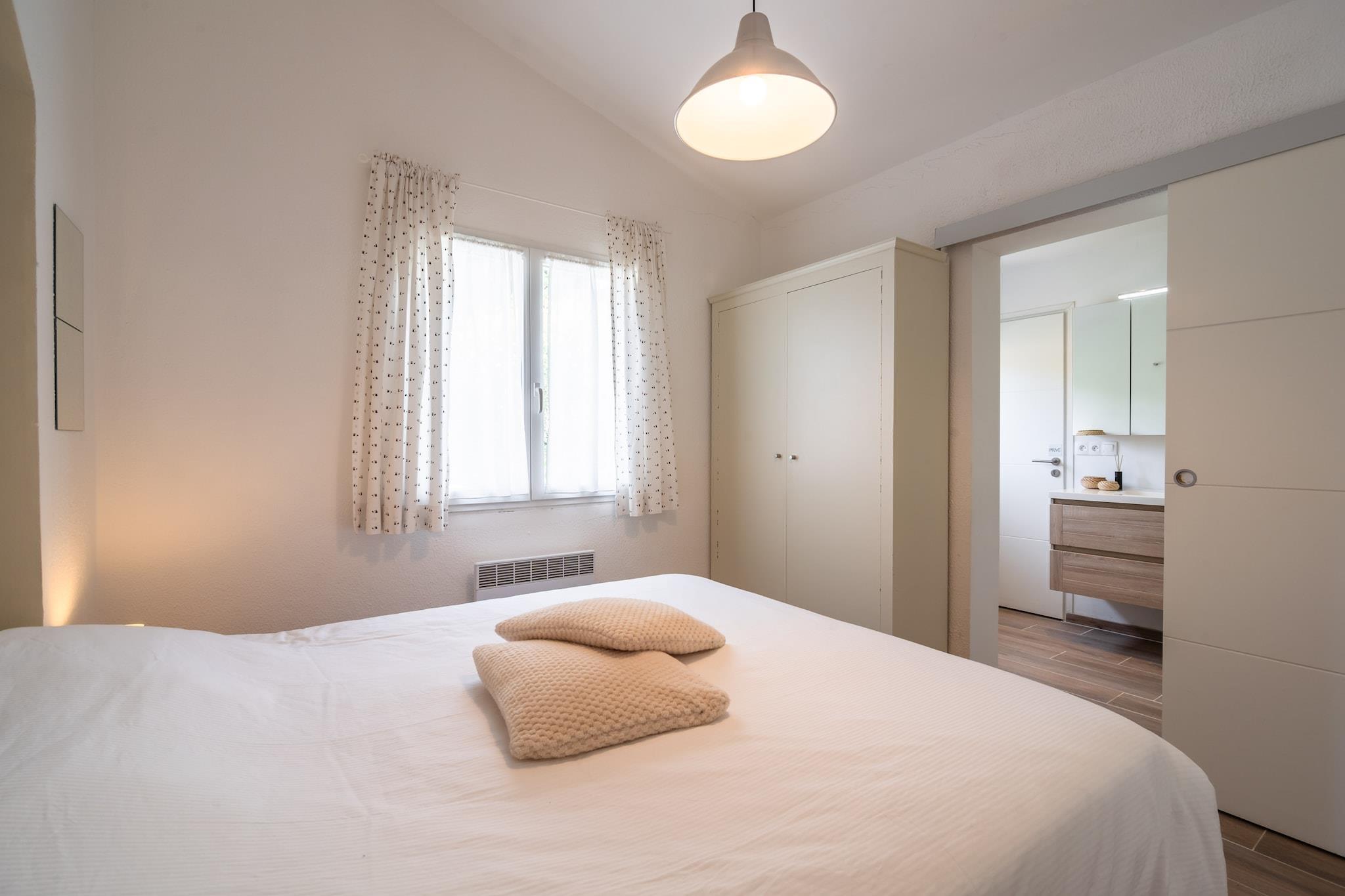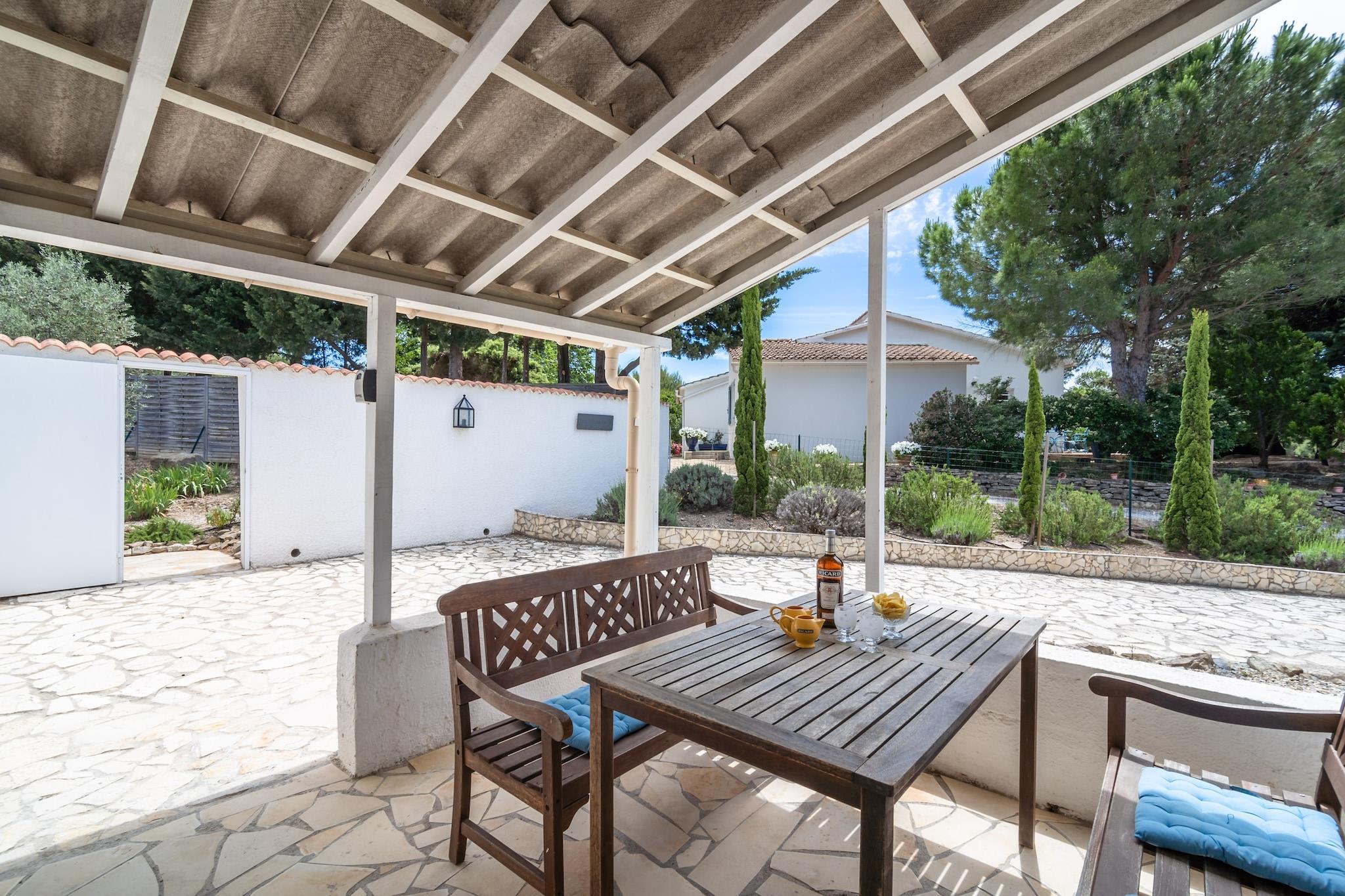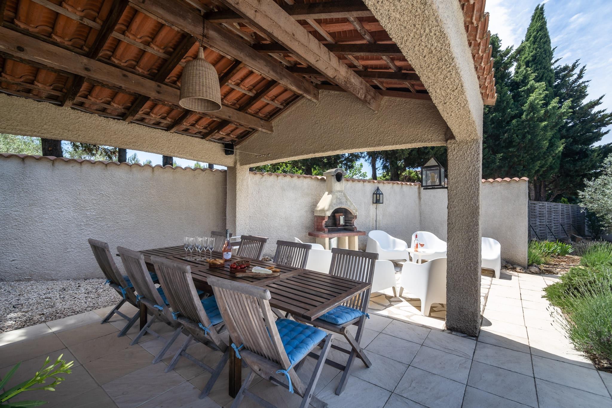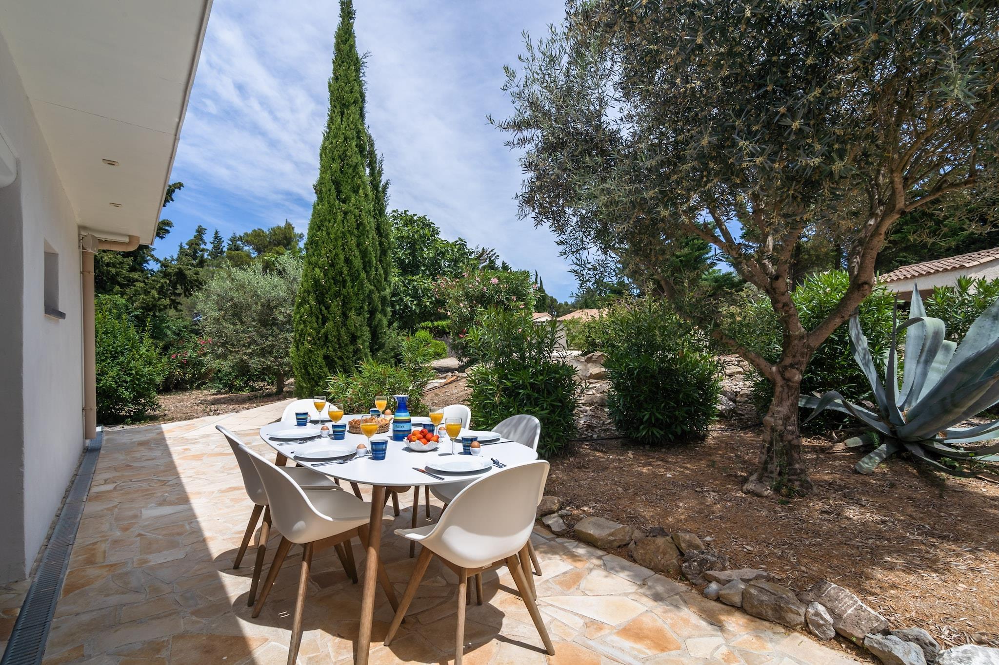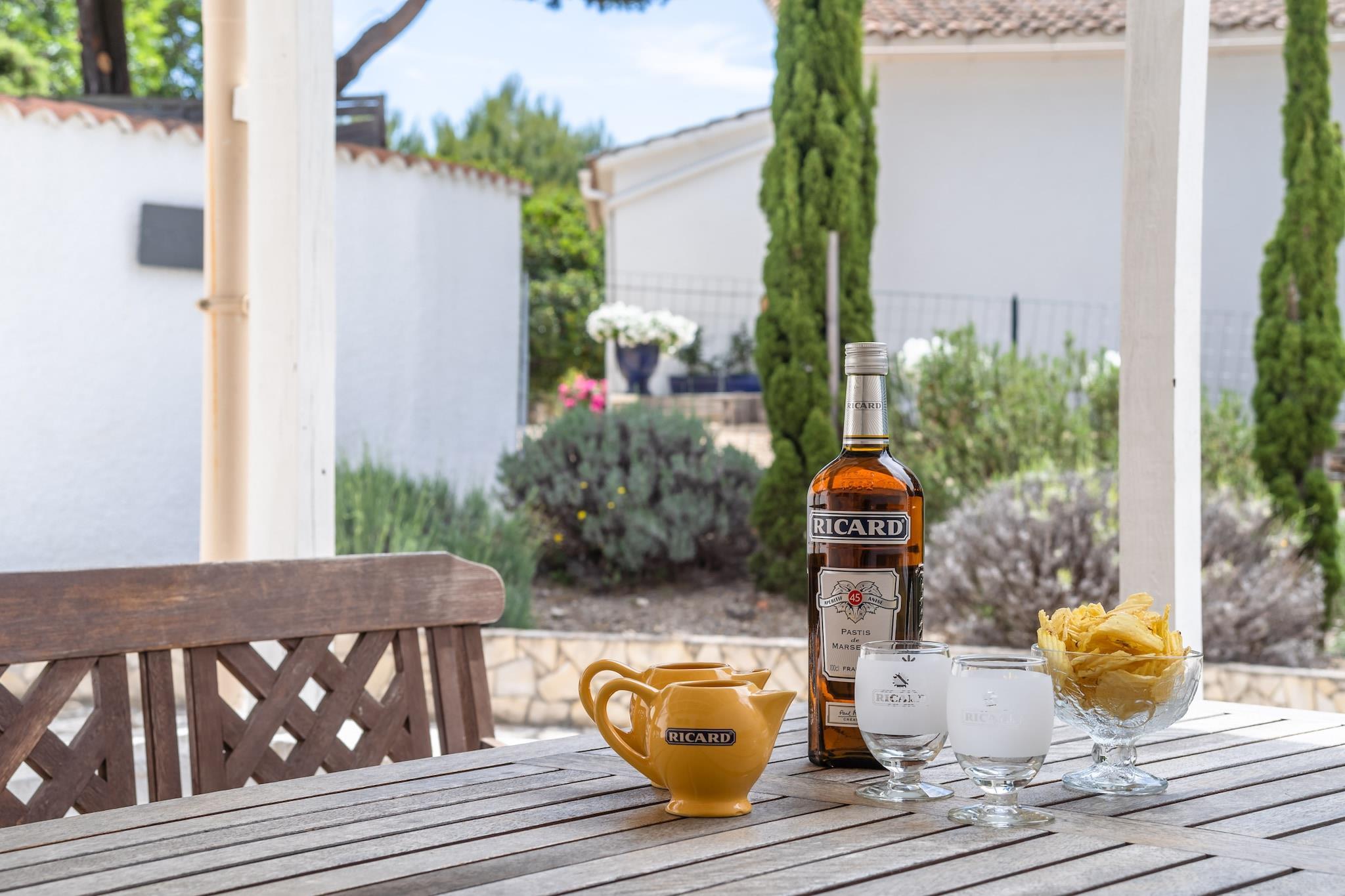 Denna fantastiska villa Aux Arbres Verts för sex personer med privat pool ligger i ett område på 1500m2 i Soleil d 'Oc, nära Pouzols-Minervois (1,5km) och Olonzac. Den lilla byn Pouzols ligger i centrum av regionen Minervois Villaen har en fantastisk utsikt över dalen med vingårdarna. Den vackra trädgården har olika stora träd, olivträd, palmer, fikonträd och oleander. På grund av staketet erbjuder villan en absolut privat atmosfär Du har tillgång till internet.Denna villa är vackert belägen i byn Soleil d'Oc-Pouzols och har en enastående utsikt över vingårdarna i Minervois. Riktigt bra shopping du gör i Olonzac, som ligger bara några kilometer bort. De fantastiska breda sandstränderna i Beziers och Narbonne är 45 minuter bort och erbjuder något till barn i alla åldrar ((kitesurfing) surf och segling lektioner, karting, etc.). Carcassonne är katedralens tidigare huvudstad. Den imponerande Citéen är den största europeiska medeltida staden och är en fascinerande dagstur (30-45 minuter). Naturligtvis finns det den fascinerande naturen för den aktiva semestersökaren (mountainbike, racerbana, löpning, vandring, paddling, etc.). Och på vintern skidåkning i Pyrenéerna är ett alternativ på 2 timmar från villan. Barcelona är en 2-3 timmars resa bort.