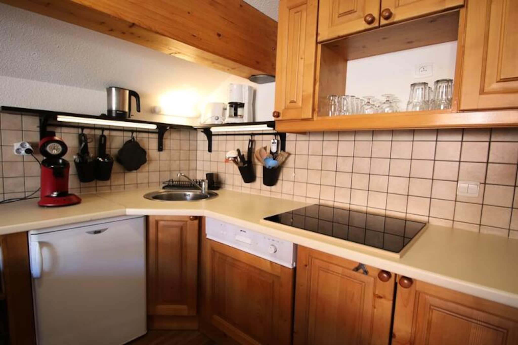 Högt ovanför de fridfulla sluttningarna i Puy Saint Vincent 1800, inbjuder denna charmiga lägenhet dig att uppleva en oöverträffad bergsupplevelse. Med hisnande utsikt från din privata balkong och direkt tillgång till skidbackarna känns varje ögonblick här som en hyllning till alpin skönhet. Oavsett om du söker spännande vinteräventyr eller lugna sommarresor, erbjuder denna fastighet den perfekta basen för din semester. Tänk dig att smutta på ditt morgonkaffe medan solen går upp över topparna, eller varva ner efter en dags utforskande i den uppvärmda utomhuspoolen under de varmare månaderna. \n\nLägenheten är designad för att rymma upp till fem gäster och har ett mysigt vardagsrum med en utdragbar bäddsoffa, en bäddfåtölj och en smart-TV för underhållning. Det välutrustade köket har moderna apparater som mikrovågsugn, diskmaskin och Senseo-kaffemaskin, vilket gör det enkelt att laga mat och snacks. Ett separat sovrum med en bekväm dubbelsäng garanterar vilsamma nätter, medan badrummet med handdukstork ger en touch av lyx. Gratis WiFi håller dig uppkopplad, och omtänksamma extrafunktioner som att hyra sängkläder och handdukar gör din vistelse problemfri.\n\nSjälva residenset är ett bekvämt centrum, med restaurang, snackbar, bageri och skiduthyrning precis utanför dörren. På sommaren förvandlas den uppvärmda utomhuspoolen till en uppfriskande oas, medan bastun erbjuder avkoppling året runt. I närheten hittar du pittoreska vandringsleder, cykelvägar och fantastiska vyer som visar upp den naturliga skönheten i Hautes-Alpes-regionen. För familjer, par eller små grupper är denna lägenhet ett perfekt val för att skapa oförglömliga minnen i de franska Alperna.\n\nOavsett om du är här för att åka skidor, vandra eller bara njuta av bergsatmosfären, kombinerar detta residens komfort, bekvämlighet och charm i ett oförglömligt paket.