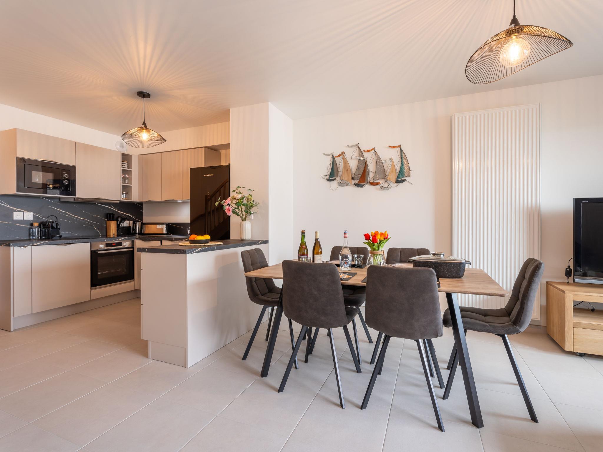Residence "Chasse Marée", 2 storeys, built in 2025. In the centre of Quiberon, in the residential district, excellent location: right in the centre but still quiet, 100 m from the sea, 100 m from the beach. In the complex: storage room for bicycles. Shop, grocery 50 m, supermarket 1.3 km, restaurant 50 m, 3 minute walk to the centre, bus stop 100 m, ferry 50 m, sandy beach "Grande Plage" 100 m, indoor swimming pool 1.5 km, thermal baths "Thalassothérapie de Quiberon" 2 km. Sports harbour 1.5 km, golf course (9 hole) 1.5 km, sailing school 3 km. Nearby attractions: Presqu'ile de Quiberon, Belle ile en Mer, Houat et Hoedic, Carnac et les Alignements 18 km, La Trinité sur Mer 22 km, Vannes 50 km, Lorient 60 km. Hiking paths: Le Golfe du Morbihan. Residence with electric gates. The keys‘ handover takes place by the agency Interhome in Quiberon, 1 km.