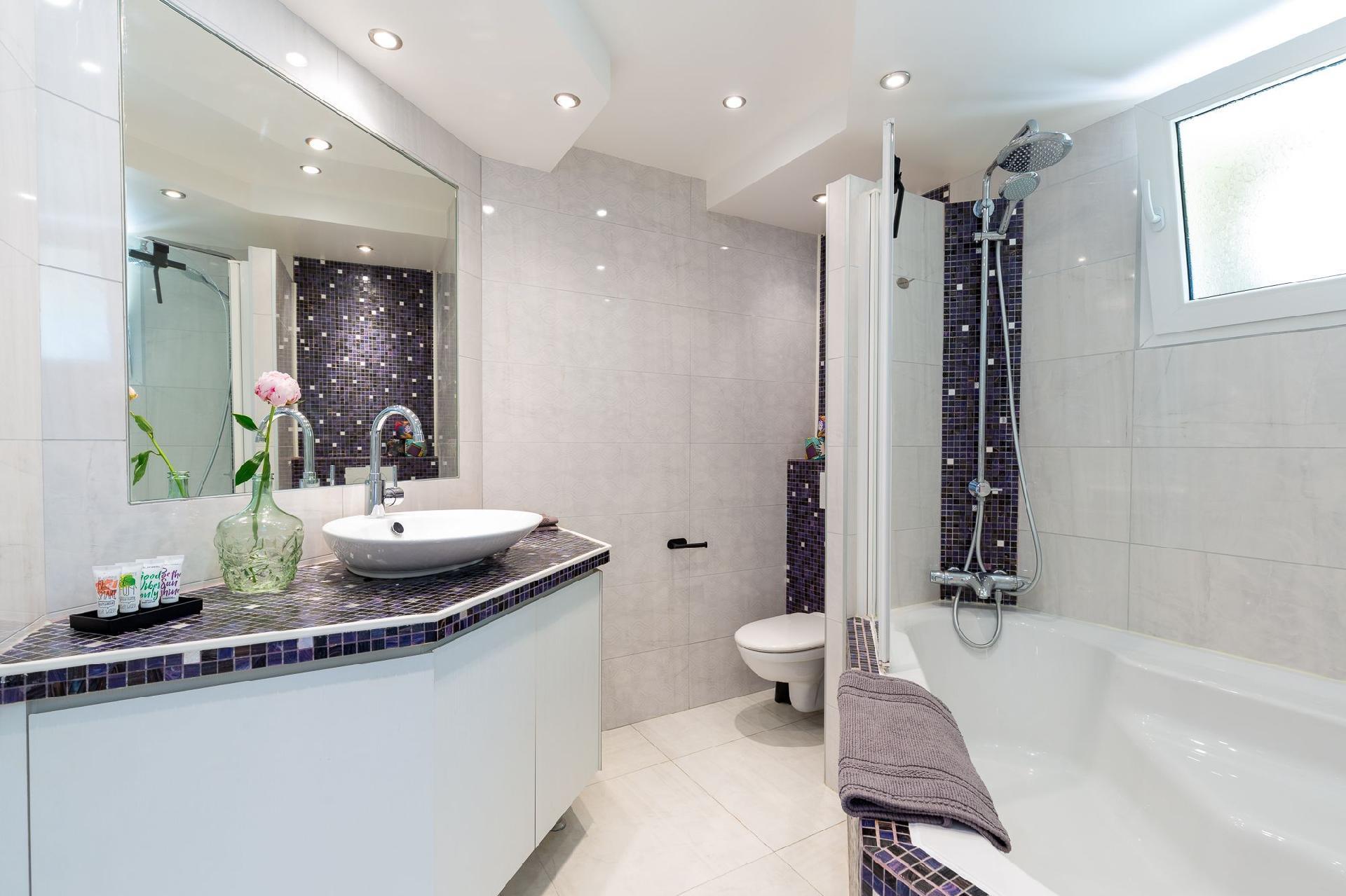 Three bedrooms, each with an ensuite bathroom equipped with a shower, toilet and washbasin (one of the bathrooms has a bathtub/shower). Two bedrooms have a double bed (180x200cm) and one has two single beds that can be put together. One of the rooms has a sofa bed for a child.