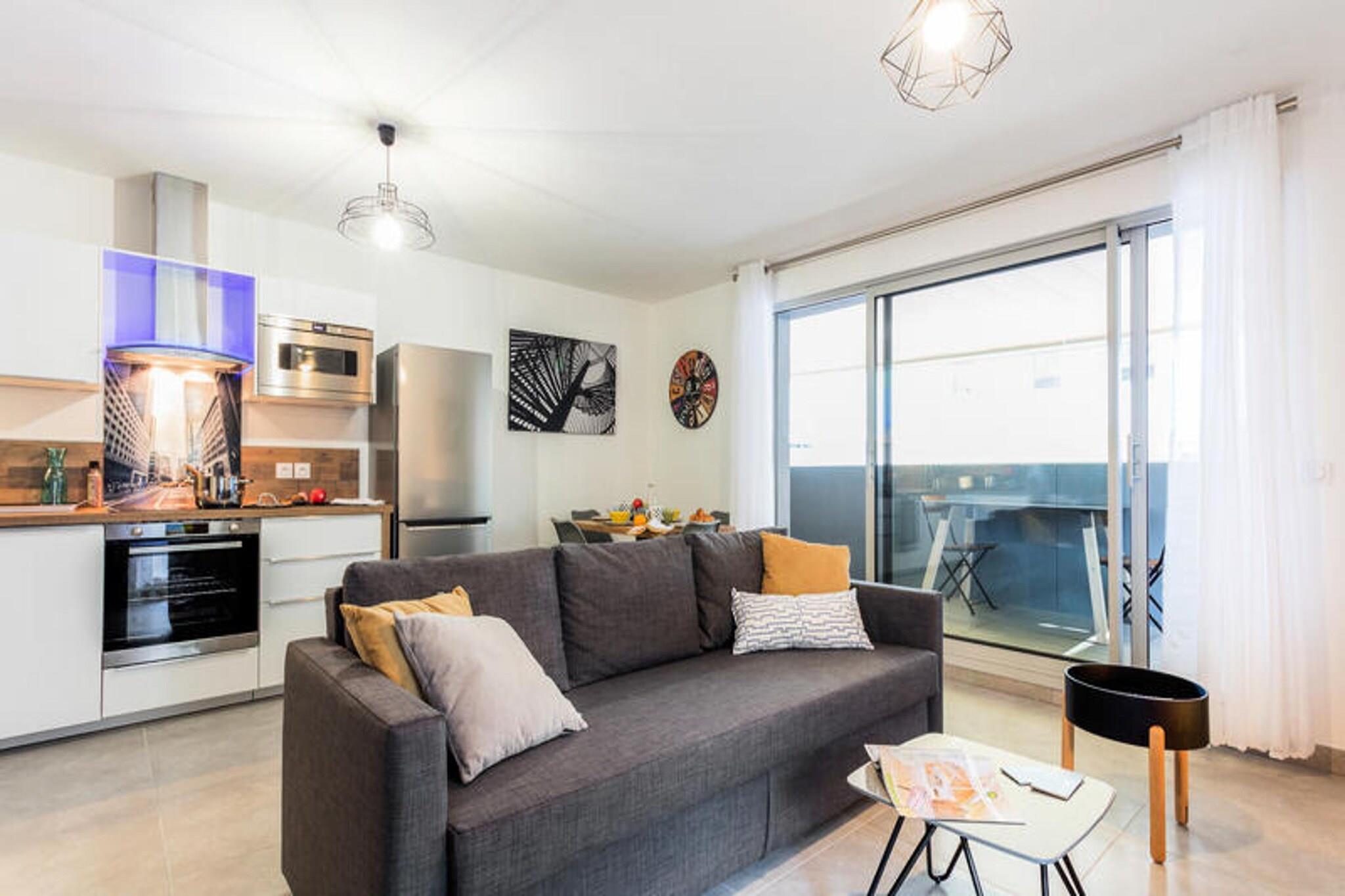 Luminescens – Första conciergeservice Montpellier Parc Marianne-lägenhet 2 till 4 personer. Ljusstyrka, stor och vacker i sina volymer, bor du vid foten av Parc Marianne där du kan promenera eller cykla. Stort öppet vardagsrum kök, dubbel exponering. Fullt utrustat kök, tvättmaskin, diskmaskin, mikrovågsugn, konventionell ugn, kyl, frys, keramikhäll etc. Lägenheten är utrustad med fiber och wifi. Ett sovrum med en stor 160 säng, en mycket bekväm bäddsoffa för vänner. Vacker och stor terrass för avkoppling. Vi valde "Luminescence" för dess idealiska läge. Du kan bo i Montpellier för arbete eller fritid. Spårvagnen och butikerna ligger bara ett stenkast bort. Stranden är inte långt borta. Privat parkering i ett underjordiskt garage. Cykelförvaring. Tillval underjordisk parkering. Lägenheten är utrustad med alla bekvämligheter. Linne ingår. Fiber internet. WIFI. Tv. Närhet, spårvagnshållplats. Montpellier är en fotgängarstad. Ladda ner "WAZE" för din resa.