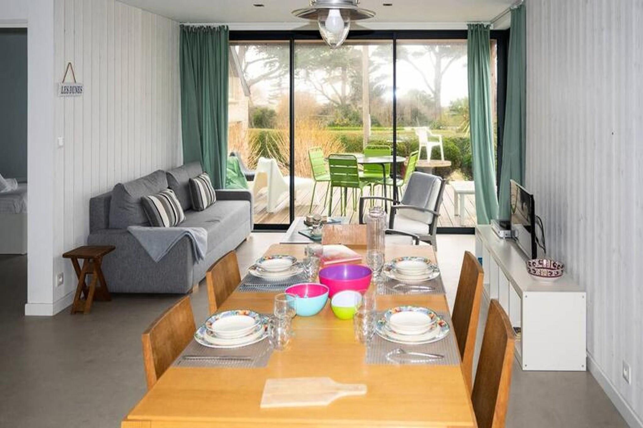 Port Blanc, uthyrning av en modern lägenhet för 4/6 personer, ett stenkast från Dunes beach och en magnifik utsikt över havet. Överallt närvarande, panoramautsikten över havet fängslar ögat hela dagen och förvånar dig på kvällen vid solnedgången. Tack vare dess burspråks alla närvaro har du alltid intrycket av att vara i direkt kontakt med havet. Med sina 60 m2 kommer detta boende med moderna material och raffinerad inredning att erbjuda dig utrymme och ljusstyrka. Den sid Port Blanc, uthyrning av en modern lägenhet för 4/6 personer, ett stenkast från Dunes beach och en magnifik utsikt över havet. Överallt närvarande, panoramautsikten över havet fängslar ögat hela dagen och förvånar dig på kvällen vid solnedgången. Tack vare dess burspråks alla närvaro har du alltid intrycket av att vara i direkt kontakt med havet. Med sina 60 m2 kommer detta boende med moderna material och raffinerad inredning att erbjuda dig utrymme och ljusstyrka. Vardagsrummen, öppna och bekväma, är välutrustade. Det utrustade köket och vardagsrummet vetter mot en terrass som utlovar sysslolöshet och avkoppling mot en blå horisont med ljudet av vågorna. Dess sovplats på bottenvåningen erbjuder dig en master svit, ett sovrum med en våningssäng (2 90 cm sängar). En bäddsoffa (2 sovplatser) i vardagsrummet kommer att uppskattas för att öka antalet bäddar. Parkeringsplatsen och trädgården kommer att delas med ett andra boende för 8/10 personer som du också kan hyra. Inga störningar mellan de 2 boendena. Unna dig en förtrollad paus, ett stenkast från havet. Bad, fiske, promenader längs kusten, kajakpaddling och seglarskolan i närheten... kom och njut av Bretagnes fördelar. En privat conciergeservice står också till ditt förfogande under din vistelse. Leverans av måltider, cyklar och shopping innan din ankomst möjligt vid bokning. Massage, temakvällar (t.ex. pannkakskväll eller födelsedagskväll), förslag och bokning av aktiviteter är också möjliga. En deposition på 1 500 EURO kommer att krävas vid tillträde till lokalen. Städavgiften på 90 EURO kommer att förväntas. Möjlighet att få bäddade sängar vid ankomst för EURO15 per person.