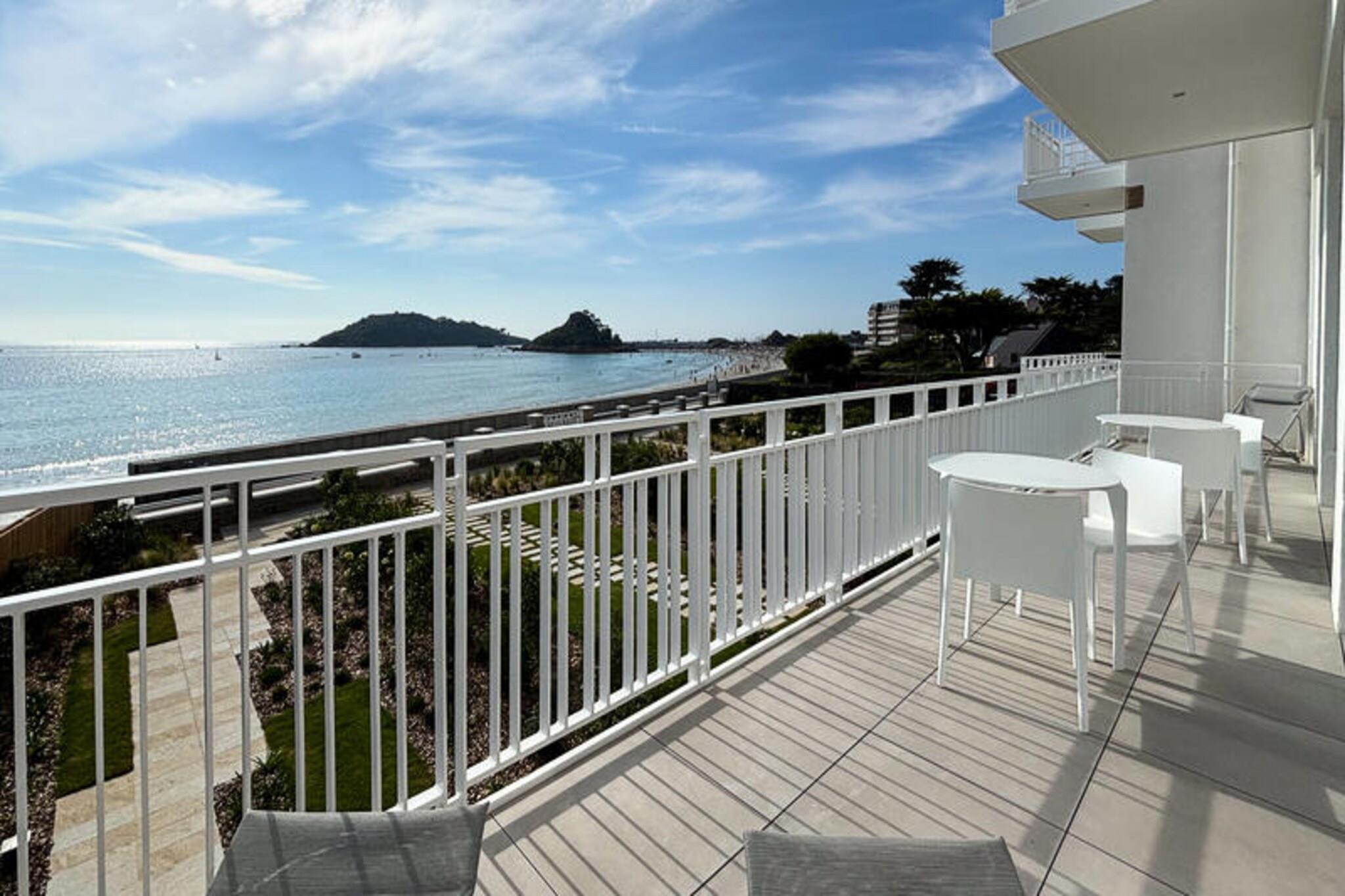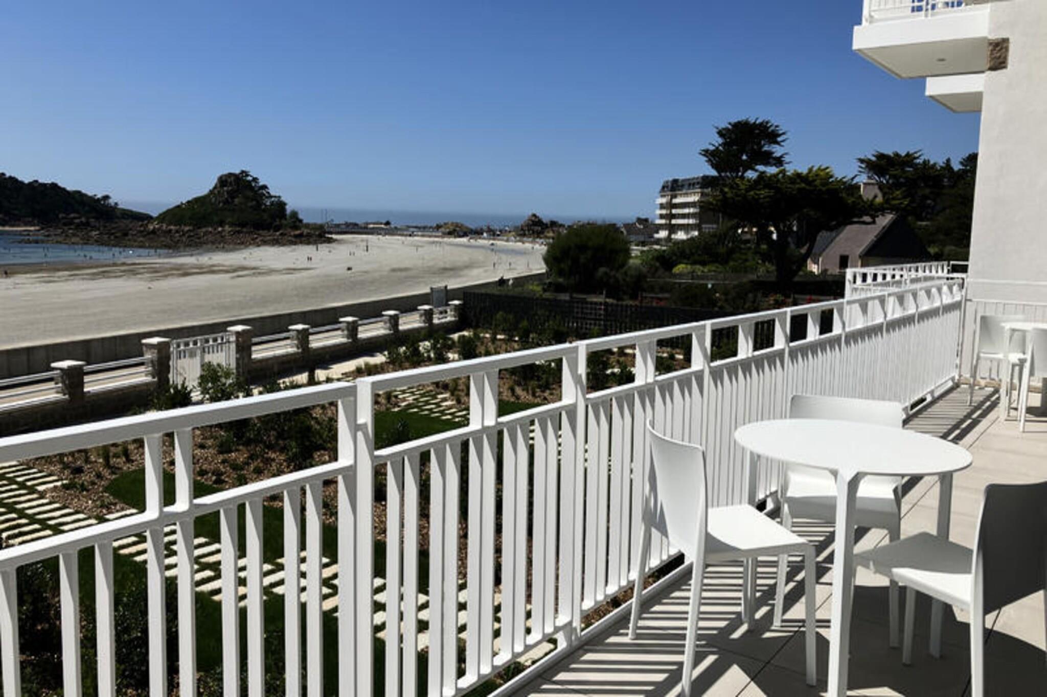 Välkommen till "Rouzic", vår magnifika 4-rumslägenhet belägen i Centre Philippe-Joppé, designad av den berömda arkitektbyrån Wilmotte & Associés. Med direkt tillgång till stranden Tresmeur och hisnande havsutsikt är vårt boende den idealiska platsen för en oförglömlig semester vid havet. "Rouzic" erbjuder dig en exceptionell livsmiljö med sina magnifika uteplatser och bekväma interiörer. Koppla av på den soliga terrassen på 53 m2, eller njut av stunder av gemytlighet på balkongen på 20 m2 som erbjuder en hisnande utsikt över havet. Inuti är det ljusa vardagsrummet på 58 m2 den idealiska platsen för att umgås med familj eller vänner efter en dag av sightseeing. De 3 sovrummen, inklusive en master svit med omklädningsrum och privat badrum, garanterar optimal komfort, tillsammans med ett extra badrum och en separat toalett för större praktiska egenskaper. Du kommer också att ha tillgång till en inomhuspool uppvärmd året runt (15mx4m), så att du kan koppla av oavsett väder. En parkeringsplats är tillgänglig för dig, med en elfordonsterminal tillgänglig. Bostaden är säker med närvaro av en vakt på plats, vilket garanterar din sinnesfrid. Dessutom finns en hiss tillgänglig för att göra din resa enklare. Observera att det nya Philippe-Joppé Center kommer att öppna officiellt den 13 juli 2024. Bilderna som tillhandahålls är inte avtalsenliga, vissa är 3D-bilder, andra togs under inspelningen av modelllägenheten i februari 2024 som presenterar en atmosfär och möbler liknande på alla sätt till de i "Rouzic" lägenheten. Vi ser fram emot att välkomna dig till "Rouzic" för en oförglömlig semester vid havet i Bretagne. Boka nu för att uppleva en unik upplevelse i vårt lilla hörn av paradiset.