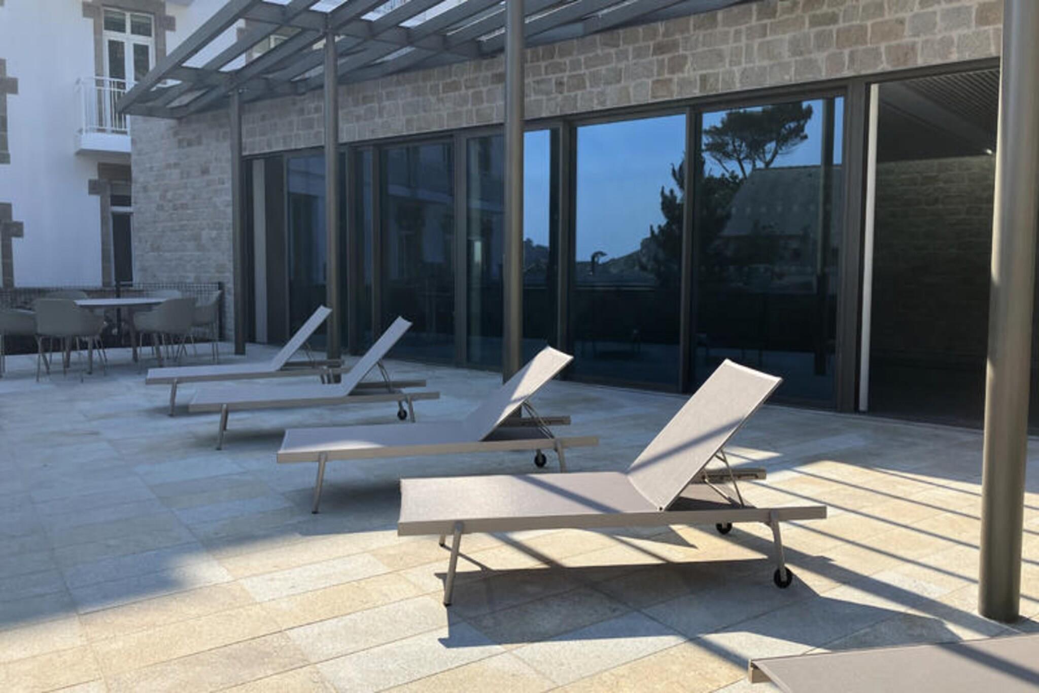 Välkommen till Philippe Joppé Residence: Upptäck charmen med Résidence Philippe Joppé, en plats där komfort och lugn möts. Beläget i Trébeurden, på Côte de Granit Rose, erbjuder vårt residens dig en rymlig och elegant lägenhet på 70 m², som heter LE TOENNO. Utrustad med ett stort vardagsrum, ett fullt utrustat kök med en Nespresso-maskin, ett bekvämt vardagsrum och en terrass som vetter mot havet, kommer du att njuta av en hisnande utsikt över Tresmeur-stranden och solnedgångarna. spektakulärt solsken på Milliau Island. Med en året runt uppvärmd pool och moderna faciliteter kommer du att uppleva en oförglömlig vistelse. Miljö och idealiskt läge: Résidence Philippe Joppé är idealiskt beläget i slutet av Tresmeur-stranden för mer lugn. Du kommer att ha direkt tillgång till stranden och kommer att vara nära många kända restauranger som Ty Al Lannec och Lan Kerrelec, inom gångavstånd. Residenset ligger också nära småbåtshamnen och lokala bekvämligheter, och erbjuder en mängd aktiviteter för alla smaker. Du kan släppa av dina barn vid seglarskolan på en fem minuters promenad och utforska de magnifika kustlederna, inklusive GR34 med Pointe de Bihit som den första vandringsplatsen som avgår från residenset. Observera: Vår bostad är säker och helt inhägnad, med säker parkering och en laddstation för elfordon. För din bekvämlighet tillhandahåller vi ett pingisbord, en tvättmaskin/torktumlare och modern utrustning. Lägenheten har ett sovrum med dusch, ett andra sovrum med badkar och en separat toalett. I priset ingår städavgifter, lakan och handdukar, så att du kan resa lätt och njuta fullt ut av din vistelse. Designat av den berömda arkitektbyrån Wilmotte & Associés, är detta boende badat i ljus en fridfull oas där varje detalj är tänkt för ditt välbefinnande. Vi respekterar alla säkerhets- och hygienåtgärder för att garantera en trevlig och bekymmersfri vistelse.