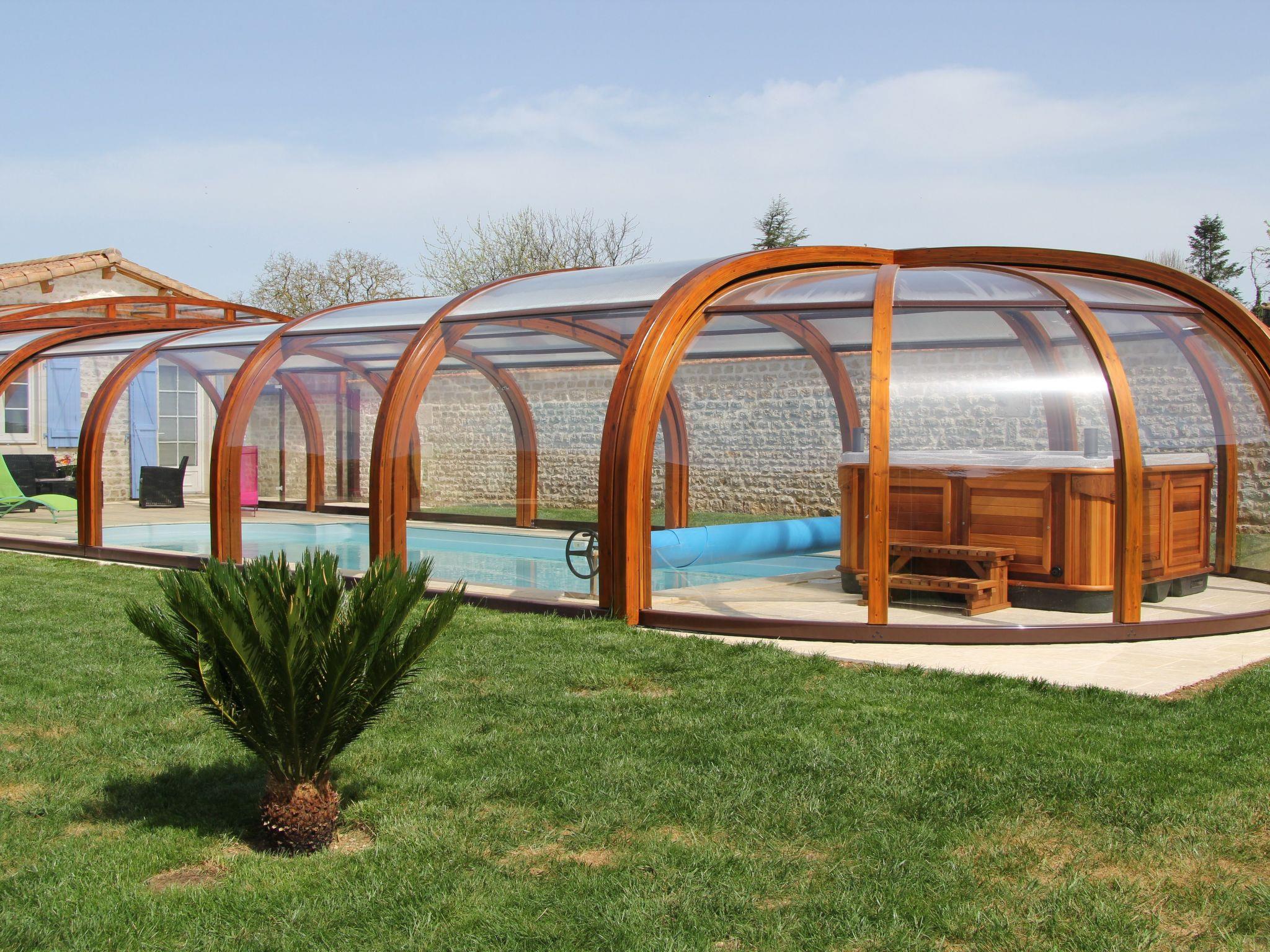 At the heart of the residence, you'll find a private, covered swimming pool and spa, a promise of relaxing, refreshing moments under the sun. The adjacent terrace offers the perfect space for al fresco dining or simply to enjoy the surrounding peace and quiet. The private garden invites you to relax and play outside, providing an idyllic setting for your holiday.