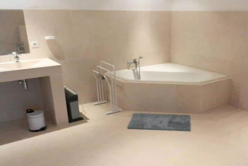 , Vardagsrum(TV, matbord, sitthörna, luftkonditionering), Kök(Kokplattor, kaffebryggare, ugn, diskmaskin, kylskåp, ), sovrum(dubbelsäng), sovrum(dubbelsäng), sovrum(dubbelsäng), sovrum(dubbelsäng), badrum(badkar, dusch, handfat, toalett ), badrum(badkar, dusch, handfat, toalett ), badrum(badkar, dusch, handfat, toalett ), tvättmaskin, terrass(, Grillplats, Subtropiskt badland, trädgårdsmöbler, solstole, swimmingpool), strykbräda, strykjärn