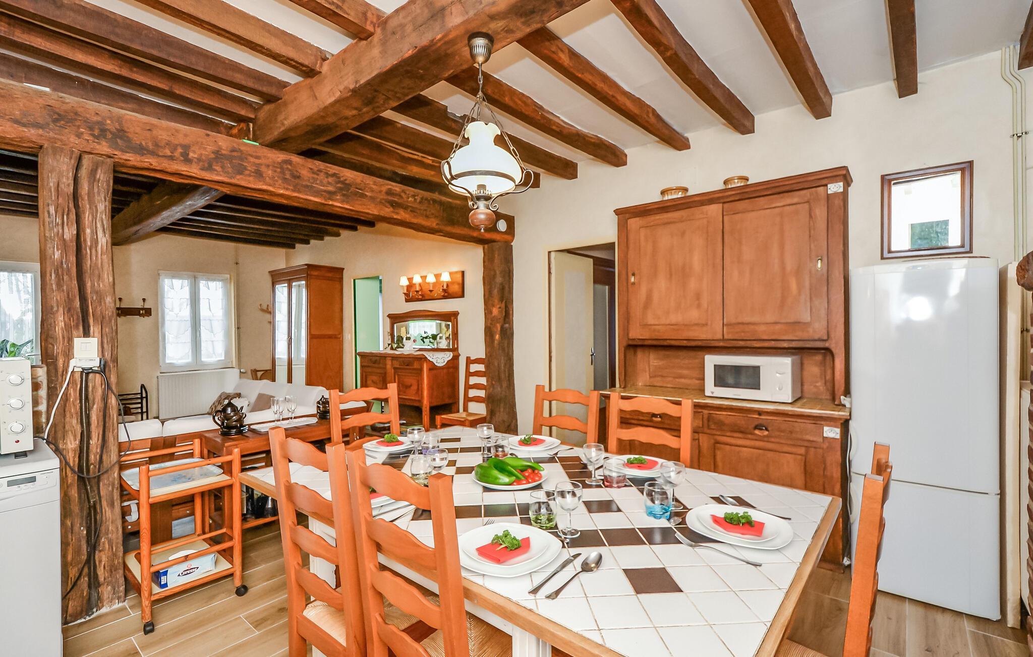 Res till byn Rubigny och fly din hektiska vardag i detta korsvirkeshus på ett lugnt läge. Det inbjudande huset ligger på en nivå och erbjuder modern komfort. Symbiosen mellan modern inredning och synliga träbjälkar, den öppna spisen och de många bekvämligheterna lovar en lyckad semester med hela familjen. Oavsett väder kan du njuta av simning i den uppvärmda inomhuspoolen eller hålla dig i form under din semester i fitnessområdet.
