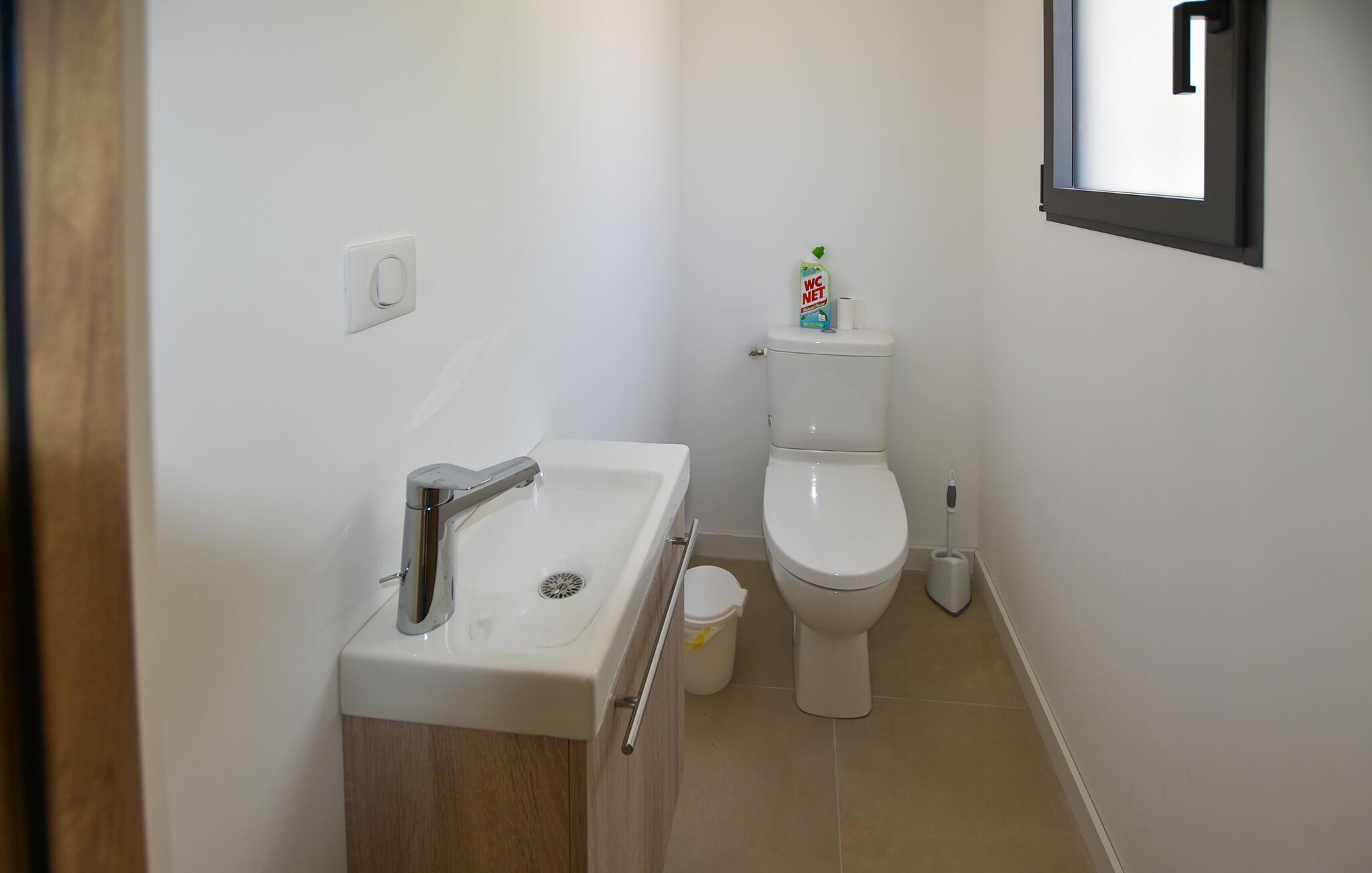 Välkommen till detta ljusa och smakfullt inredda semesterhus, som välkomnar dig med en lugnande och stilfull atmosfär. Laga läckra måltider tillsammans i det öppna köket med färska produkter från marknaden och slå dig ner vid det rymliga matbordet. Använd den mysiga soffgruppen för stimulerande samtal, avkopplande läsning eller sällskapliga spelkvällar.
