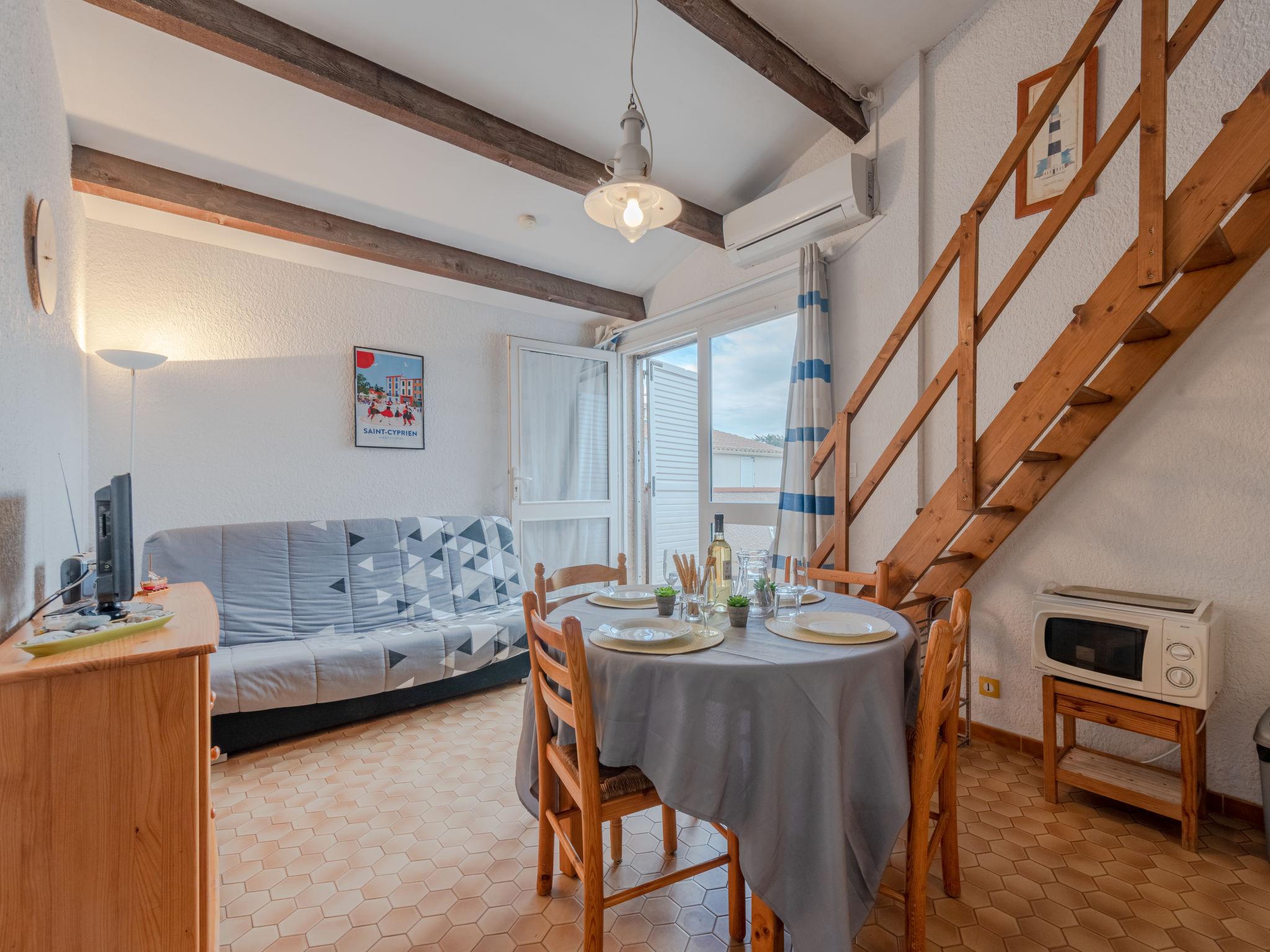 Residence "Les Casellas". In the centre of Saint-Cyprien, 600 m from the sea, 600 m from the beach. Shop 200 m, supermarket 250 m, restaurant 200 m, bar 750 m, bakery 350 m, bus stop 250 m, railway station 7.4 km, sandy beach "Plage de l'Art" 600 m. Sports harbour 1.3 km, golf course (27 hole) 2 km, sailing school 3 km, minigolf 1.2 km, riding stable 2.5 km, sports centre 3.6 km. Nearby attractions: Aqualand 5 km.