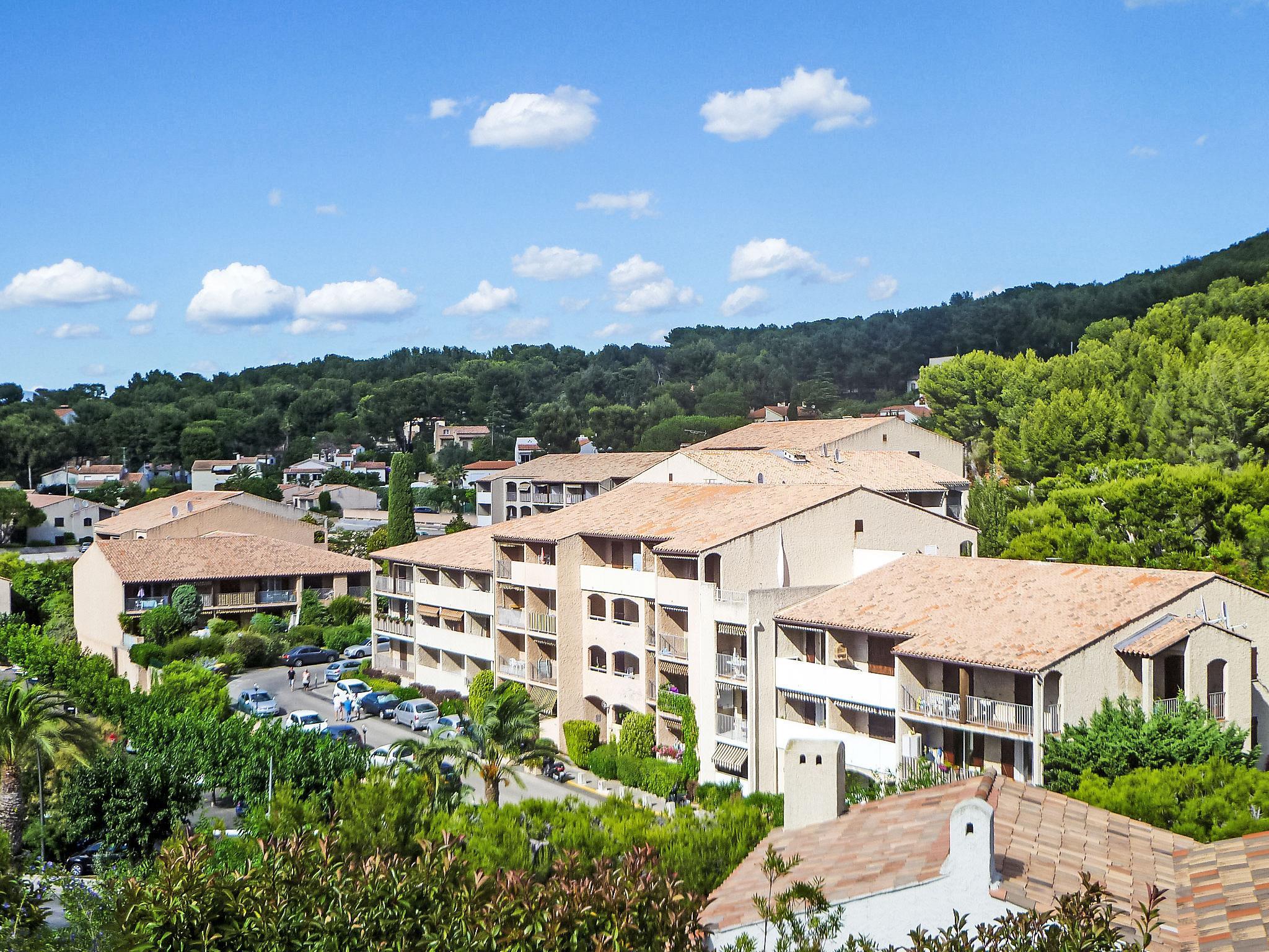 Residence "Les Aigues Marines", 3 storeys. In the resort 2 km from the centre of Saint Cyr sur Mer, in an elevated position in the residential district, 600 m from the sea, 600 m from the beach, located by a road, in the countryside. Parking (limited number of spaces), public parking extra. Grocery 200 m, restaurant 500 m, bus stop "Le Viguier" 2.3 km, railway station "Saint Cyr les Lecques-La Cadière" 3.1 km, sandy beach "La Madrague", shingle beach 600 m. Sports harbour 500 m, golf course (18 hole) 4 km. Nearby attractions: Aqualand 3 km, Sentier du Littoral 1 km. Hiking paths: Sainte Baume, Sainte Victoire, Calanques Port-Cros, Porquerolles, Ile verte, Embiez, Figuerolles, Cassis. Please note: the keys‘ handover takes place by the agency INTERHOME in St Cyr La Madrague. The photograph shows a typical example. Additional accommodations can be booked.