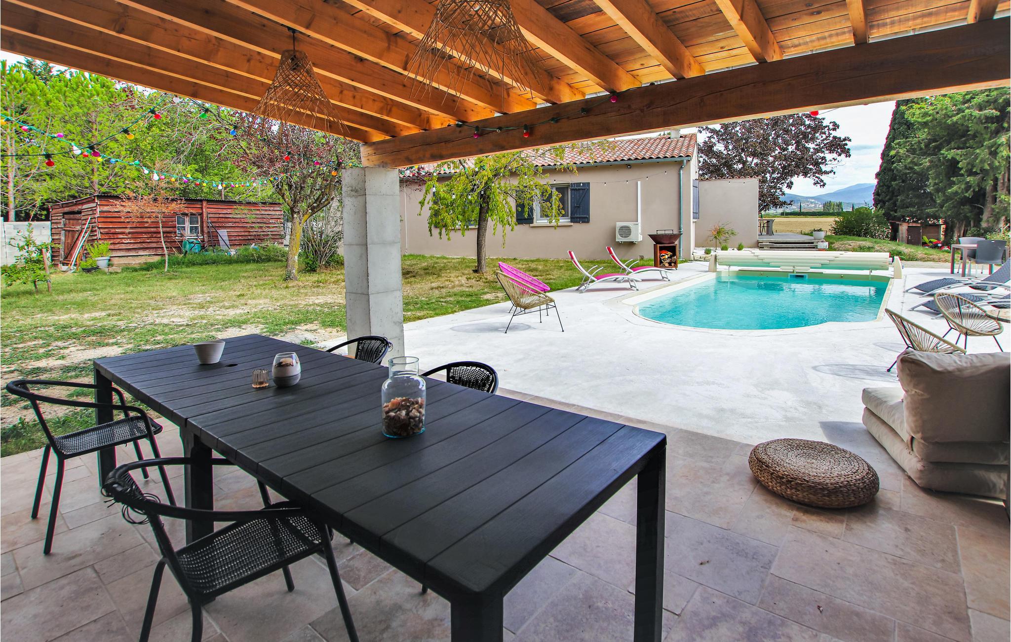 Den enkla inredningen kommer att glädja dig med sin trivsamma atmosfär som inbjuder till avkoppling. Materialens kvalitet och ljusstyrkan bidrar till den känsla av välbefinnande som kommer över dig så fort du går in genom dörren. Den stora solterrassen och sommarköket med grill bjuder in till trevliga timmar med familj eller vänner under den vackra Provence-solen. Du kan också njuta av den inbjudande poolen med soldäck. De små kommer inte heller att missa något och hittar en privat lekplats i trädgården.
