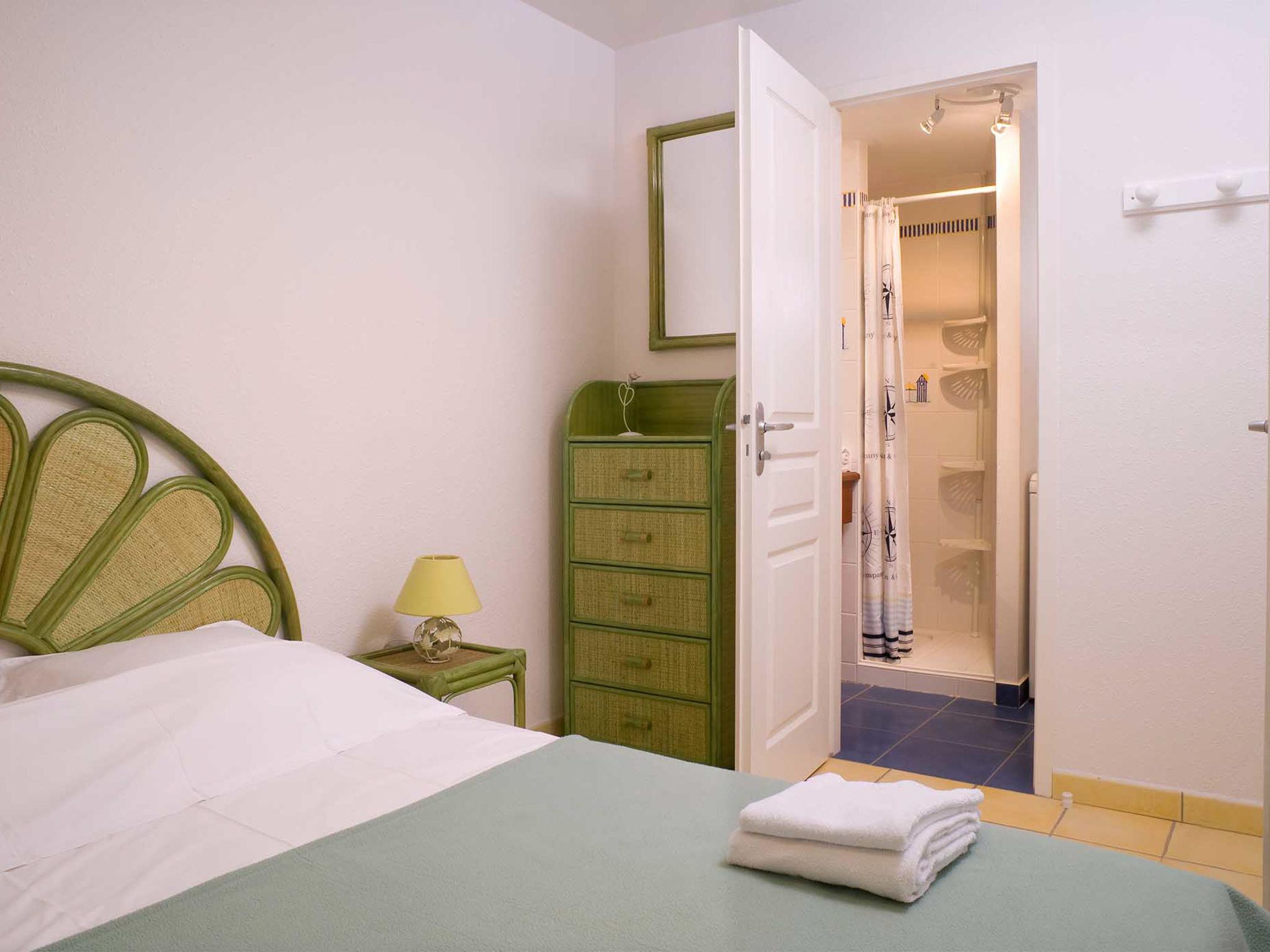 "Les Mas de St. Hilaire", 3-room terraced house 56 m2 on 2 levels. Practical furnishings: living/dining room with dining table and TV can be hired. 1 room with 2 beds. Kitchenette (4 ceramic glass hob hotplates, toaster, kettle, microwave, electric coffee machine). Sep. WC, bath or shower. Upper floor: open gallery with 2 sleeping facilities. 1 room with 2 beds. Sep. WC, bath or shower. Electric heating. Terrace, small garden 25 m2. Terrace furniture. Please note: non-smoking house. Maximum 2 pets/ dogs allowed. Smoke alarm. Instead of an enclosed bedroom, some sleeping areas are located in an open-plan area (gallery, alcove, etc.).