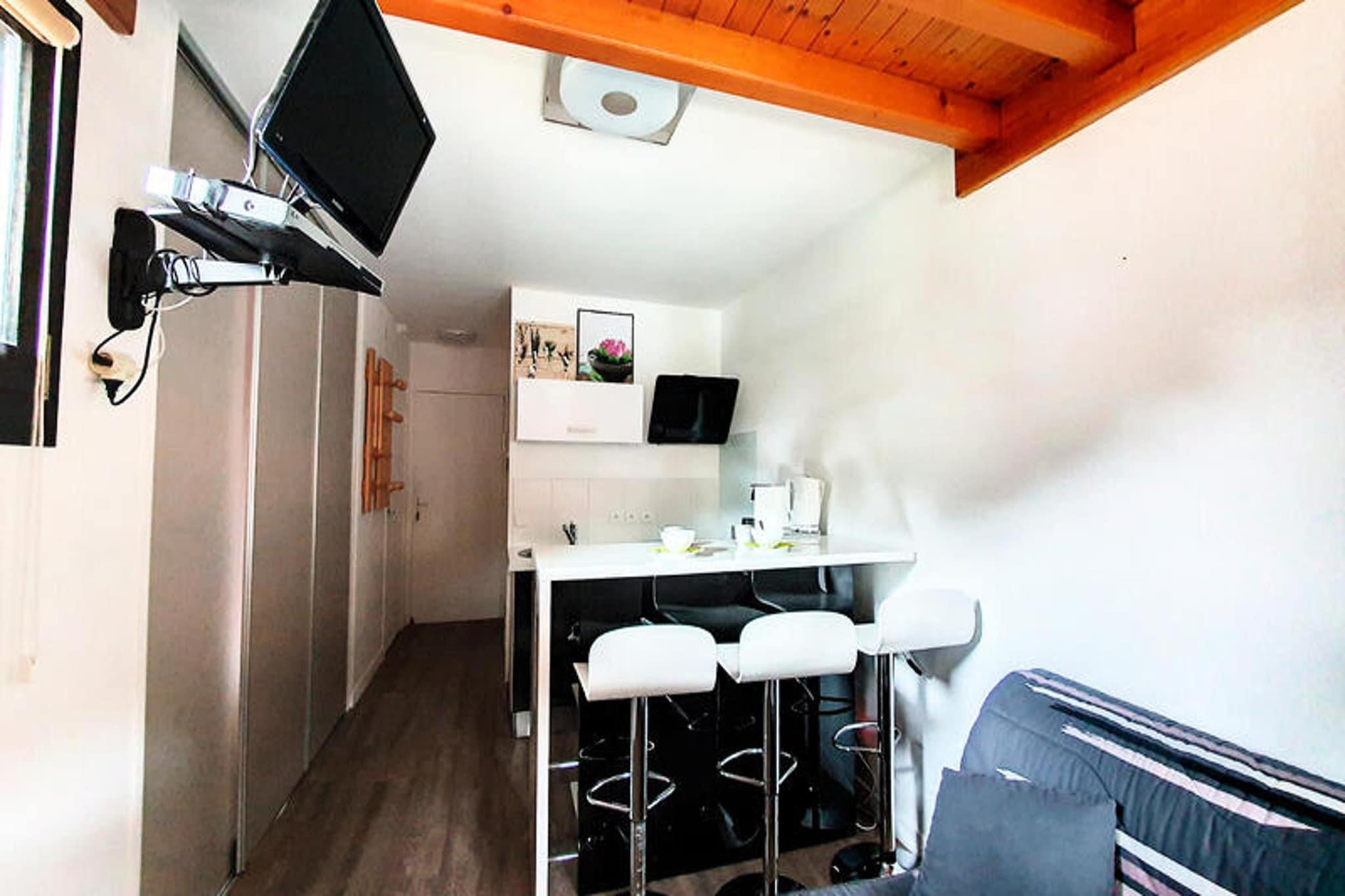 Denna mysiga studiolägenhet rymmer upp till 3 gäster och har en hopfällbar dubbelsäng och en bäddsoffa. Det är inte husdjursvänligt och har inte Wi-Fi. Täcken och kuddar finns till alla sängar, men gästerna måste ta med egna sängkläder och handdukar. Lägenheten erbjuder privat parkering vid bostaden, utan anvisade parkeringsplatser, samt ett cykelrum för sommarförvaring och ett skidrum för vinterbruk. Beläget i hjärtat av Morzine, erbjuder lägenheten enkel tillgång till lokala bekvämligheter, inklusive kaféer, butiker och restauranger. Stadens centrum ligger bara några steg bort och erbjuder en livlig atmosfär året runt. Skidbackar och utomhusaktiviteter är lättillgängliga, vilket gör denna lägenhet till en idealisk bas för att utforska regionens naturliga skönhet. Lägenheten har ett fullt utrustat kök med induktionshäll, kyl, frys, ugn, mikrovågsugn och kaffebryggare. En raclette- och fonduemaskin finns också tillgänglig för gästerna. Badrummet har en spadusch, handdukstork, handfat och toalett. Det ljusa vardagsrummet är möblerat med en TV och ett matbord med 4 stolar.