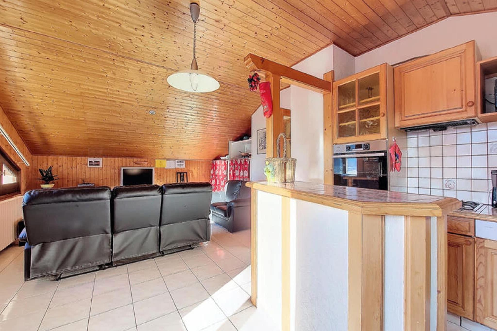 Denna rymliga lägenhet på 97 m² rymmer bekvämt 6-7 personer och ligger på översta våningen i ett fristående hus i den fridfulla byn Mouilles, Saint Jean d'Aulps. Den har tre mysiga sovrum, inklusive en master med dubbelsäng och ett andra sovrum med en dubbelsäng och en enkelsäng. Det tredje lilla sovrummet har våningssängar, perfekt för barn eller ytterligare gäster. Lägenheten är djurfri, vilket säkerställer en lugn och avkopplande miljö för alla. Du kan njuta av fantastisk utsikt över bergen och byn från lägenhetens balkong. Boendet ligger bara 2 km från centrala Saint Jean d'Aulps, där besökare kan utforska lokala marknader, butiker, kaféer och restauranger. Området erbjuder en lugn miljö samtidigt som det är nära till skidorter och utomhusaktiviteter. Sjön Montriond, bara 15 km bort, erbjuder möjligheter till vandring och vattensporter under sommarmånaderna, medan de omgivande bergen är idealiska för skidåkning på vintern. Lägenhetens läge ger också enkel tillgång till närliggande Thonon-les-Bains, och erbjuder ännu fler bekvämligheter och attraktioner. Lägenheten är välutrustad med ett fullt funktionellt kök, inklusive ett kylskåp, gasspis, ugn, mikrovågsugn och diskmaskin, vilket gör den idealisk för att laga mat. Det stora vardagsrummet med öppen planlösning har en skinnsoffa, fåtölj och TV för avkoppling. Ett badrum med badkar och en separat toalett erbjuder bekvämlighet, och det finns ett skidrum för förvaring av vinterutrustning. Ytterligare bekvämligheter inkluderar en fondue- och raclettemaskin för mysiga måltider och WIFI för att hålla kontakten under din vistelse.