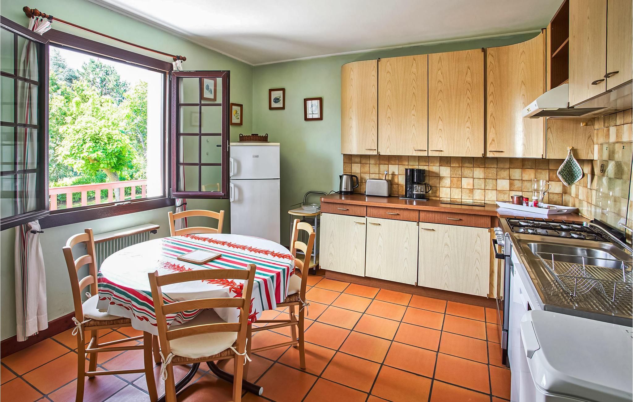 Denna semesterbostad ligger på första våningen i ett hus byggt i typisk baskisk stil och har ett lugnt läge i utkanten av Saint-Jean-de-Luz. Det är en utmärkt utgångspunkt för att upptäcka denna region, som är vacker under alla årstider. Det är inte långt till Atlantstränderna, som inbjuder till lummel och som också är mycket populära bland surfare. Detsamma gäller städerna Biarritz och Bayonne, som är väl värda ett besök. Bara några kilometer bort bjuder Pyrenéerna in till underbara utflykter, och mindre än en halvtimmes bilresa skiljer dig från den spanska gränsen. Den vänliga hyresvärdinnan, som talar fem språk, bor på husets bottenvåning, men lämnar dig den stora terrassen och den över 1 hektar stora trädgården med blommor och gräsmatta.