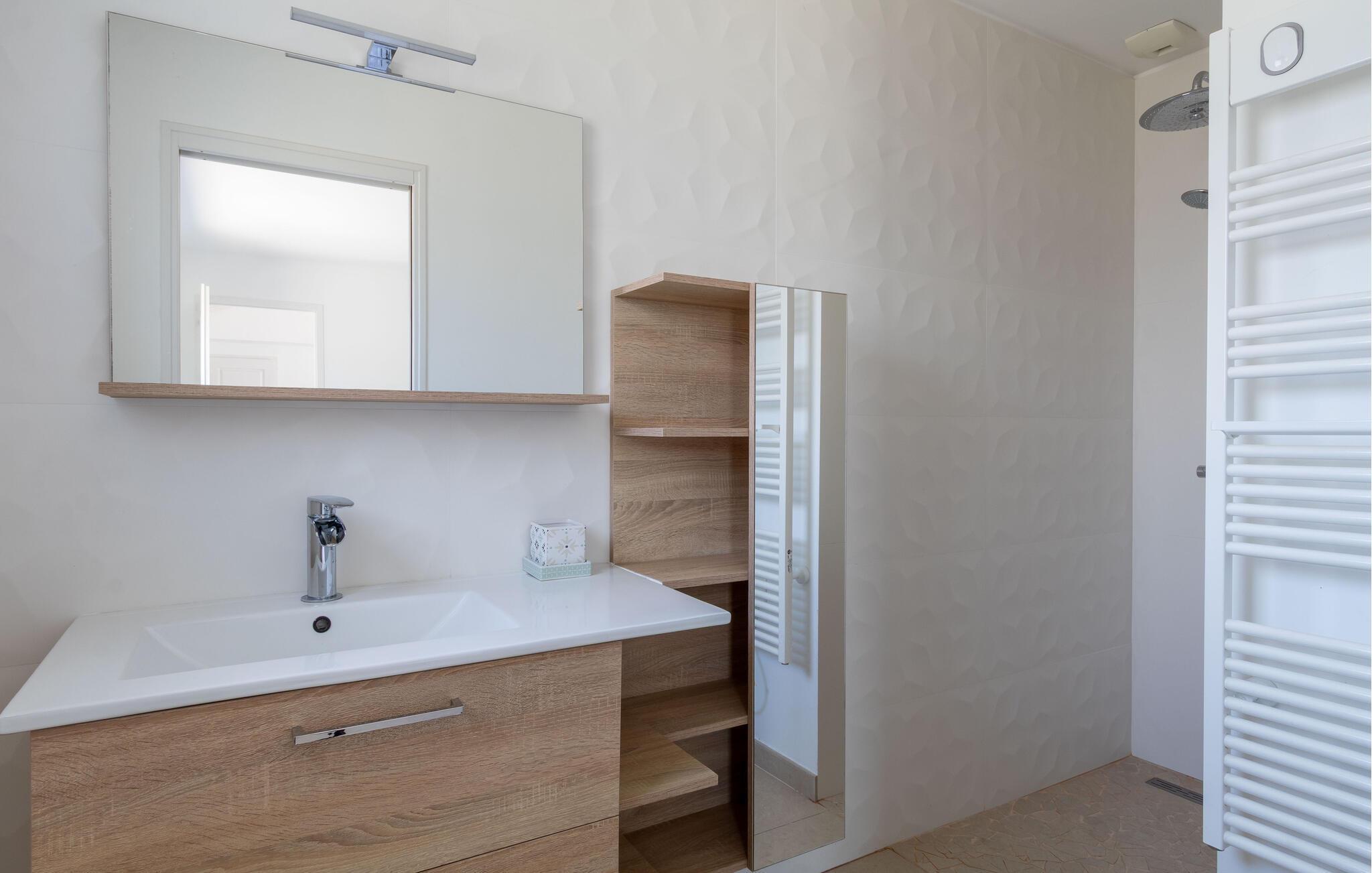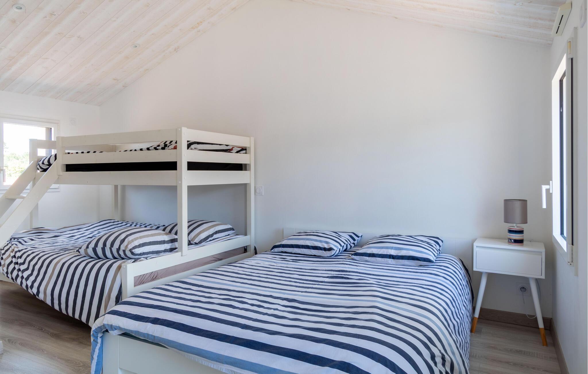 Se fram emot en solig semester i detta moderna semesterhus med uppvärmd inomhuspool.