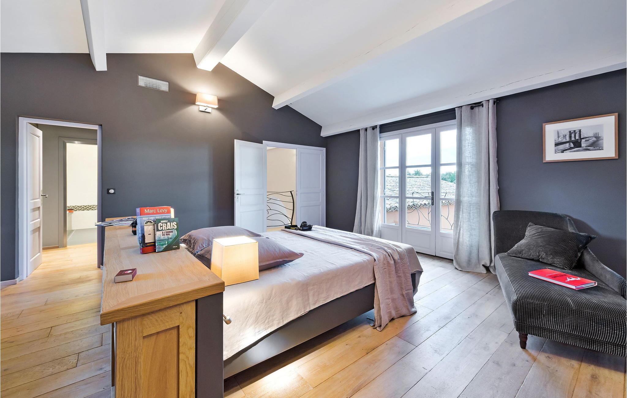 Lyxvillan i Saint Siffret ligger nära Uzès och välkomnar sina gäster till en rymlig tomt omgiven av en vackert anlagd trädgård med en uppvärmd pool (12 x 5 meter), ett rogivande spa och en pittoresk fontän. Villan ligger på en grönskande tomt och erbjuder en lugn tillflyktsort bara ett stenkast från den charmiga byn Saint Siffret och den pittoreska staden Uzès. Villans bottenvåning har olika rum, inklusive ett mysigt vardagsrum med bekväma soffor, en matplats och ett TV/läsrum i kolonialstil. Det fullt utrustade köket. Det finns två sovrum på denna nivå, som har golvkylning på sommaren och golvvärme på vintern. Om du går upp till första våningen hittar du tre luftkonditionerade sovrum med en-suite badrum på övervåningen, inklusive ett med en stor terrass med utsikt över trädgården. Utanför erbjuder villan solstolar och en sittgrupp i trädgården i skuggan av poolhuset, ett matbord under en pergola och ett täckt sommarkök. Den privata uppvärmda poolen (12 m x 5 m) är skyddad av ett elektriskt säkerhetsskydd. Dessutom finns en bubbelpool ovan jord för avkoppling, men extra tillsyn rekommenderas för små barn. Gästerna kan dra nytta av ytterligare tjänster på plats, inklusive städning och matleverans vid ankomsten, vilket förbättrar den totala upplevelsen av deras vistelse. Villan ligger i ett bostadsområde, cirka 2 km från Saint Siffrets bykärna. I Saint Siffret hittar du alla lokala butiker: livsmedelsbutiker, bagerier, restauranger. Ytterligare shoppingmöjligheter finns i Uzès eller Saint Quentin la Poterie.