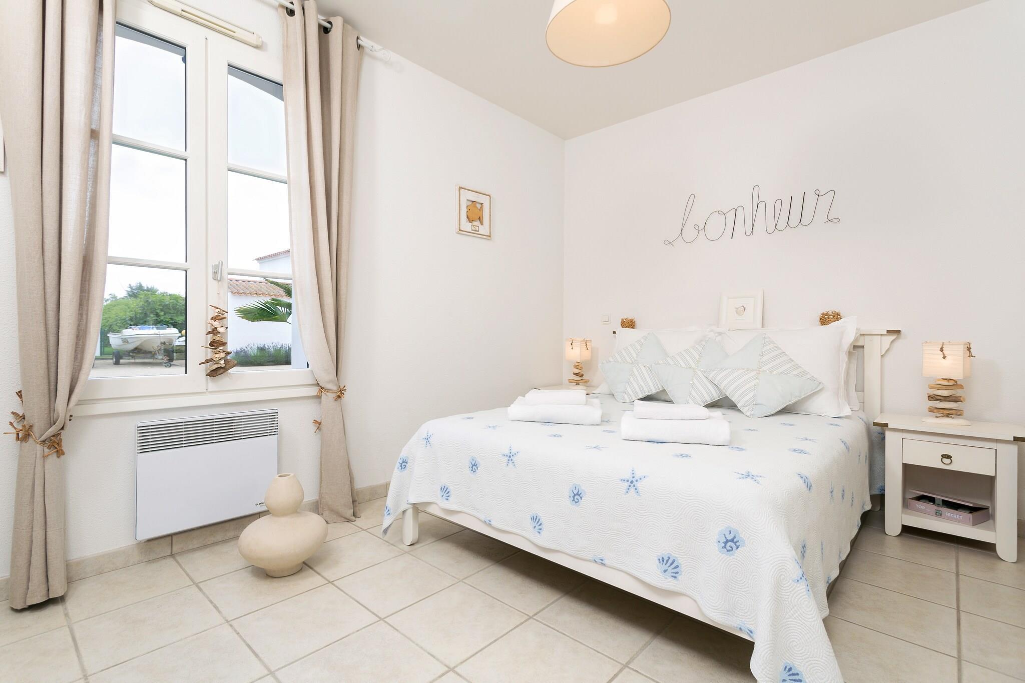 Välkommen till din soldränkta fristad i Saint-Jean-de-Monts! Denna rymliga villa är perfekt för familjer eller grupper som söker en blandning av lyx och avkoppling. Med en privat uppvärmningsbar pool inbäddad i en inhägnad trädgård, ett luftigt vardagsrum med skjutdörrar till terrassen och ett fullt utrustat öppet kök, inbjuder varje hörn till komfort. Villan rymmer upp till 8 gäster fördelat på fyra mysiga sovrum och två badrum. Njut av kvällarna vid grillen eller varva ner inomhus med internationell TV och en DVD-spelare. Inbäddat mellan frodiga tallskogar och bara 3,5 km från den fantastiska Vendée-kusten, erbjuder detta hem det bästa av både stranden och naturen. Utforska natursköna cykelleder, vandra på de skuggiga skogsstigarna eller ta en färja till den pittoreska Île d'Yeu för slottsturer och picknick vid stranden. För en familjedag ute, besök akvariet i Noirmoutier eller de spännande rutschbanorna i vattenparken Plage Merlin. Golfbanan med 18 hål och det närliggande thalassospaet ger vuxna en känsla av överseende. Den livliga stadskärnan i Saint-Jean-de-Monts ligger bara några minuter bort, full av restauranger vid havet, crêperier och marknader som säljer färska lokala rätter. Njut av en middag i solnedgången med utsikt över Atlanten eller ta bakverk från boulangerieloppet på morgonen. Ta med din lurviga vän? Du har tur – hundar är välkomna på många lokala stränder (som Demoiselles Beach före 10:00 och efter 19:00), och skogsstigarna erbjuder oändliga sniffningsäventyr. Denna villa är inte bara husdjursvänlig – den är perfekt för husdjur.
