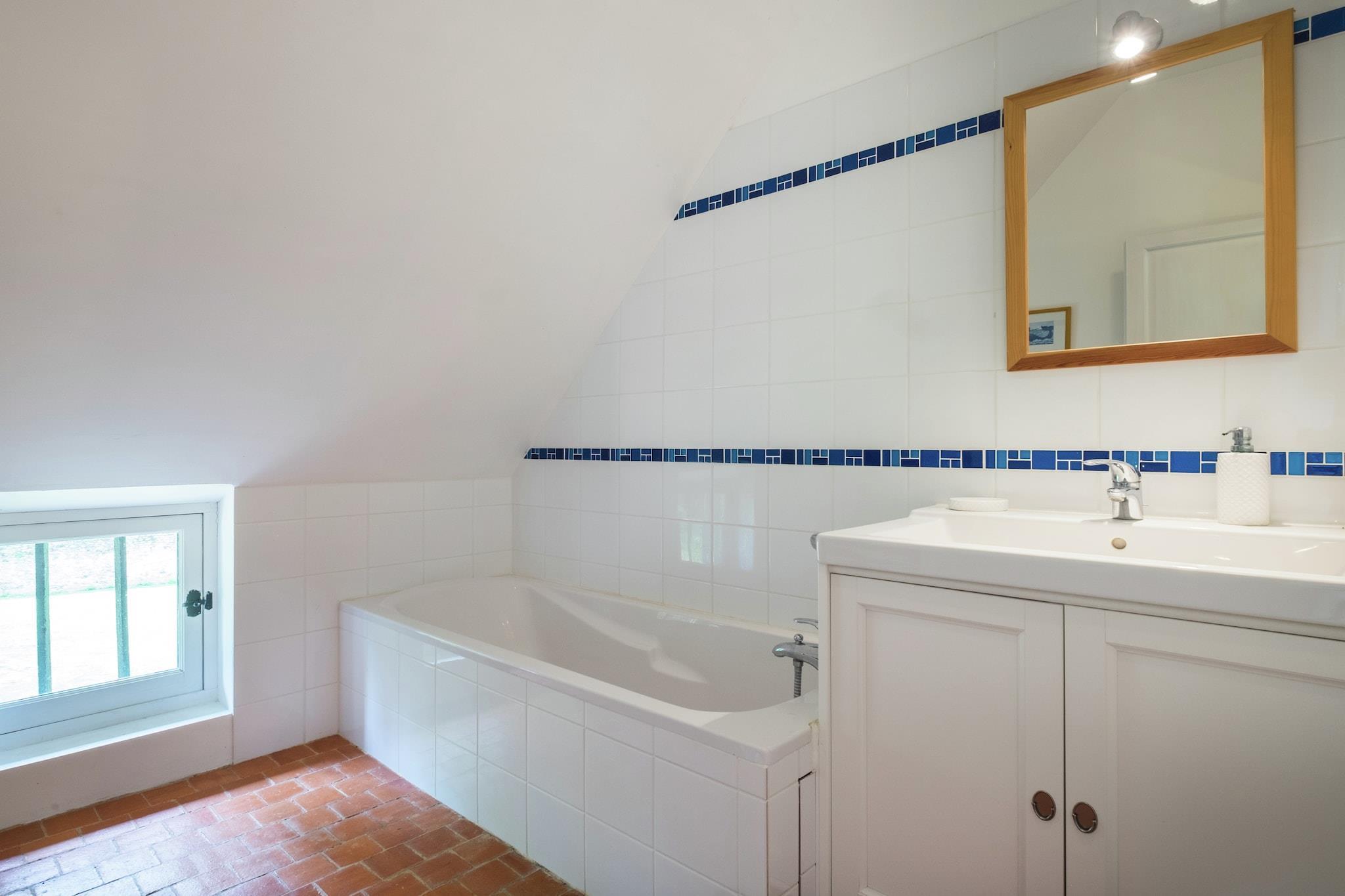 En helt återställd Korsvirkeshus med all charm i går och bekvämligheter i dag. En idealisk kombination för en trevlig och bekväm vistelse! Båda våningarna har golvvärme och alla rum har ett modernt badrum. Det rymliga vardagsrummet och köket ger gott plats för att äta tillsammans. Om vädret är fint kan du dra nytta av de stora burspråken eller sitta ute på terrassen.Den stora privata trädgården, med utsikt över slottet och dess marker, är en idealisk plats för att njuta av total stillhet. Om du vill ha något annat, och för att kunna njuta av en avkopplande miljö, kan du gå till naturparken (30min.). Labas, kan du gå och cykla. Upptäck de Saosnois kullar och fält runt ser och Alençon. I området finns även imponerande skogar: Écouves, Andaines, Perseigne, Sillé och Alpes Mancelles. Slottet är ockuperat av husets ägare. Besök möjligt efter överenskommelse. På grund av vägarbeten kan det hända att fordon inte kan närma sig inom 300 meter från fritidshuset under månaderna januari och februari 2022.