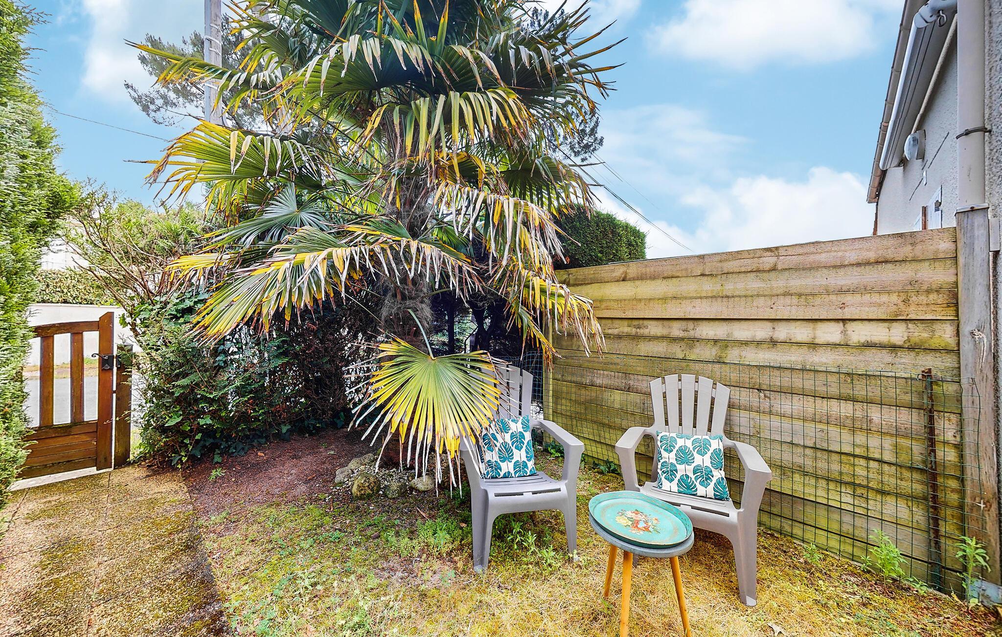 Koppla av på den mysiga terrassen med en liten trädgård och njut av ditt morgonkaffe innan du beger dig ut till de många fritidsaktiviteterna som stand-up paddle och vindsurfing i närheten.