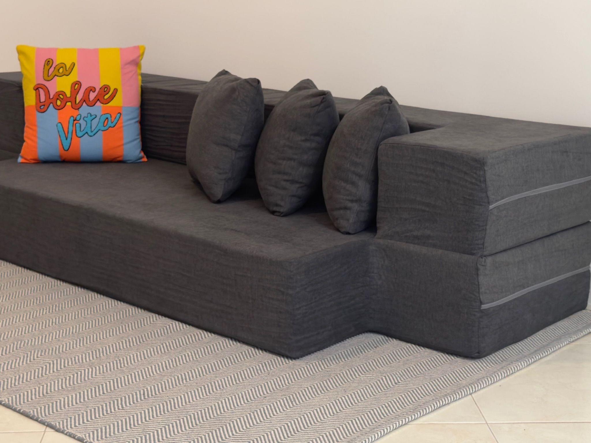 - Sleeping area in the living room with sofa bed for 2 people, flat-screen TV and access to a balcony