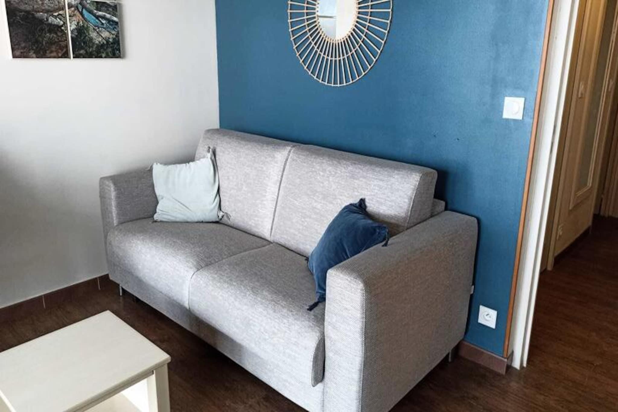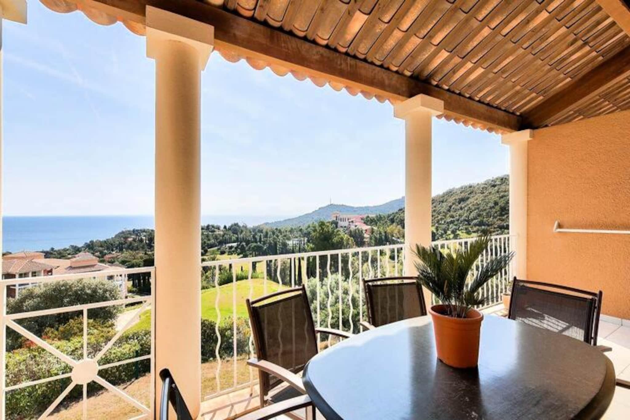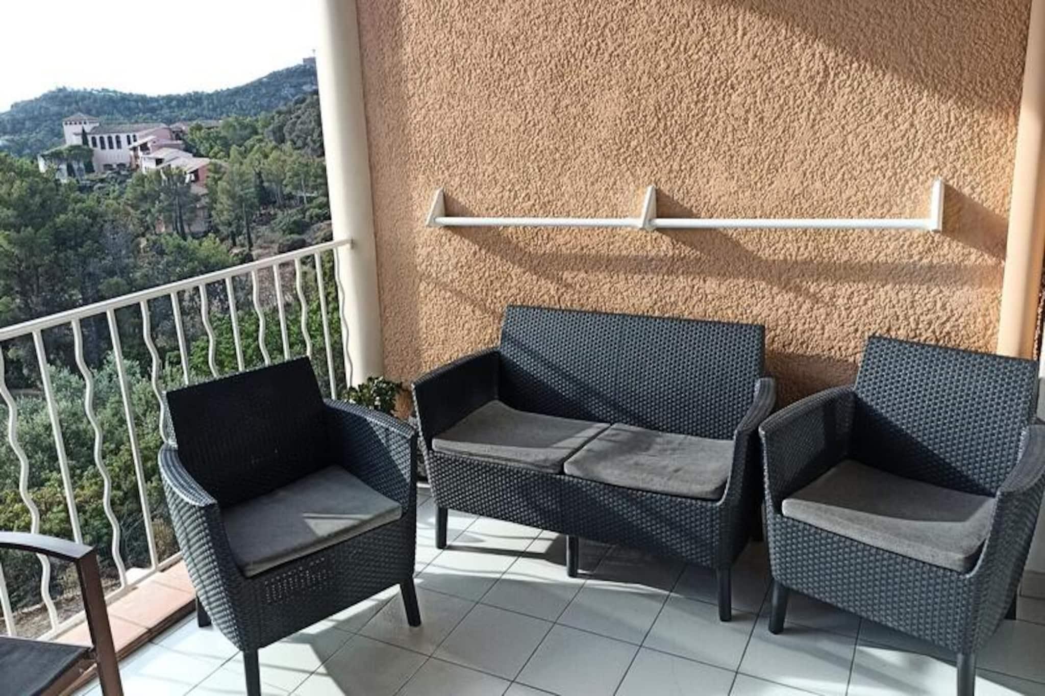 Denna lägenhet på 37 m² rymmer bekvämt upp till 6 gäster, med en dubbelsäng i sovrummet, en bäddsoffa och en utdragbar säng i vardagsrummet. Det är husdjursvänligt och tillåter husdjur med förfrågan. Lägenheten har även luftkonditionering, en täckt terrass med panoramautsikt över havet och en parkeringsplats. Fastigheten erbjuder nödvändiga bekvämligheter, inklusive två badrum med badkar och dusch, elektriska handdukstorkar och eluttag nära speglarna. Denna lägenhet ligger i hjärtat av byn, inom 500 meter från affärer, kaféer och aktiviteter, och erbjuder bekväm tillgång till lokala restauranger och underhållning. Närmaste strand ligger 1 km bort, och det lilla tåget ger enkel tillgång till Agay Bay och Dramont Beach från april till september. Gästerna kan njuta av närliggande grönområden, barnklubbar och olika tematiska kurser för yngre besökare, vilket gör det till ett idealiskt val för familjer. Lägenheten har ett kök i amerikansk stil med ett matbord och sex stolar, så att gästerna kan laga mat bekvämt. De två badrummen är välskötta och utrustade med moderna bekvämligheter. Fastigheten erbjuder också en täckt parkeringsplats och en dedikerad yta för elbilsladdning.
