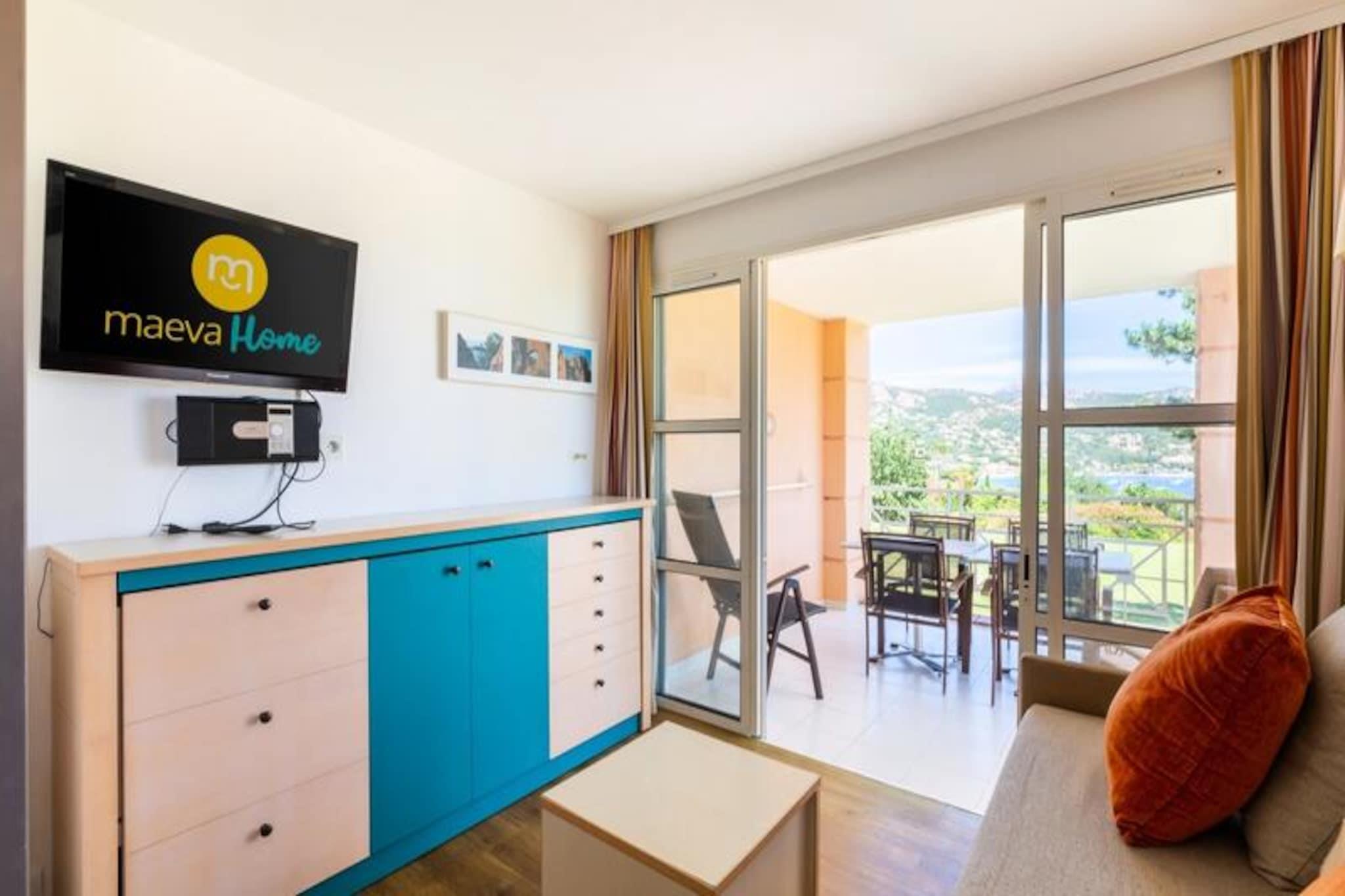 Denna charmiga semesterlägenhet på 28 m² ligger på första våningen och erbjuder ett ljust, nyligen renoverat utrymme med luftkonditionering för en bekväm vistelse. Den har ett vardagsrum med två bäddsoffor (en med två sängar och den andra med en säng) och ett separat sovrum med en dubbelsäng. Fastigheten är husdjursvänlig och tillåter husdjur med förfrågan. För din bekvämlighet har lägenheten en TV, Wi-Fi (i mån av tillgång) och utomhusparkering. Lägenheten är idealiskt belägen nära olika attraktioner. Stranden ligger bara 1 km bort, lätt att nå via det lilla tåget som går från april till september. Fastigheten är omgiven av kaféer, butiker och marknader inom 100 meter, och erbjuder allt du behöver för en avkopplande semester. Dessutom erbjuder Esterel Forme Centre i byn badtunnor för en avkopplande upplevelse (mot en extra kostnad), och den vackra Agay Bay och Dramont Beach ligger i närheten. Inuti har lägenheten ett fullt utrustat kök som öppnar in i vardagsrummet, komplett med ett matbord och fem stolar. Badrummet har ett badkar och en separat toalett. En terrass med havsutsikt är perfekt för uteservering, med ett bord, fyra stolar och en solstol. Lägenheten erbjuder även ytterligare bekvämligheter som sängkläder och handdukar mot en extra kostnad samt obligatorisk slutstädning.