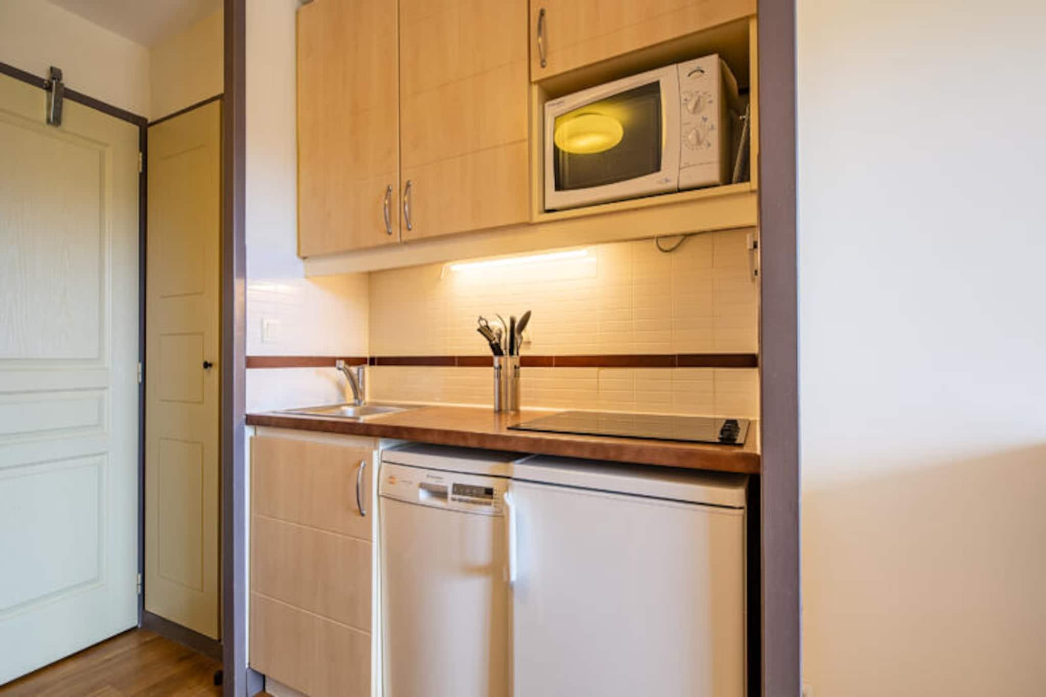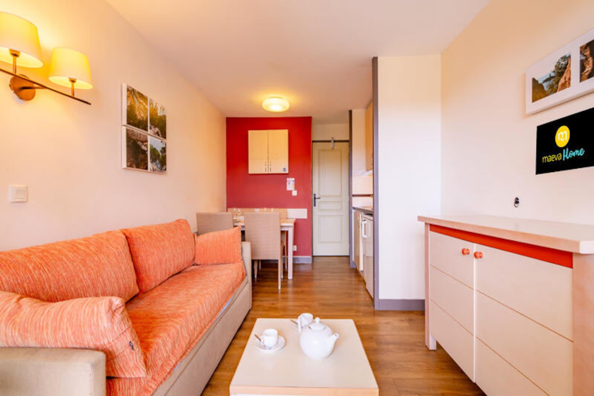 Denna charmiga lägenhet på 26 m² är perfekt för en familjesemester och erbjuder ett bekvämt boende på första våningen. Vardagsrummet är utrustat med en bäddsoffa och utdragbar säng, vilket ger gott om sittplatser för gästerna. Lägenheten har en stuga med två våningssängar, perfekt för barn. För extra bekvämlighet är husdjur tillåtna och det finns Wi-Fi (beroende på tillgänglighet). Fastigheten har också en täckt terrass med fantastisk havsutsikt, en elektrisk handdukstork i badrummet och en laddstation för elbilar. Denna lägenhet ligger drygt 500 meter från stranden och omges av en mängd närliggande attraktioner. Du hittar kaféer, butiker och aktiviteter inom 100 meter, perfekt för dem som vill utforska det lokala området. The Little Train erbjuder snabb tillgång till närliggande stränder som Agay Bay och Dramont Beach, vilket gör det enkelt att tillbringa en dag vid Medelhavet. Byns centrum erbjuder grönområden, barer, restauranger och underhållning för alla åldrar, inklusive en barnklubb och temaaktiviteter. Inuti har lägenheten ett öppet kök i amerikansk stil, komplett med ett matbord och fyra stolar. Köket är utrustat med diskmaskin, medan badrummet har badkar och separat toalett. Lägenheten är välskött och erbjuder komfort och enkelhet för din vistelse.