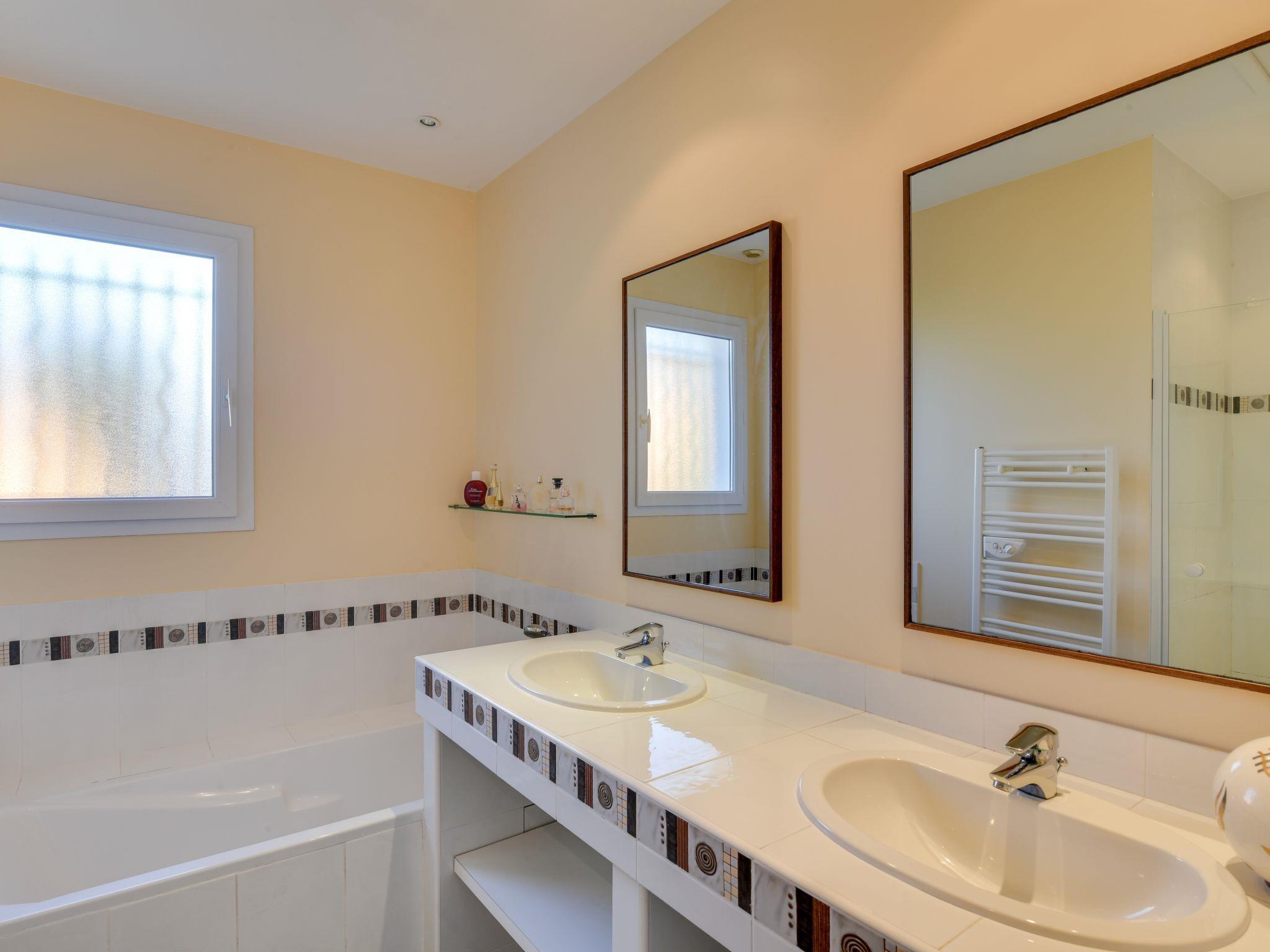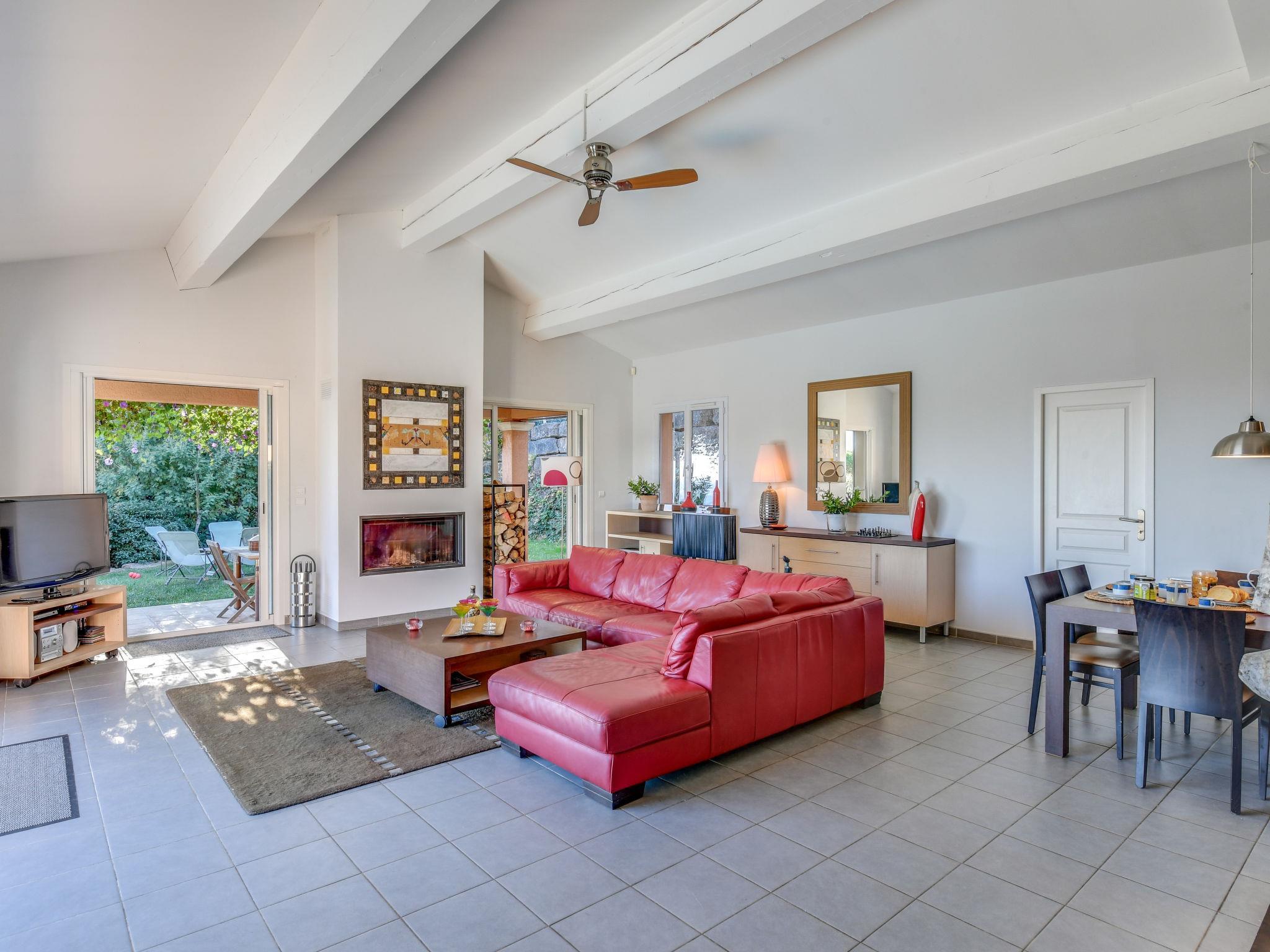 "Villa Cap Maxime", 4-room house 125 m2. Spacious, comfortable and beautiful furnishings: entrance hall with separate WC. Large living/dining room 50 m2 with TV and fan. Exit to the garden, to the swimming pool. 1 room 10 m2 with 1 double bed (1 x 140 cm, length 200 cm). Exit to the swimming pool. 1 room 13 m2 with 1 double bed (1 x 160 cm, length 200 cm), fan. Exit to the swimming pool. 1 room 10 m2 with 1 double bed (1 x 140 cm, length 200 cm). Large, open kitchen (oven, dishwasher, 4 induction hot plates, toaster, kettle, microwave, freezer, electric coffee machine). Bath/shower, shower. Electric heating. Large terrace roofed. Terrace furniture, deck chairs. View of the sea. Facilities: washing machine, dryer, iron, baby cot. Internet (WiFi, free). Please note: non-smoking house. Maximum 1 pet/ dog allowed. Smoke alarm. 83115003312AV