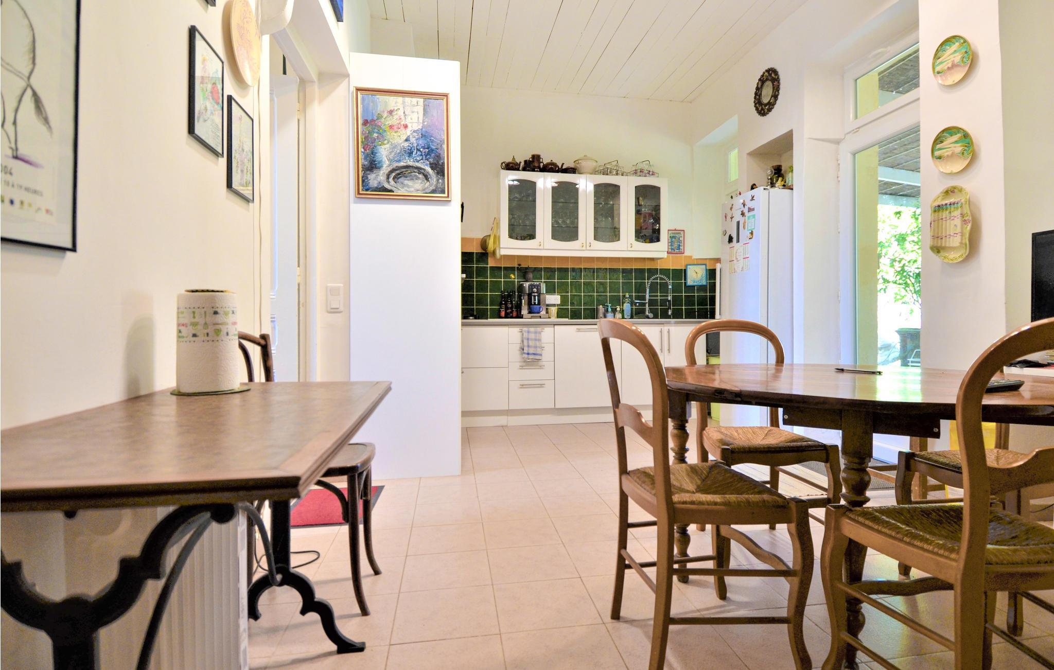 Stig in i detta eleganta hus och sluta inte att bli förvånad. Huset välkomnar dig med konst, en mängd olika färger och mönster, vilket gör din vistelse här till en exceptionell upplevelse. Känn dig som hemma och upptäck rummen som inbjuder till vistelse och avkoppling. Träffas för eftermiddagste och macarons vid matbordet eller njut av en öppen eld i biblioteket på kvällen.
