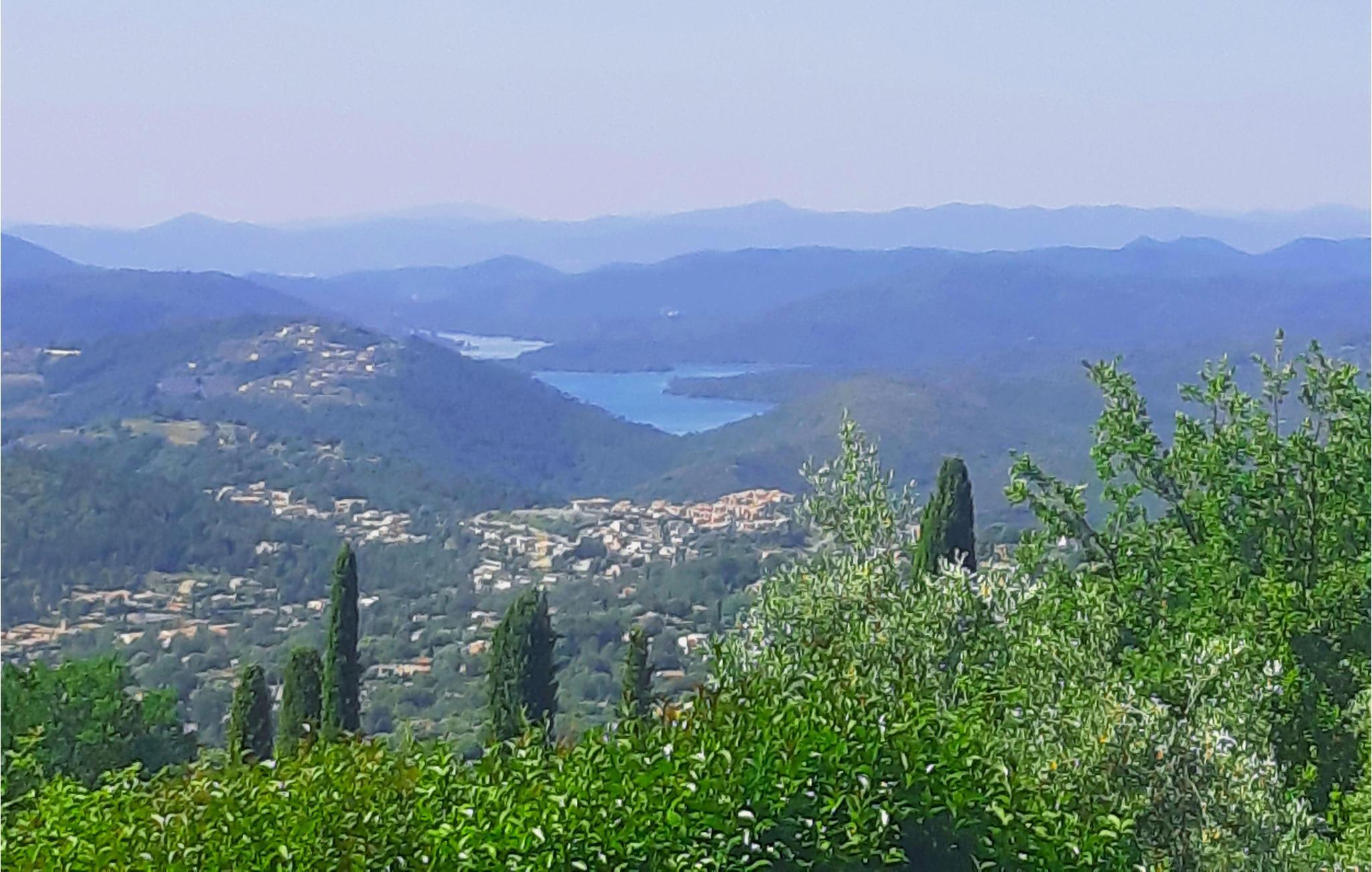 Det är byggt på en kulle och erbjuder en fantastisk utsikt över Antibes och Massif de l'Estérel och ligger bara 6 km från sjön St Cassien, känd för sin skönhet, otroliga flora och fauna och olika aktiviteter. Där kan du hyra trampbåtar, fiska, ro och vandra i oförglömliga omgivningar, bara 20 minuter från Cannes och 30 minuter från Fréjus.