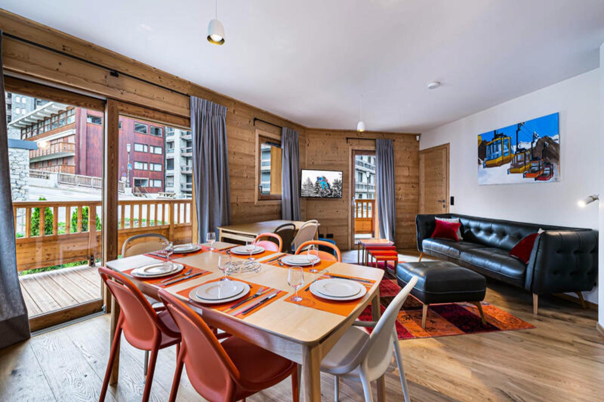 Denna mysiga lägenhet på 69 m² rymmer upp till 6 gäster i sina 3 sovrum. Det stora sovrummet har en dubbelsäng (140x190) med ett eget duschrum, medan det andra sovrummet har en större dubbelsäng (180x200) med en TV. Det tredje sovrummet har våningssängar (90x200) perfekt för barn. Det finns också ett separat badrum med dubbla handfat och en separat toalett. Lägenheten är rökfri och tillåter inte husdjur. Lägenheten ligger bara 100 meter från snöfronten och erbjuder enkel tillgång till skidbackarna och Ariondaz-gondolen, som förbinder gästerna till skidområdet 3 Valleys. Residenset ligger i närheten av Courchevel Morionds livliga by, där besökare kan njuta av en mängd olika butiker, kaféer och restauranger, vilket gör det till en idealisk plats för afterski eller avslappnade utflykter. Lägenheten har ett fullt utrustat öppet kök med moderna apparater, inklusive kyl-frys, ugn, mikrovågsugn och en raclettemaskin. Ytterligare bekvämligheter inkluderar Wi-Fi, en tvättmaskin och en torktumlare för din bekvämlighet. Gästerna kan koppla av i det bekväma vardagsrummet med TV eller njuta av den friska luften från balkongen. Lägenheten har även ett skidskåp och en privat parkeringsplats för ett fordon.