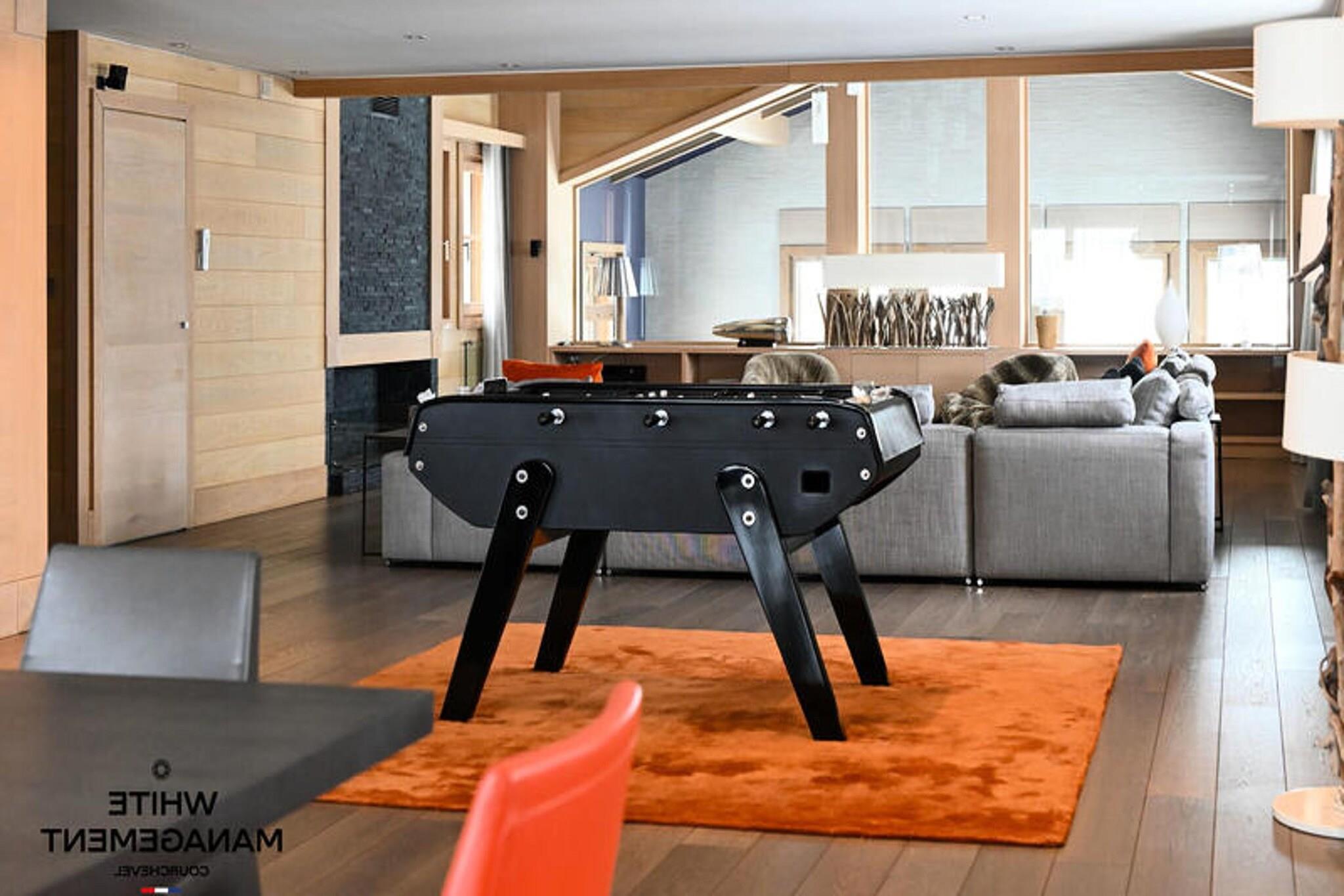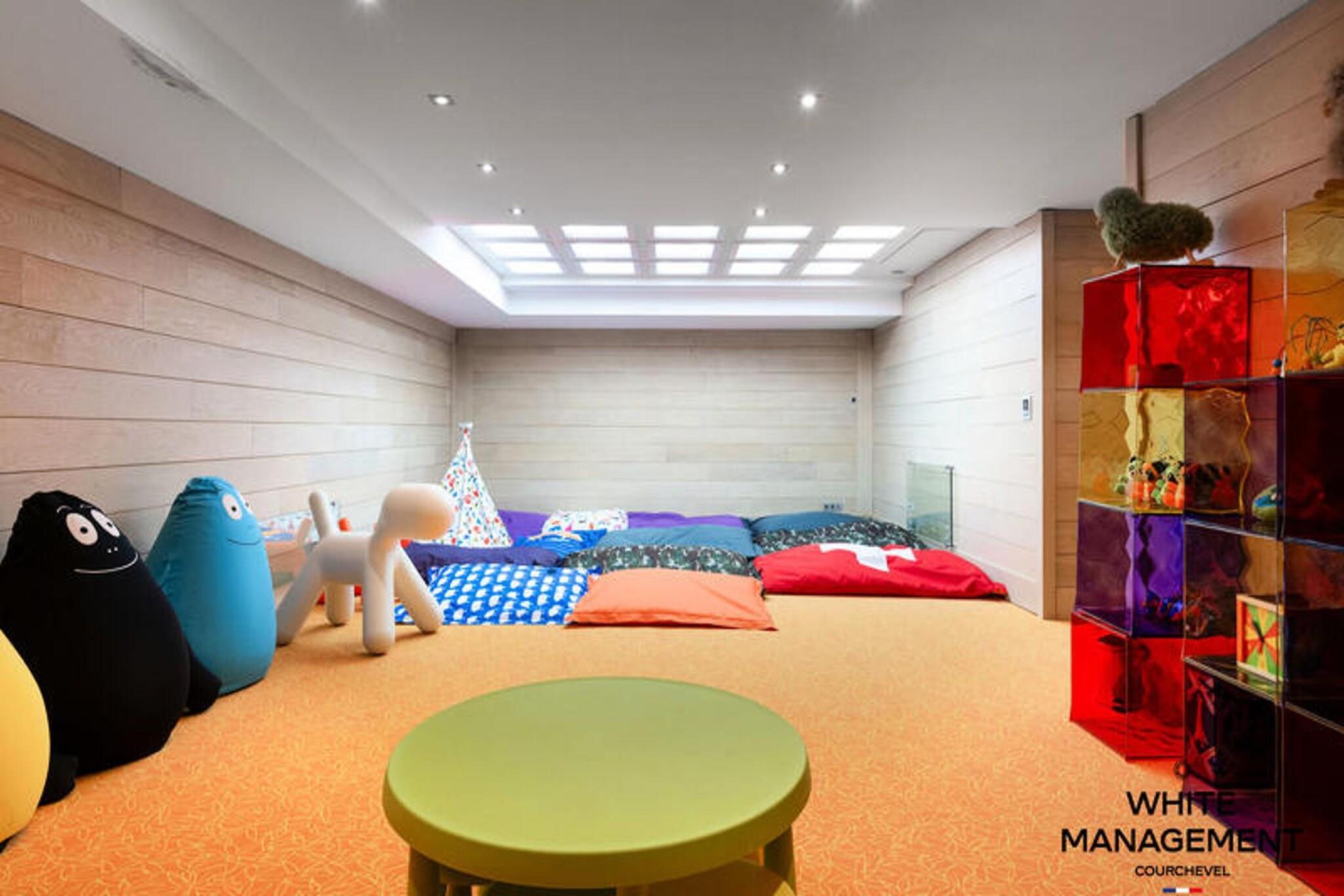 Denna 623 m² stora stuga är en lyxig oas inbäddad i Belvédère-distriktet i Courchevel Moriond, och erbjuder rymligt boende för upp till 12 gäster. Den har 6 sovrum med eget badrum, inklusive ett unikt rum designat för 4 barn, vilket gör det idealiskt för familjer. Stugan är rökfri, djurfri och genomtänkt designad för att ge komfort och avskildhet med modern, chic inredning. En hushållerska är tillgänglig för din bekvämlighet, vilket garanterar en avkopplande vistelse. Detta chalet har ett perfekt läge vid foten av backarna och kantas av en fridfull skog, och erbjuder oöverträffad tillgång till skidområdena i Courchevel Moriond, bara några minuters bilresa från stadens centrum. Gästerna kan njuta av resortens livliga atmosfär med enkel tillgång till affärer, kaféer och restauranger, eller bara koppla av i stugans fridfulla omgivningar. Ski-in/ski-out-tillgång gör det till den ultimata destinationen för vinterentusiaster. Chaletens design fokuserar på både avkoppling och underhållning, med ett välbefinnandegolv med en pool med stjärnhimmel och ett särskilt spelrum för barn. Ett fullt utrustat kök, rymliga vardagsrum och ett privat garage garanterar bekvämlighet och komfort under din vistelse. Stugan erbjuder också frukostservice, med möjlighet att njuta av den fantastiska utsikten medan du njuter av dina måltider i bekvämligheten av ditt hem-borta-från-hem.