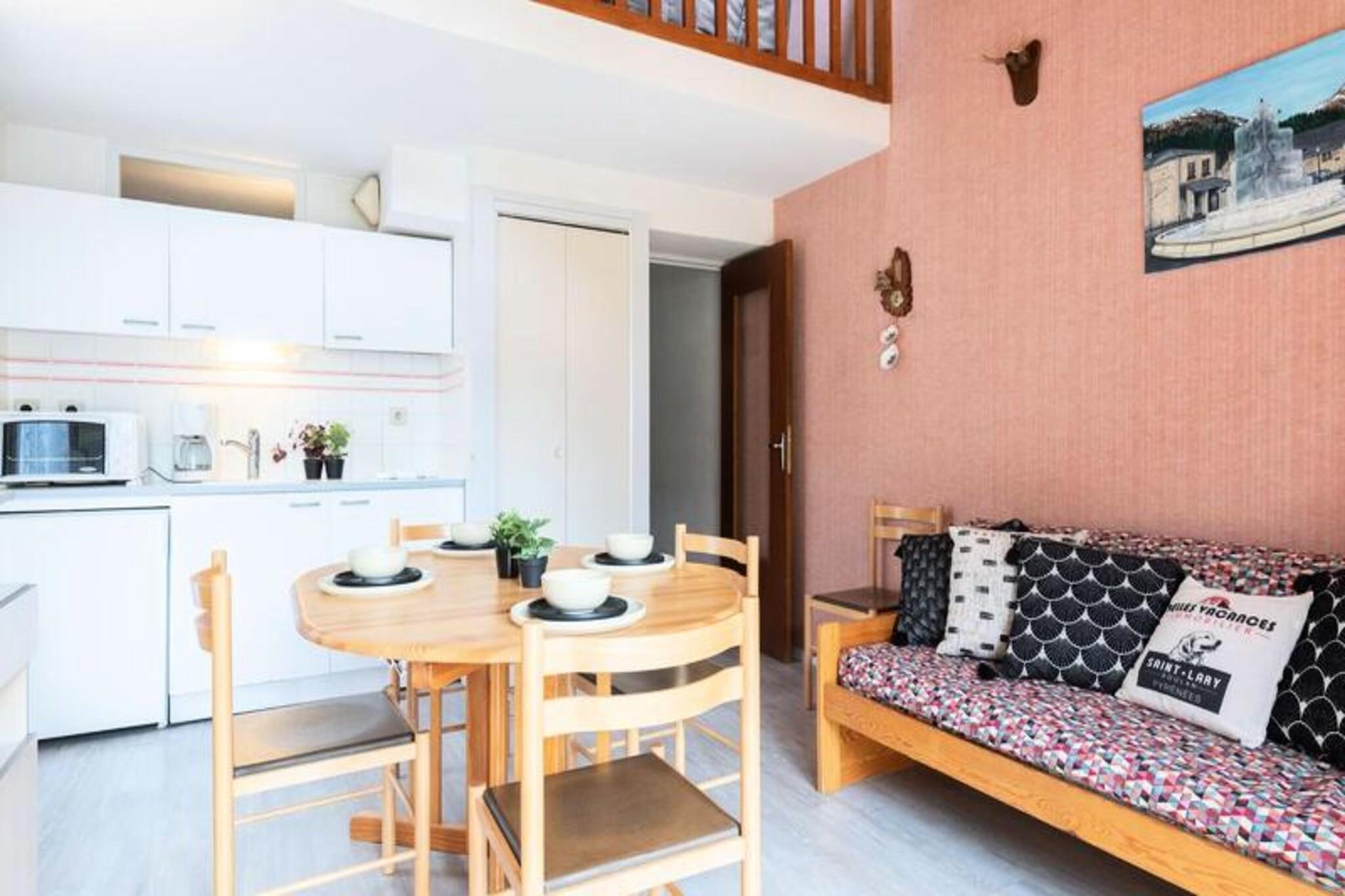 Denna rymliga etagelägenhet, idealisk för upp till 6 personer, erbjuder en bekväm och välkomnande vistelse. Den ligger på 3:e våningen och har ett ljust vardagsrum med tillgång till en solig balkong, en soffa och en TV. Pentryt är fullt utrustat och öppet mot vardagsrummet, vilket garanterar ett mysigt, gemensamt utrymme. Den första våningen innehåller också ett sovrum med dubbelsäng, ett badrum och separata toaletter. Den andra våningen har en mezzanine med en dubbel bäddsoffa och ett extra sovrum med två enkelsängar. Observera att husdjur inte är tillåtna. Lägenheten ligger bara 400 meter från hjärtat av Saint-Lary, där du hittar en mängd olika kaféer, butiker och linbanan som ger enkel tillgång till backarna. De fridfulla, gröna omgivningarna är perfekta för avkoppling, medan friluftsentusiaster kan njuta av bergsaktiviteter som snöskovandring, skoterutflykter och canyoning. Läget erbjuder det bästa av två världar: lugn och närhet till den pulserande stadskärnan och dess attraktioner. Lägenheten har praktiska bekvämligheter som en privat parkeringsplats och ett skidskåp för att förvara din utrustning säkert. Köket är utrustat med alla nödvändiga apparater, inklusive en mikrovågsugn, för att enkelt laga dina måltider. Lägenheten har även ett separat badrum och toalett. Ytterligare tjänster som Wi-Fi och tvättstuga finns tillgängliga på begäran för att göra din vistelse ännu bekvämare.