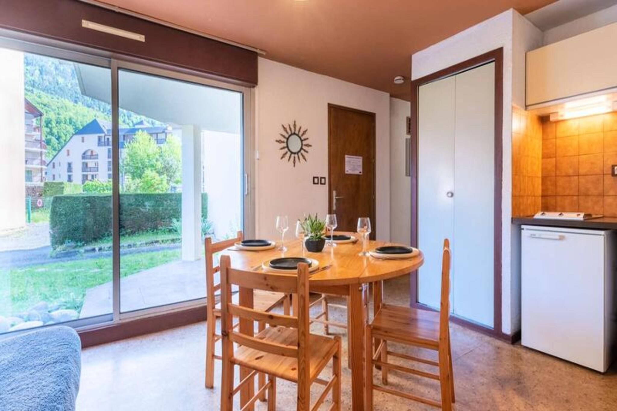 Denna charmiga semesterlägenhet är designad för att rymma upp till fyra gäster, vilket gör den perfekt för små familjer eller vänner. Fastigheten har bekväma sovmöjligheter, inklusive en dubbelsäng i sovrummet och två enkla våningssängar i entrén. Även om husdjur inte är tillåtna, erbjuder lägenheten viktiga bekvämligheter som en TV i vardagsrummet och ett fullt utrustat pentry för att laga mat. Lägenheten ligger på bottenvåningen och har en terrass i söderläge, perfekt för att njuta av de trevliga omgivningarna. Privat parkering garanterar bekvämlighet och säkerhet, så att gästerna kan varva ner helt under sin vistelse. Denna lägenhet ligger i hjärtat av det termiska distriktet, bara ett stenkast från de berömda Thermes och Sensoria, och erbjuder en avkopplande upplevelse för wellnessentusiaster. Stadens centrum ligger inom bekvämt gångavstånd, där gästerna kan utforska lokala butiker, kaféer och marknader. Området är rikt på regional kultur och de charmiga gatorna ger gott om möjligheter att njuta av lokala delikatesser. Dessutom gör den närliggande télécabine det lätt att ta sig till berget, där gästerna kan njuta av skidåkning eller andra vinteraktiviteter. Inne i lägenheten hittar du allt du behöver för en bekväm vistelse. Pentryt är fullt utrustat så att gästerna kan laga sina måltider, medan badrummet erbjuder ett uppfriskande utrymme att koppla av. Den separata toaletten ger extra bekvämlighet. För dem som vill hålla sig uppkopplade kan Wi-Fi hyras, och ytterligare tjänster som städning, uthyrning av lakan och handdukar finns tillgängliga på begäran. Med sitt utmärkta läge och utmärkta bekvämligheter erbjuder denna lägenhet en perfekt tillflyktsort för din semester.