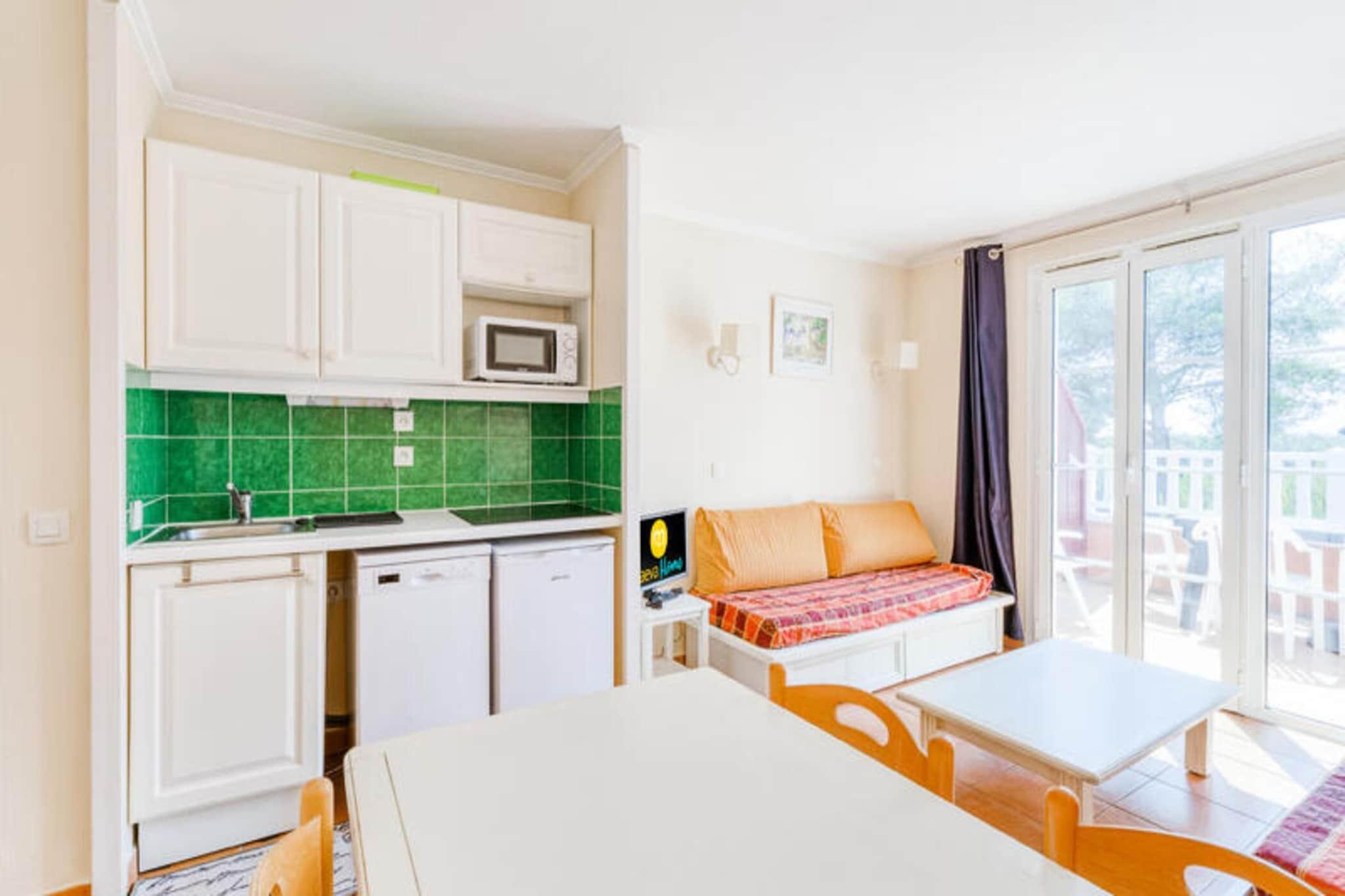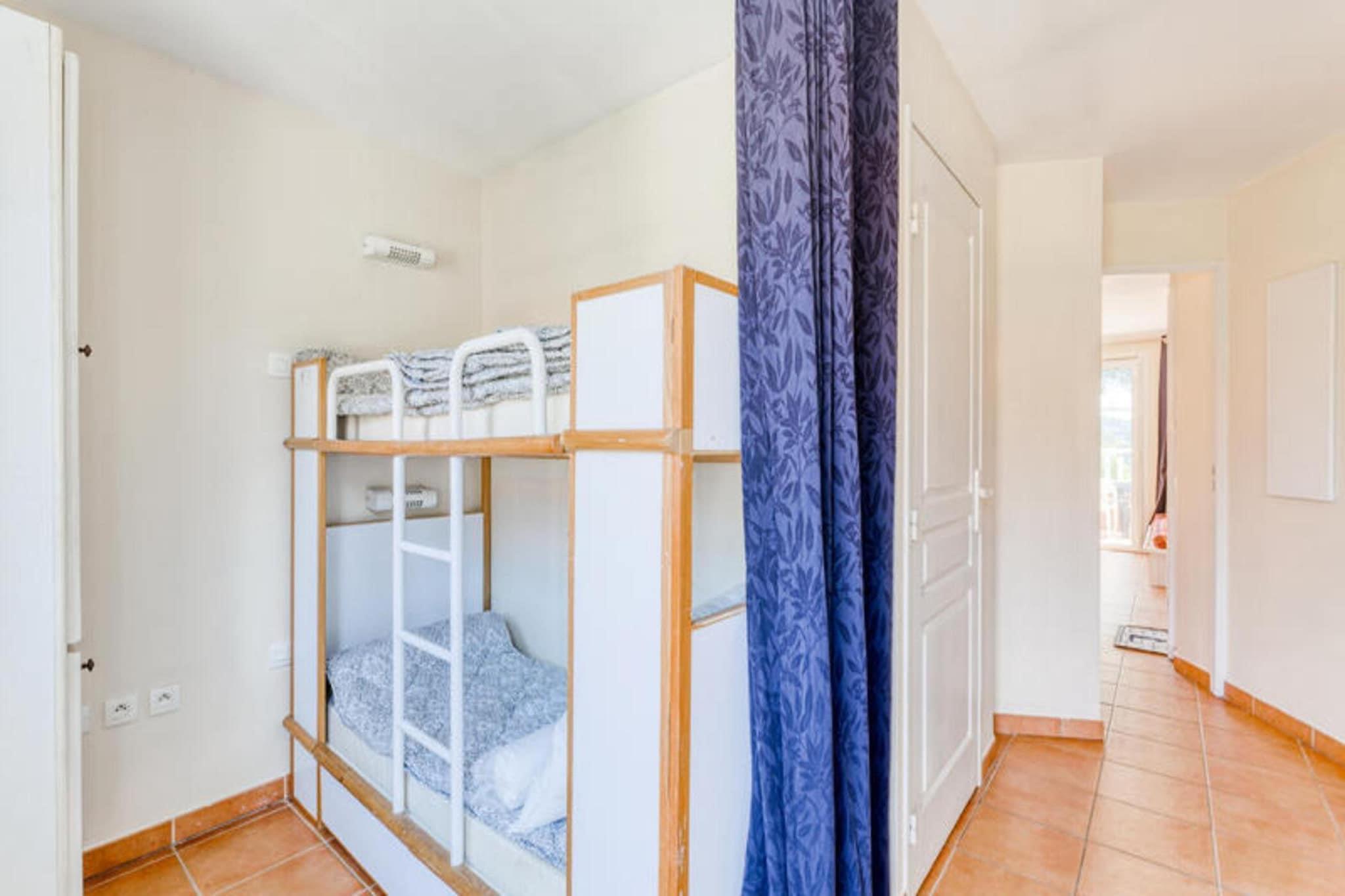 Belägen nära en lugn sjö och den vackra Medelhavskusten, är denna mysiga lägenhet perfekt för en avkopplande semester. Den rymmer upp till fyra gäster med en bekväm bäddsoffa i vardagsrummet och våningssängar i kabinen, vilket gör den idealisk för familjer eller små grupper. Lägenheten har en egen balkong med vacker utsikt över skogen, perfekt för att varva ner. Gästerna kan ta med sina husdjur, och en privat pool exklusivt för boende garanterar en uppfriskande tillflyktsort. Bekväm parkering finns i närheten. Denna fastighet erbjuder enkel tillgång till lokala attraktioner, med barer, butiker, restauranger och grönområden bara en kort promenad bort. Ett närliggande bageri, apotek och cateringfirma ligger inom 150 meter, vilket gör det bekvämt för alla dina behov. Gästerna kan hoppa på det lokala tåget för att utforska ytterligare bekvämligheter och aktiviteter, vilket garanterar en minnesvärd vistelse i denna livliga region. Lägenheten har ett modernt kök i amerikansk stil med ett matbord, perfekt för att laga mat. Ett välskött badrum med egen vattentoalett bidrar till komforten. Valfri Wi-Fi, hyra av sängkläder och städtjänster garanterar bekvämligheten, medan den fridfulla miljön lovar en fridfull semester under medelhavssolen.