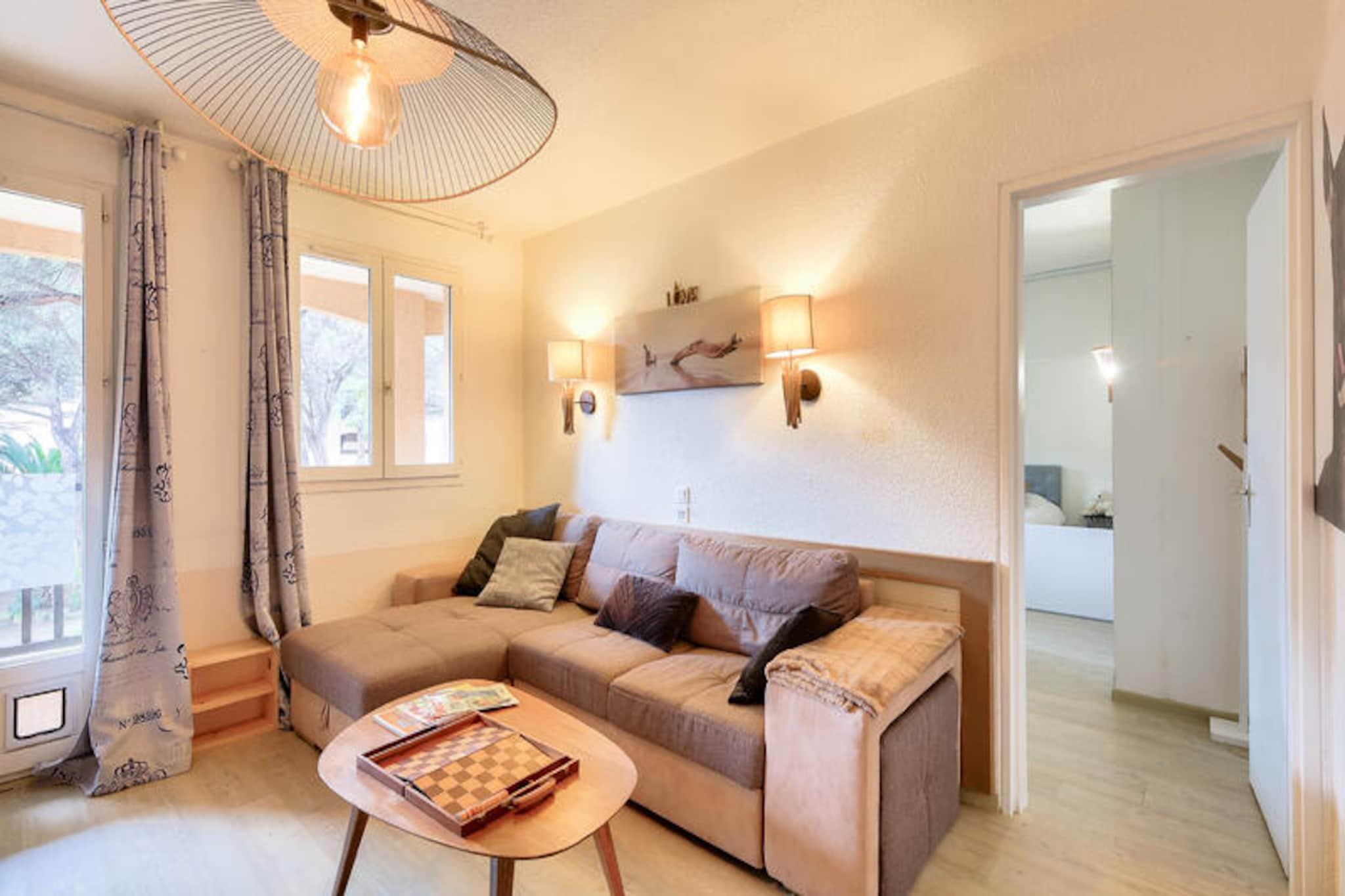 Denna semesterlägenhet ligger i en charmig bymiljö och erbjuder en fridfull oas omgiven av naturlig skönhet. Boendet har ett rymligt vardagsrum med en bäddsoffa, ett sovrum med en dubbelsäng och en privat terrass med utsikt över poolen. Gästerna har tillgång till en stor 400 m² stor utomhuspool, en barnpool och en hälsoavdelning (tillgänglig efter bokning). Residenset är husdjursvänligt (mot en extra avgift) och inkluderar gratis utomhusparkering, i mån av tillgång. Observera att boendet inte har någon hiss. Detta boende ligger bara 6 km från hjärtat av Saint-Raphaël och är en idealisk bas för att utforska området. Den 18-håls golfbanan Estérel ligger bara 400 meter bort, och i närheten hittar du tennisbanor, arkadspel och natursköna vandringsleder. För dem som söker avkoppling ligger stränderna, lokala marknaderna och spaanläggningarna i Saint-Raphaël bara 15 minuters bilresa bort. Det omgivande området erbjuder 36 kilometer av fantastisk Medelhavskust, perfekt för avkopplande utforskning. Lägenheten är designad för komfort och har ett välutrustat kök i amerikansk stil med matbord, elektrisk spis och nödvändiga apparater. Badrummet har ett badkar och en elektrisk handdukstork, medan terrassen erbjuder en avkopplande plats för att njuta av utsikten över poolen. Ytterligare bekvämligheter inkluderar Wi-Fi (mot avgift), sängkläder och handdukar (finns att hyra) och obligatorisk slutstädning för att säkerställa en sömlös upplevelse.