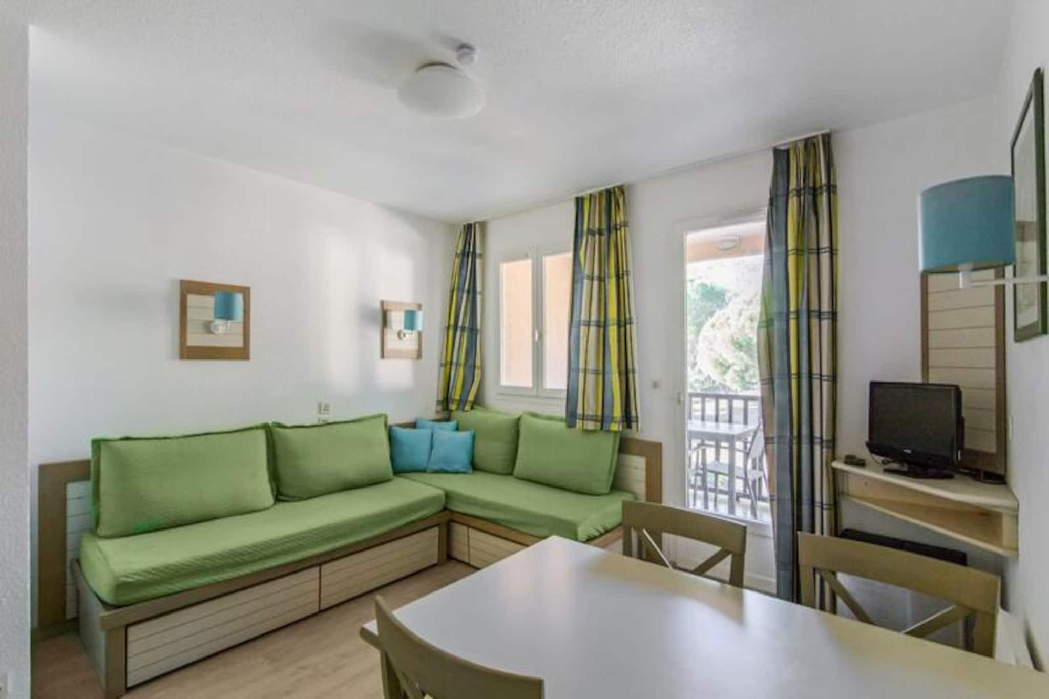 Detta lägenhetskomplex erbjuder ljusa, färgglada lägenheter med balkonger med utsikt över en stor pool (400 m²) och en barnpool. Det ståtar med en bevarad naturlig miljö 6 km från Saint-Raphaëls centrum och en kort bit från stranden (15 min med bil). Anläggningen har gratis parkering men saknar hiss, så var beredd på trappor. Gästerna kan njuta av olika aktiviteter i närheten, inklusive golf på Estérel-banan (400 meter bort), spela tennis, utforska kustlinjen, besöka spa eller surfa på marknader. Bekvämligheter på plats (mot en extra kostnad) inkluderar en hälsoavdelning och en snackbar (öppen juli/augusti). Varje lägenhet på 28 m² har ett vardagsrum med en dubbel bäddsoffa, en sovhytt med våningssängar, en separat toalett, ett badrum med badkar och en köksdel som är öppen mot vardagsrummet. Balkongen har ett bord med 4 stolar och en solstol. Vissa bekvämligheter som WiFi, sängkläder, handdukar och slutstädning är tillgängliga mot en extra kostnad, men husdjur är tillåtna med förhandsgodkännande från boendet (extra avgifter kan tillkomma).