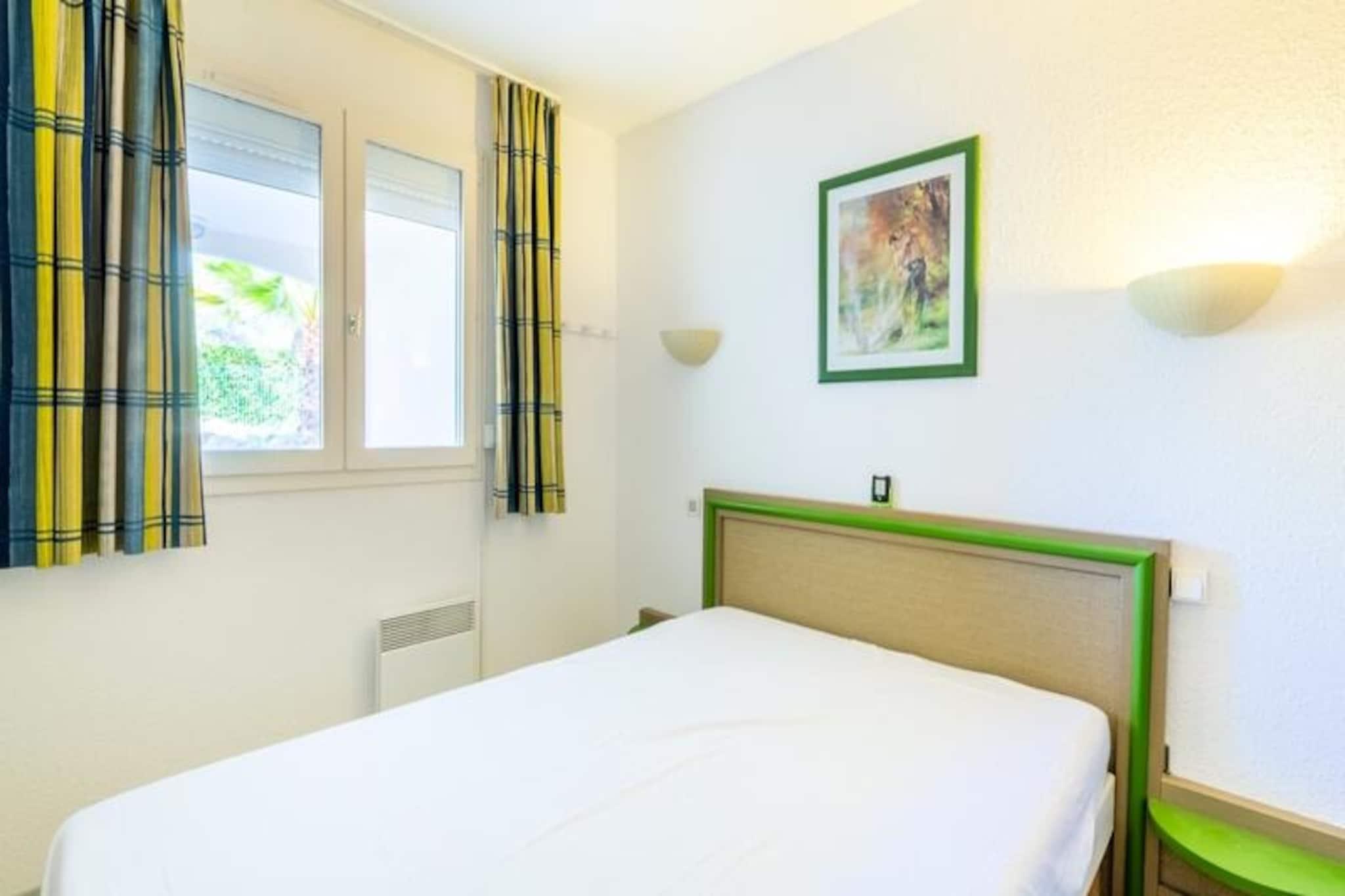 Denna l?genhet p? 29 m² ligger i hj?rtat av en charmig by och erbjuder en mysig oas f?r upp till 6 personer. Den har ett vardagsrum med en b?ddsoffa, ett sovrum med en dubbels?ng och en kabindel med en v?ningss?ng. Enheten har ett eget badrum, toalett och en t?ckt terrass, perfekt f?r att njuta av den naturliga omgivningen. Husdjur ?r till?tna (avgifter tillkommer), och gratis parkering ?r tillg?nglig f?r g?sterna. S?ngkl?der och handdukar finns tillg?ngliga mot en extra kostnad. Fastigheten har ett privilegierat l?ge, bara 6 km fr?n Saint-Rapha?ls centrum, med enkel tillg?ng till Est?rels golfbana och sex tennisbanor, alla inom g?ngavst?nd. Medelhavskusten ligger bara en kort bilresa bort, och omr?det erbjuder massor av aktiviteter, inklusive vandring, simning och bes?ka de lokala spaanl?ggningarna. De livliga marknaderna och butikerna i Saint-Rapha?l ?r l?ttillg?ngliga och erbjuder en smak av lokal kultur och mat. Inuti l?genheten finns ett fullt utrustat k?k med amerikansk stil och en matplats. En h?lsoavdelning och en snackbar (s?songs?ppen) finns p? plats, vilket bidrar till dina avkopplingsm?jligheter. G?sterna kan ocks? njuta av den stora 400 m² stora poolen och barnpoolen, ?ppen fr?n april till oktober. Observera att boendet inte har n?gon hiss.