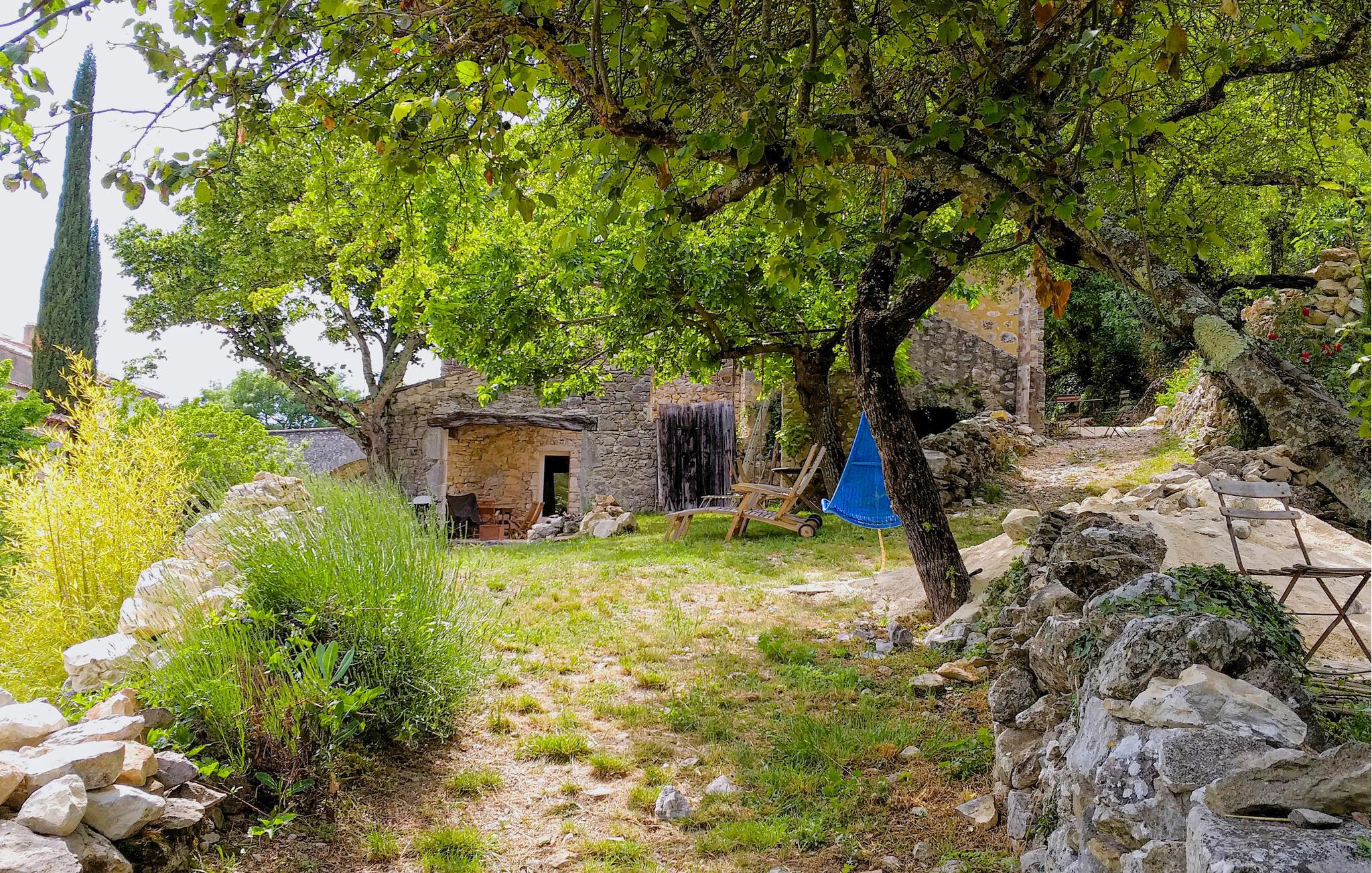 Detta pittoreskt belägna lanthus kombinerar en harmonisk blandning av historisk känsla, komfort och mysighet. Natursten, vedeldad kamin och rustika möbler skapar en historisk atmosfär där du kan känna andan från en svunnen tid. Oavsett om du har en avslappnad pratstund, njuter av ett gott glas franskt vin eller lagar mat tillsammans, kommer du snabbt att komma in i semesterläge här.