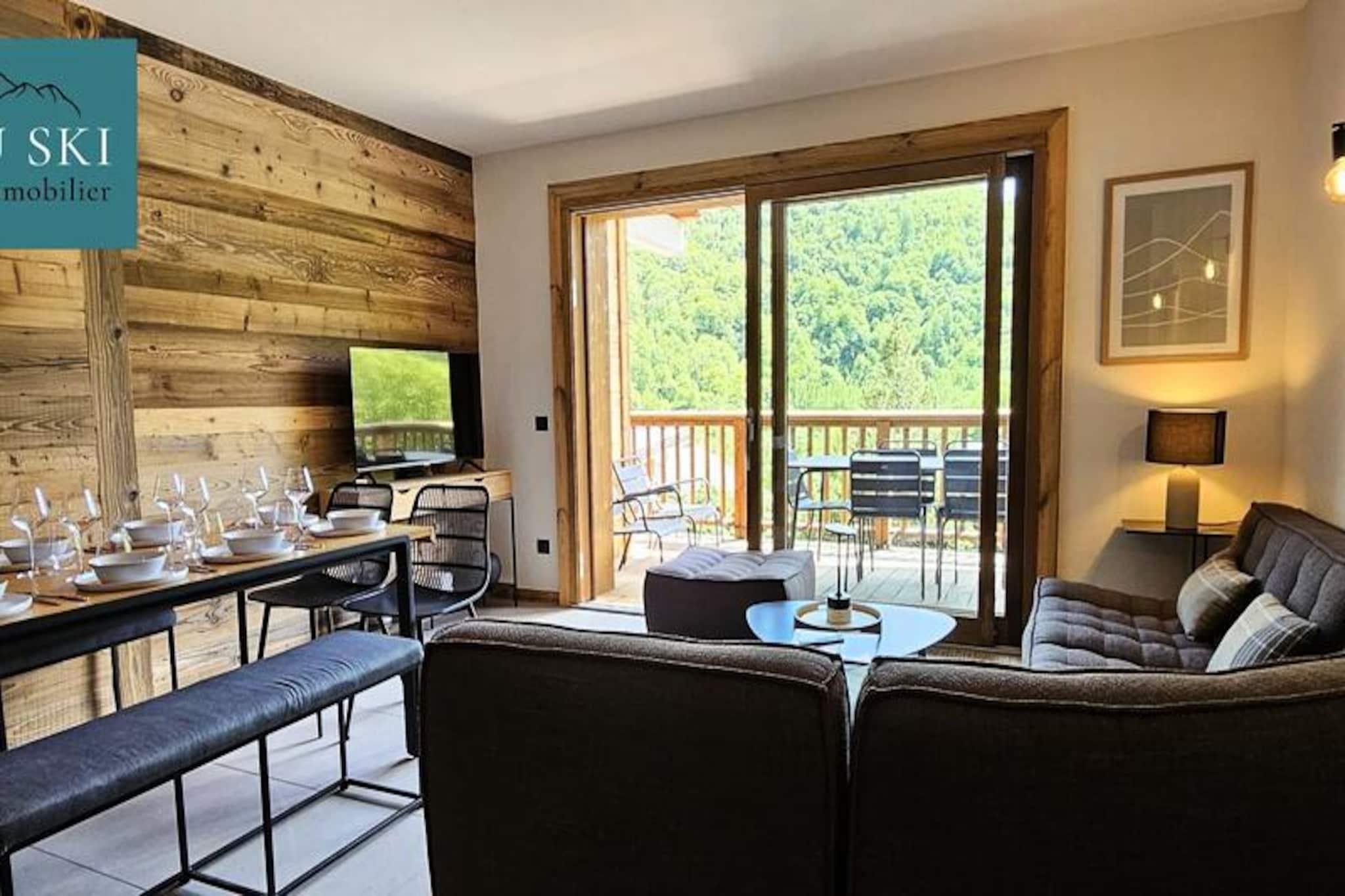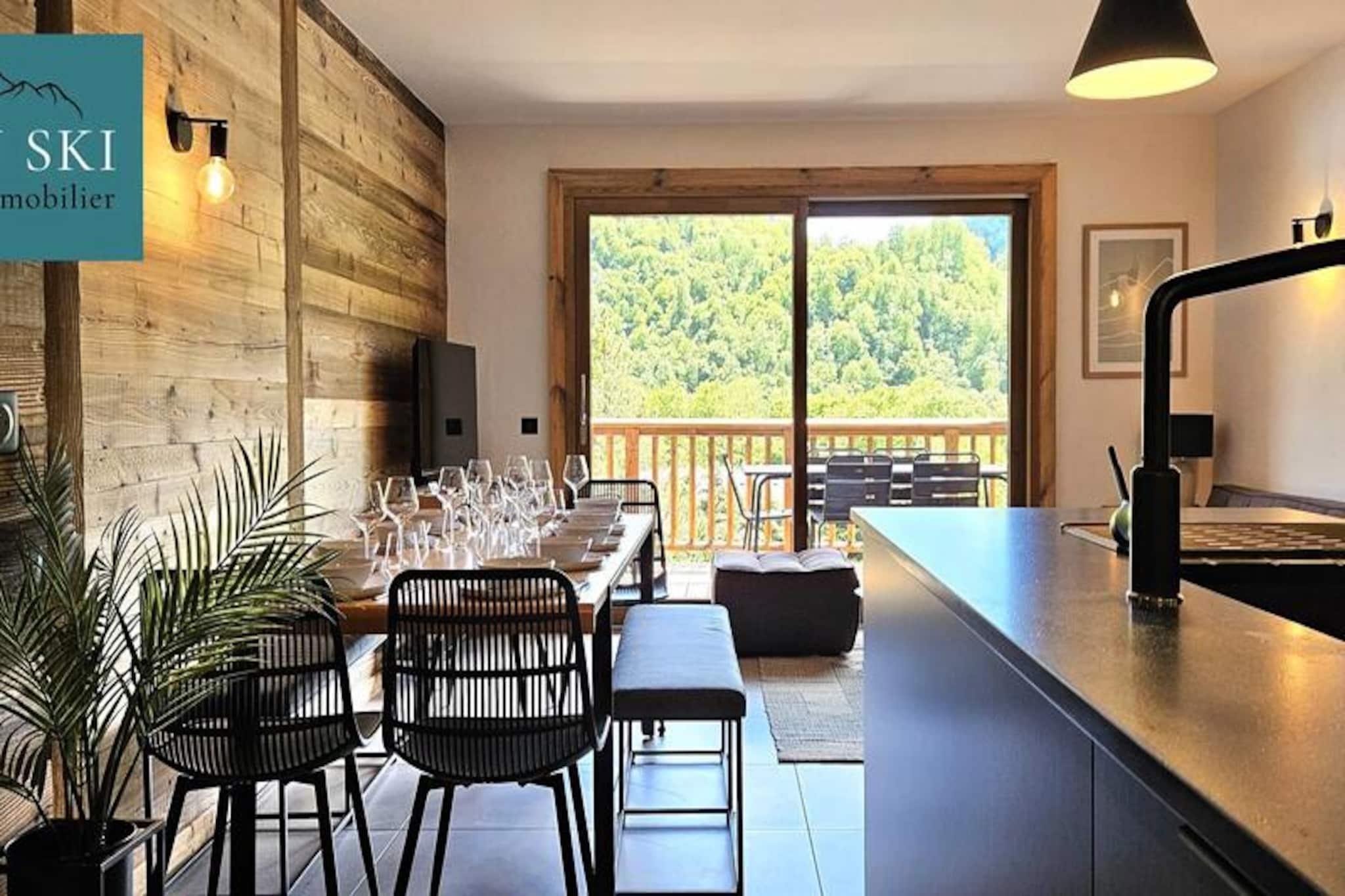 Denna lyxiga duplexlägenhet erbjuder en charmig och bekväm oas med 4 sovrum, vilket gör den idealisk för upp till 8 vuxna och 2 barn. Boendet har två sovrum med dubbelsängar och ett sovrum med våningssängar på övervåningen. Lägenheten är djurfri, vilket säkerställer en lugn och avslappnad miljö. Den ligger på andra våningen i ett helt nytt boende och erbjuder en balkong i söderläge där gästerna kan njuta av natursköna vyer. Lägenheten ligger i hjärtat av byn och erbjuder enkel tillgång till olika lokala attraktioner. Turistbyrån, skidskolan, snöfronten och butikerna ligger alla inom 300 meter, medan skidområdet LES SYBELLES är lättillgängligt och erbjuder många möjligheter till äventyr utomhus. Lägenheten har ett modernt kök fullt utrustat med diskmaskin, stort kylskåp, ugn, Nespressomaskin och all nödvändig porslin för 10 personer. Det rymliga vardagsrummet har ett vardagsrum med TV, och de två duschrummen har vardera en toalett och en tvättmaskin/torktumlare för bekvämlighet. För extra komfort kan gästerna njuta av gratis Wi-Fi, ett skidskåp med pjäxtork och en täckt parkeringsplats. Sängkläder och handdukar finns tillgängliga mot en extra kostnad.