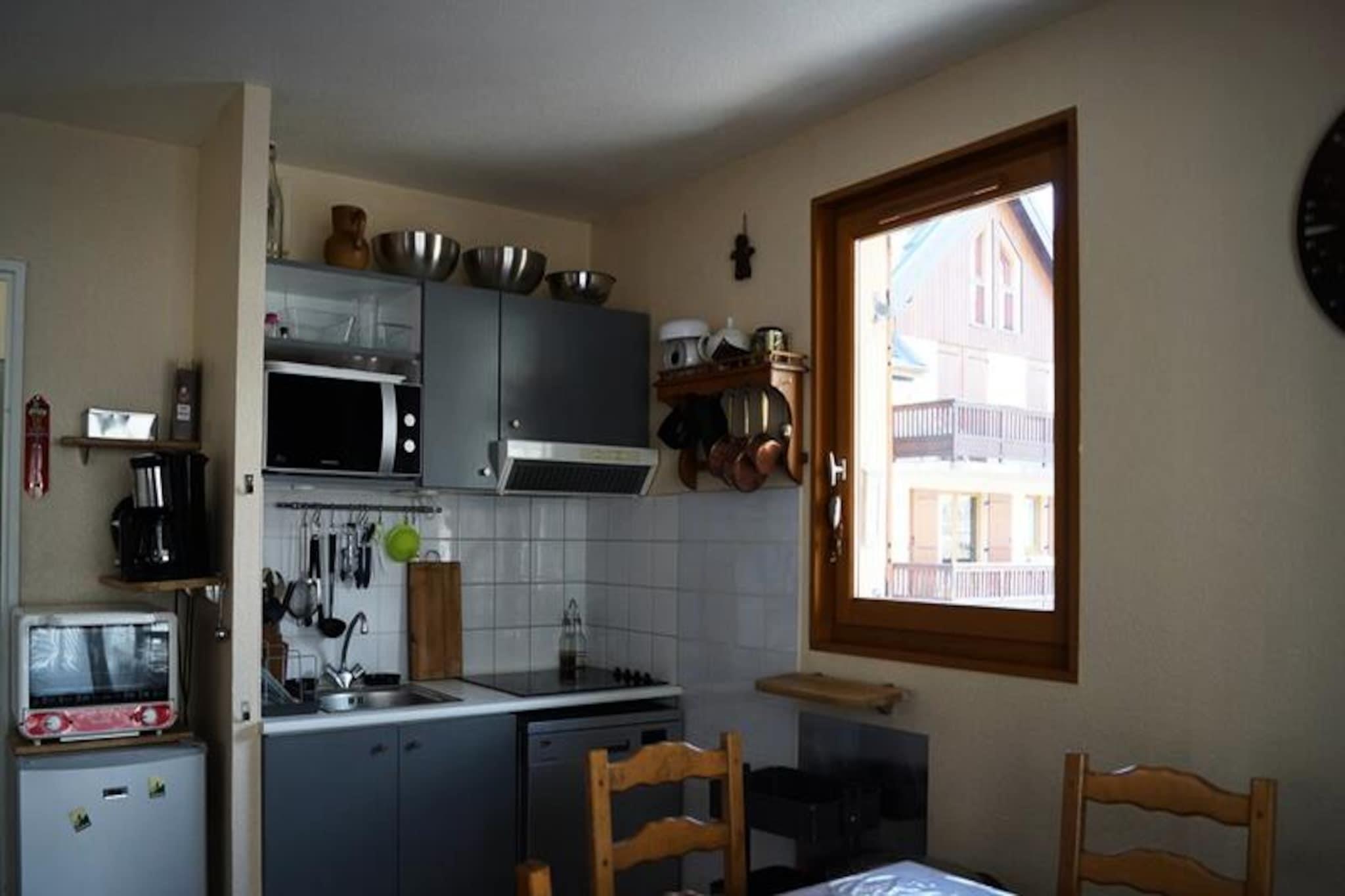 Högt ovanför dalen, där alpin charm möter modern komfort, erbjuder denna förtjusande lägenhet med 2 sovrum en perfekt tillflyktsort för din bergssemester. Belägen i en modern bostad kombinerar den bekvämlighet och lugn, vilket gör den idealisk för familjer eller par som söker en flykt i det pittoreska Saint Sorlin d'Arves. Med hisnande utsikt och enkel tillgång till backarna känns varje ögonblick här som en hyllning till natur och äventyr. Den kostnadsfria bussen som stannar precis utanför säkerställer sömlös anslutning till hjärtat av orten, vilket bidrar till en bekväm vistelse. \n\nInuti är lägenheten noggrant utformad för att erbjuda både komfort och funktionalitet. Det mysiga vardagsrummet har ett utrustat pentry, perfekt för att laga rejäla måltider efter en dag av utforskande. Det stora sovrummet har en lyxig dubbelsäng, medan det andra sovrummet har två våningssängar, perfekt för barn eller vänner. Ett modernt badrum, separat toalett och en privat balkong kompletterar planlösningen och erbjuder utrymme att koppla av och njuta av den alpina luften. Ytterligare bekvämligheter inkluderar ett skidförvaringsskåp och en TV för din underhållning. Observera att husdjur inte är tillåtna, vilket garanterar en lugn och allergivänlig miljö.\n\nSaint Sorlin d'Arves är en typisk bergsby belägen vid foten av Col de la Croix de Fer och Étendard-glaciären. På vintern lockar det vidsträckta skidområdet Sybelles med sina välskötta backar, optimala snöförhållanden och soliga dagar. Utöver skidåkning erbjuder byn en varm atmosfär, fritidsaktiviteter och avkopplingsmöjligheter som passar alla preferenser. Sommaren förvandlar regionen till en fristad för vandringsälskare, med stigar som leder till fantastiska vyer och alpina ängar. Från uppfriskande utomhusäventyr till fridfulla stunder i naturen lovar Saint Sorlin oförglömliga upplevelser året runt.\n\nOavsett om du är här för spänningen med skidåkning eller lugnet under sommarvandringar, är denna lägenhet din port till det bästa av de franska Alperna. Låt charmen i Saint Sorlin d'Arves och bekvämligheterna i denna bostad skapa minnen som du kommer att vårda för alltid.