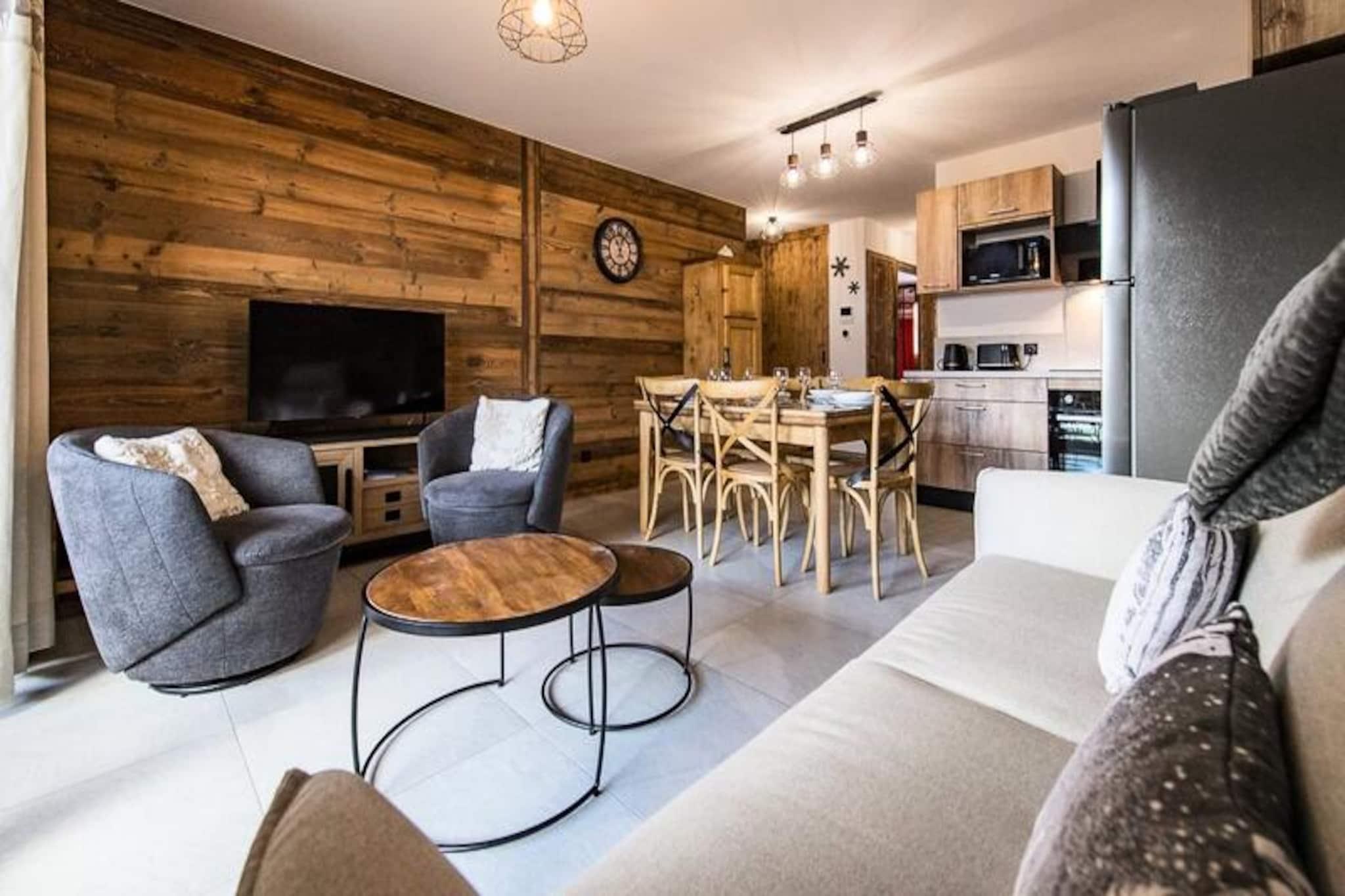 I hjärtat av den charmiga byn Plan du Moulin erbjuder denna eleganta lägenhet en perfekt blandning av alpin komfort och bekvämlighet. Bara 300 meter från nybörjarbackarna och 400 meter från Plan du Moulin Express-liften, är det en idealisk bas för att utforska de franska Alpernas orörda skönhet. Föreställ dig själv att gå ut på terrassen varje morgon, andas in den friska bergsluften och förbereda dig för en dag fylld av äventyr och avkoppling. Oavsett om du är här för skidåkning, vandring eller bara varva ner, sätter denna bostad scenen för oförglömliga stunder. \n\nInuti utstrålar lägenheten värme och stil med sin berginspirerade inredning. Vardagsrummet har en mysig TV-lounge, perfekt för kvällar som spenderas avkopplande efter en dag utomhus. Matplatsen och det fullt utrustade köket öppnar upp mot en privat terrass möblerad med bord och stolar, som inbjuder dig att njuta av måltider under den alpina himlen. Tre sovrum garanterar vilsamma nätter: två dubbelrum med TV, ett med eget duschrum, och en våningssäng som är perfekt för barn över sex år. Moderna bekvämligheter som WiFi, ett skidskåp med pjäxtork och inomhusparkering med laddning av elbilar bidrar till bekvämligheten. \n\nLäget är oslagbart, med backar, skidliftar och byns bekvämligheter bara en kort promenad bort. På sommaren erbjuder källaren cykelförvaring, vilket gör det enkelt att utforska de natursköna lederna som omger byn. För extra bekvämlighet kan liftkort och uthyrning av utrustning ordnas i förväg, vilket garanterar en smidig upplevelse från ankomst till avresa. \n\nOavsett om du söker spännande vintersporter eller lugna sommarresor, erbjuder denna lägenhet allt du behöver för en minnesvärd alpsemester. Låt magin i Plan du Moulin inspirera ditt nästa äventyr!