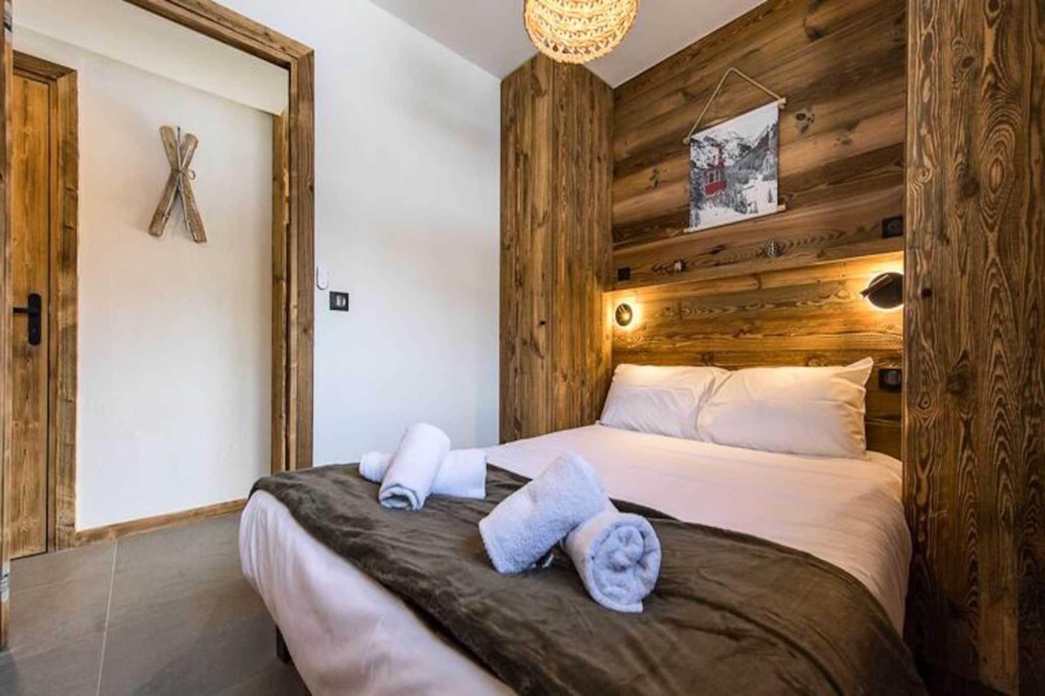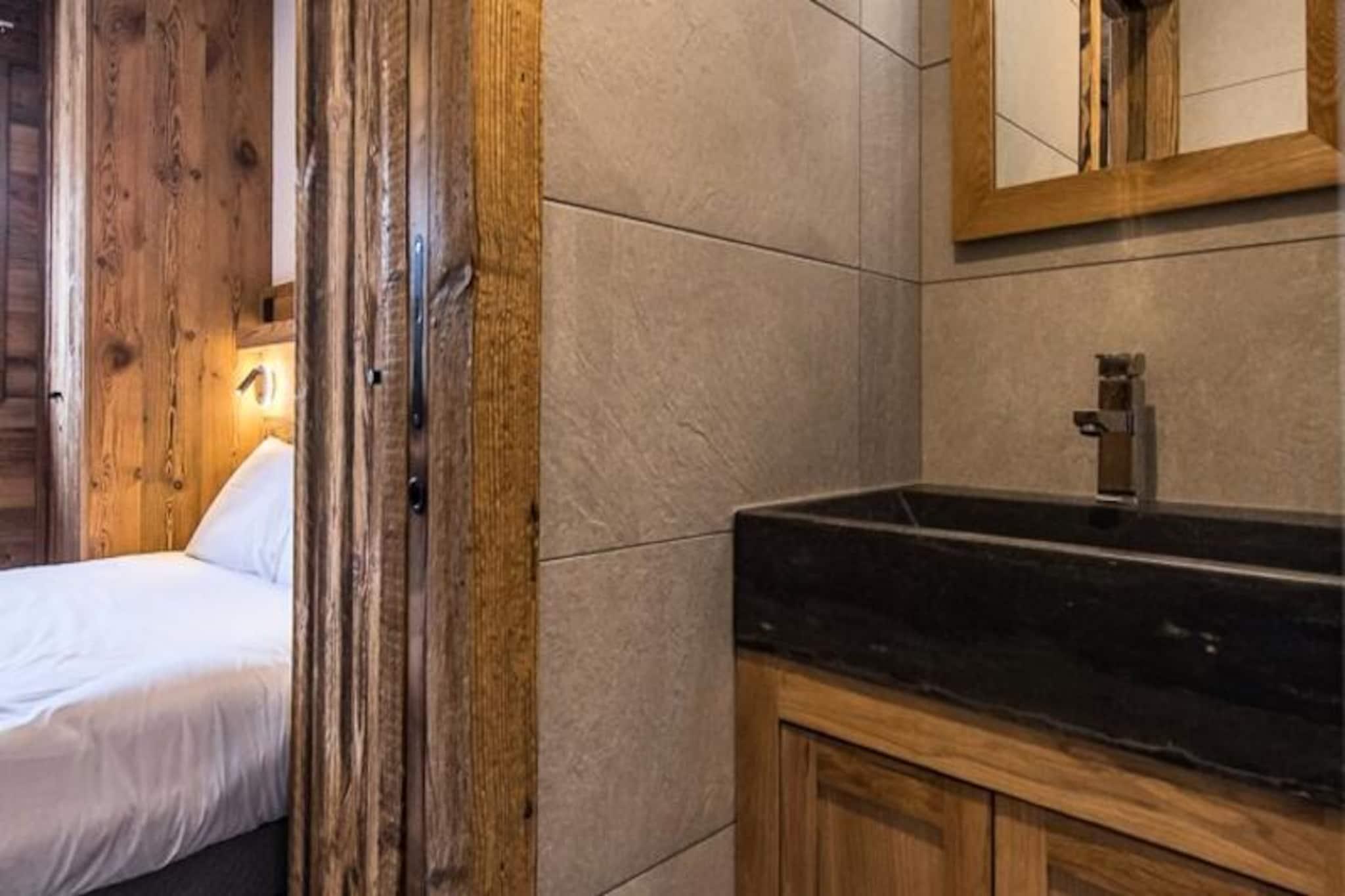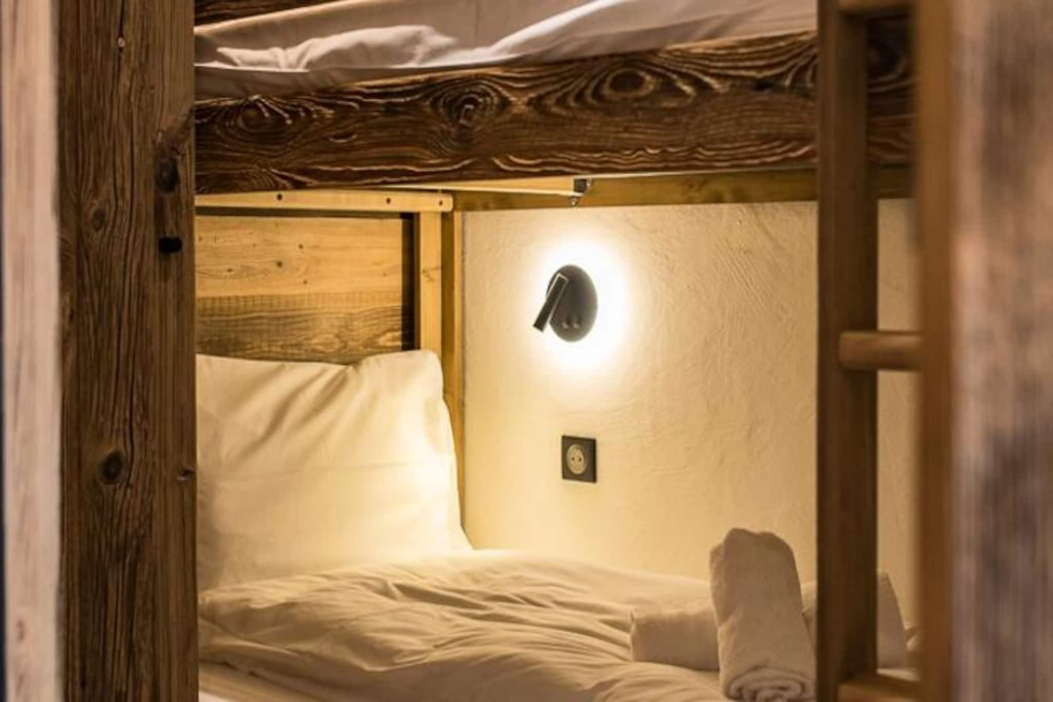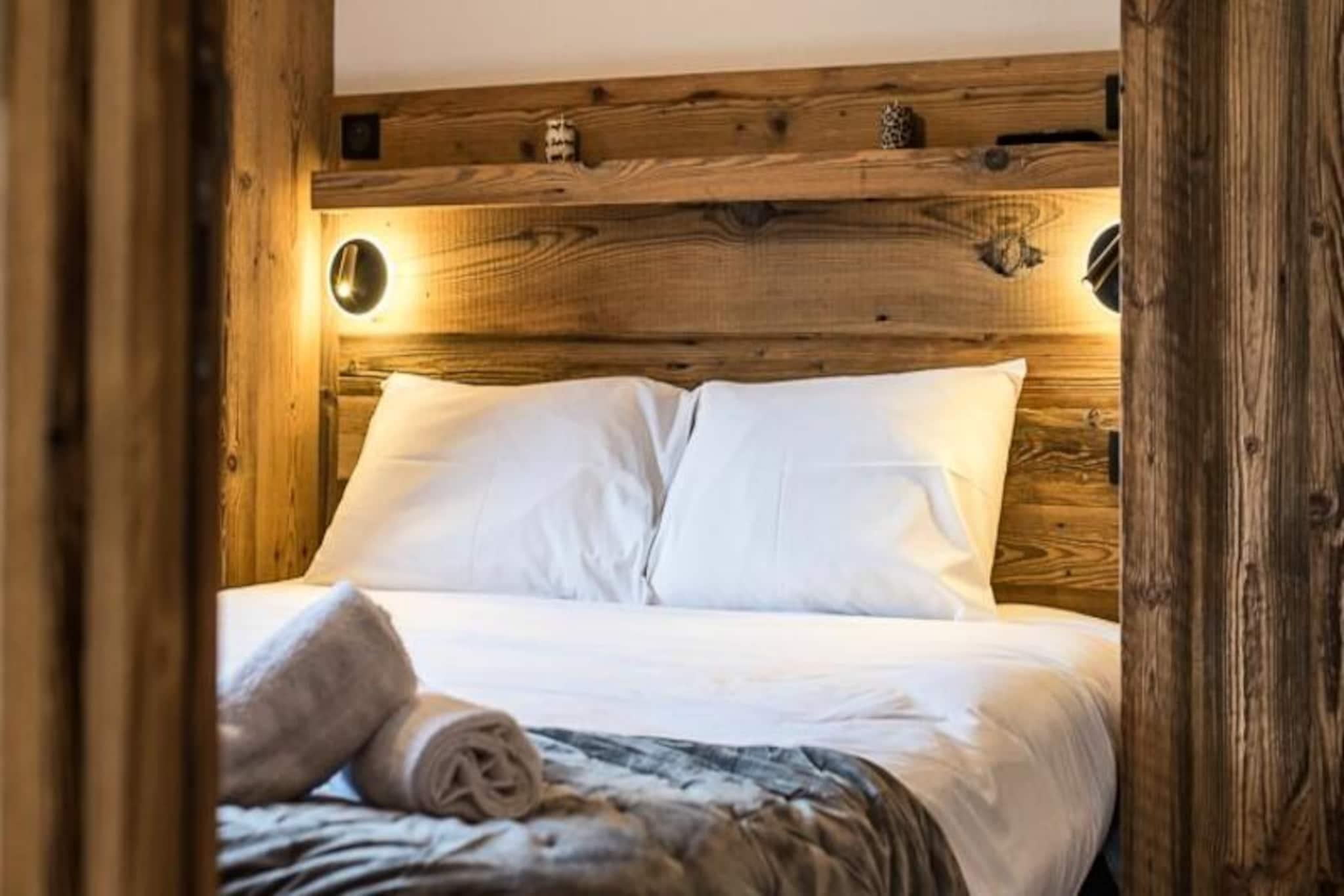 I hjärtat av den charmiga byn Plan du Moulin inbjuder denna eleganta lägenhet dig till den perfekta alpina semestern. Bara 300 meter från nybörjarbackarna och 400 meter från Plan du Moulin Express-liften, är denna bostad perfekt för både nybörjarskidåkare och erfarna äventyrare. Tänk dig att vakna upp till det gyllene skenet från solen som strömmar in genom de södervända fönstren och kliva ut på en vidsträckt 50 m² stor terrass med hisnande utsikt över de omgivande bergen och backarna. En sann oas för avkoppling och utforskning. \n\nInuti har lägenheten en varm och elegant inredning i kombination med högkvalitativa bekvämligheter. Vardagsrummet, med sitt mysiga TV-rum och matplats, öppnar sig sömlöst mot ett fullt utrustat kök, perfekt för att laga rejäla måltider efter en dag i backen. Det första sovrummet, som vetter mot väster, har en plyschig queen size-säng och ett eget duschrum, medan det andra sovrummet har en dubbelsäng, en TV och ett eget duschrum. En sovalkov med en våningssäng ger flexibilitet för familjer, och en separat toalett säkerställer bekvämlighet för alla gäster. Med WiFi, slutstädning och bäddade sängar vid ankomst har varje detalj noggrant arrangerats för din komfort. \n\nUtöver lägenheten erbjuder residensen direkt tillgång till ski-in/ski-out, en reserverad inomhusparkeringsplats med laddningsstation för elbilar och ett skidskåp med pjäxtork. Att boka med Altitude 1750 kommer med extra förmåner, inklusive liftkort levererade direkt till din dörr och rabatterade priser för uthyrning av utrustning vid förbokning. \n\nOavsett om du är här för att karva genom orörd snö eller njuta av den lugna bergsatmosfären, lovar denna lägenhet oförglömliga stunder för både familjer och vänner. Boka din vistelse nu och låt magin i Plan du Moulin utvecklas framför dig.