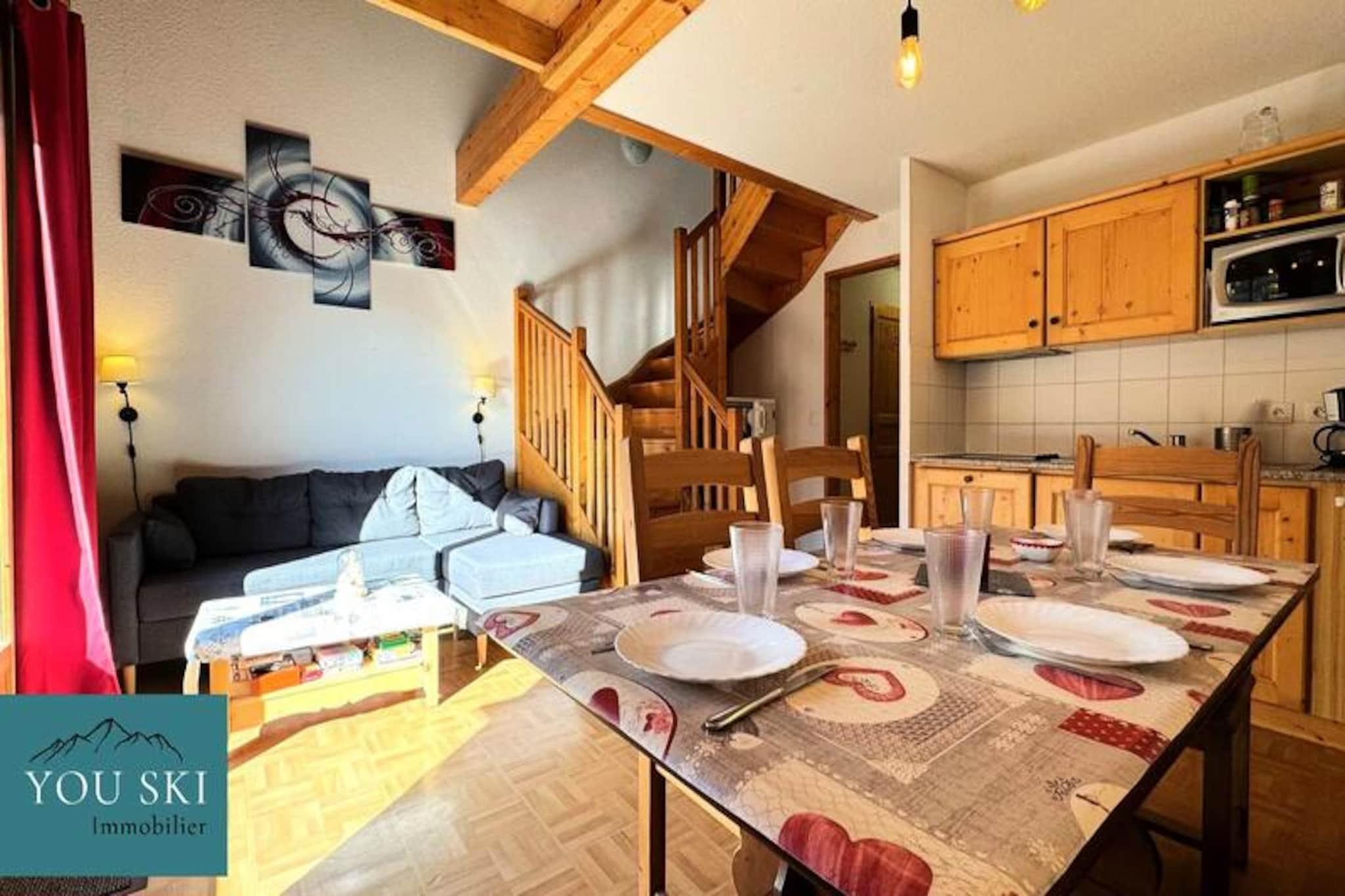 Denna charmiga semesterlägenhet rymmer upp till 7 gäster, med ett sovrum med dubbelsäng (140*190 cm), ett vardagsrum med kök och vardagsrumsdel samt en balkong. På övervåningen hittar du en mezzanin med dubbelsäng och enkelsäng, samt ett separat sovrum med enkelsäng och våningssäng, perfekt för familjer eller grupper. Boendet är rökfritt och husdjur är inte tillåtna. Lägenheten ligger i bostaden Les Chalets de St Sorlin och erbjuder enkel tillgång till det omgivande området. Anläggningen ligger nära vandringsleder, skidbackar och olika utomhusaktiviteter. Du hittar också praktiska bekvämligheter som marknader, kaféer och butiker i närheten, vilket gör det till en utmärkt plats för både avkoppling och äventyr. Den uppvärmda inomhuspoolen är tillgänglig under anläggningens öppettider, och erbjuder ett utmärkt sätt att varva ner efter en dag av sightseeing. Lägenheten har ett fullt utrustat kök med diskmaskin, kylskåp, liten ugn, elektrisk filterkaffebryggare, vattenkokare, brödrost och raclettegrill. Det finns också ett badrum med dusch och toalett, plus ett extra badrum med toalett på övervåningen. För extra bekvämlighet erbjuder boendet gratis parkering, och du kan beställa valfria tjänster som uthyrning av lakan och handdukar eller WiFi mot en extra kostnad.