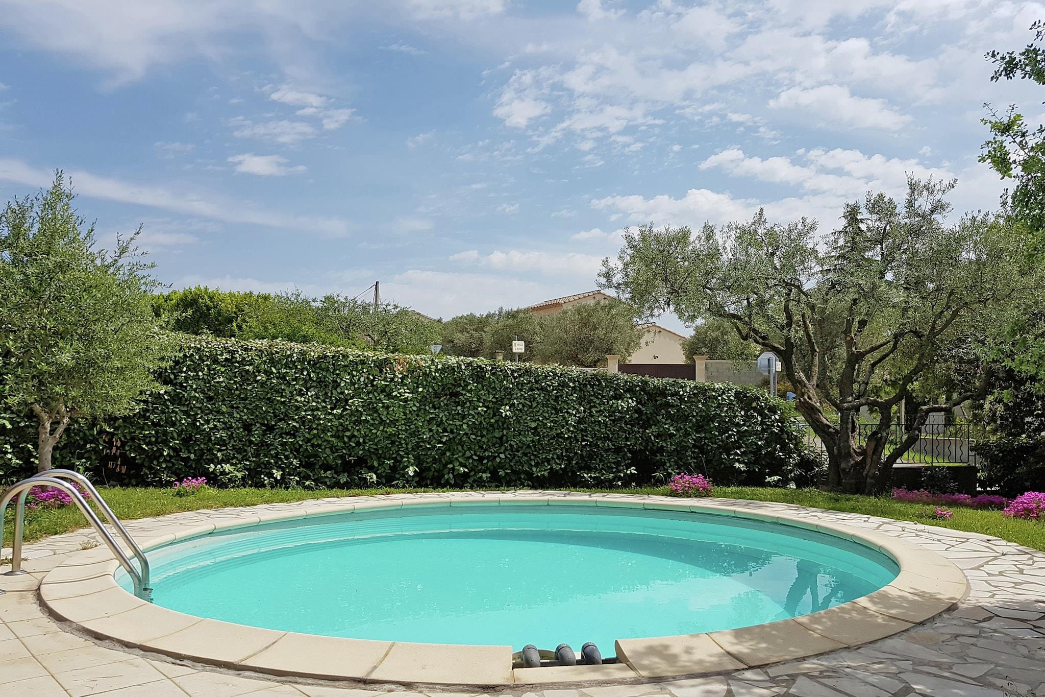 Bottenvåningen: (Vardagsrum(TV, öppen spis, DVD-spelare), Kök(ugn, mikrovågsugn, diskmaskin), sovrum(2x enkelsäng), sovrum(dubbelsäng), badrum(badkar, handfat, toalett , tvättmaskin)) garage, värme(elektrisk), terrass, trädgård(inhägnad), swimmingpool(privat, 5 x 5 m., opened from 1/2 May upto and including 1/2 Oct), boule