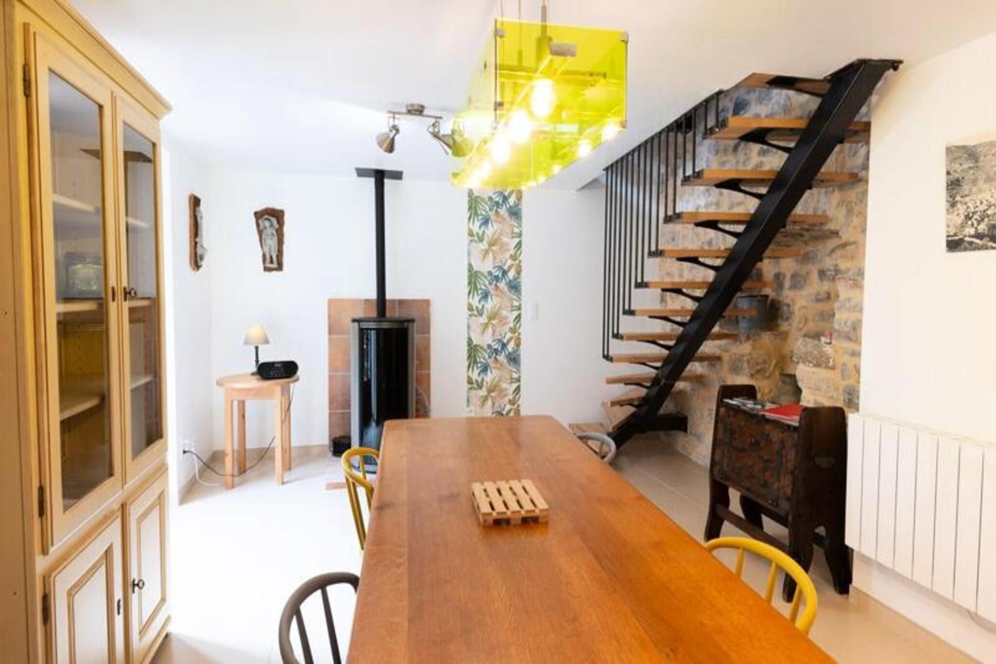 La Proue du Serre Gîte ligger i La Proue du Serre. i hjärtat av Gorges du Tarn i den typiska byn Sainte-Enimie, en charmig kulturminnesmärkt medeltida by. bland de vackraste byarna i Frankrike. Du kommer att njuta av att vandra på gatorna och upptäcka dess arv och historia. Du hittar på plan 1 köksdelen (pelletskamin) med tillgång till köket. terrassen. På andra våningen, loungen med TV och en soffa. cabriolet, badrummet med toalett. Och på 3:e våningen, de två sovrummen med varsin dubbelsäng på 140*190. I priset ingår: Värme, lakan, badrum och hushållslinne. Priset inkluderar inte: Slutstädning (60 EURO). Deposition (i euro) - 400 Parkering - i närheten Slutstädning - extra Sängkläder - ingår Handdukar - ingår