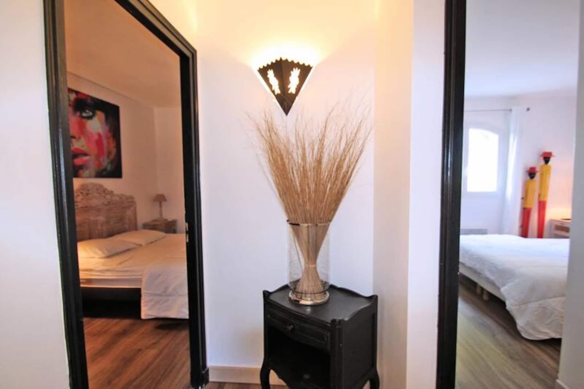Denna rymliga villa med 4 sovrum erbjuder en lyxig vistelse för upp till 8 personer, med chic och elegant inredning. De luftkonditionerade sovrummen har dubbelsängar, TV och gott om förvaring. Villan har också ett ljust vardagsrum med två soffor, en stor TV-skärm, och en Bluetooth-högtalare, samt en matplats för 8. Det fullt utrustade amerikanska köket har moderna apparater som kyl, frys, ugn, mikrovågsugn, och diskmaskin. Husdjur är tillåtna på begäran, och det finns privat parkering med elektrisk grind. Denna villa ligger i ett lugnt bostadsområde, bara 2300 meter från stadens centrum, 1600 meter från stranden och 1100 meter från lokala butiker. Gästerna kan njuta av närliggande attraktioner och restauranger, medan de fridfulla omgivningarna är en idealisk tillflyktsort. Villans medelhavsträdgård erbjuder vackra uteplatser, och det finns olika sittplatser runt poolen för avkoppling. Fastigheten har ett välutrustat kök, två badrum med dusch och handfat samt en separat toalett. Den stora täckta terrassen är perfekt för att äta middag med familj och vänner, med en gasplancha. Den privata poolen, med valfri uppvärmning, är tillgänglig från juni till september. Ytterligare bekvämligheter inkluderar Wi-Fi, garage/tvättstuga och luftkonditionering i hela villan.