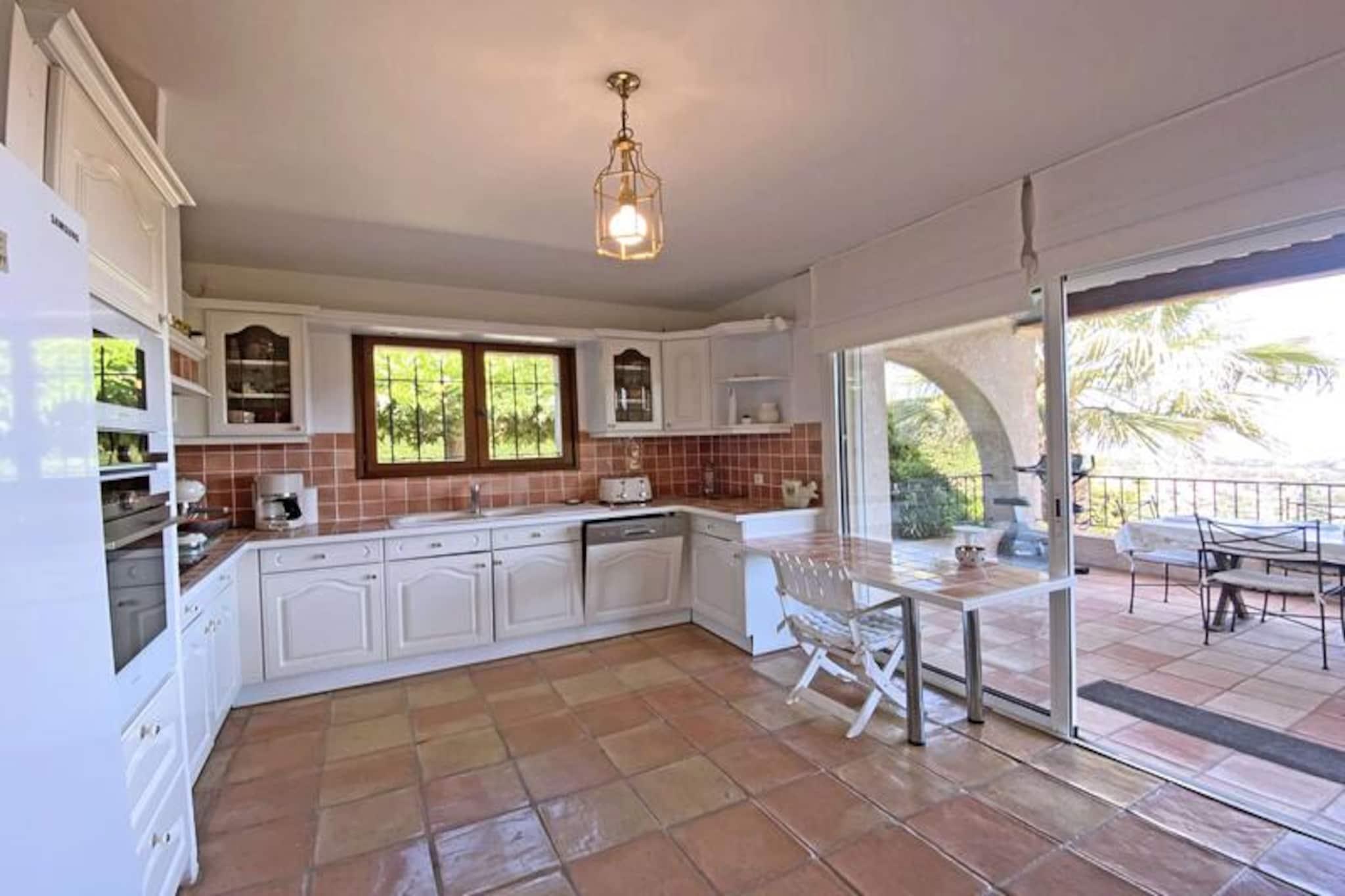 Detta charmiga semesterhus erbjuder en bekväm vistelse för upp till 8 gäster, med fyra rymliga sovrum med dubbelsängar och ett mysigt vardagsrum med havsutsikt. Husdjur är välkomna på begäran, vilket gör det idealiskt för resenärer med lurviga följeslagare. Hemmet har luftkonditionering i vardagsrummet, WiFi och en öppen spis för dekorativa ändamål. Fastigheten erbjuder också gott om parkeringsplatser för upp till 3 fordon, vilket garanterar bekvämlighet under din vistelse. Fastigheten ligger bara 4,5 km från stadens centrum och stränder, med butiker bara 2,5 km bort. För golfentusiaster ligger närmaste golfbana 500 meter från fastigheten. Dessutom finns ett utbud av kaféer och lokala marknader inom räckhåll, vilket ger en fantastisk möjlighet att utforska den lokala kulturen och köket. Semesterhuset har ett fullt utrustat kök med moderna apparater, inklusive diskmaskin, ugn och mikrovågsugn. Den har också fyra badrum, vilket garanterar avskildhet och komfort för alla gäster. En privat pool, en utomhusterrass med solstolar och en boulebana erbjuder gott om utrymme för avkoppling utomhus.
